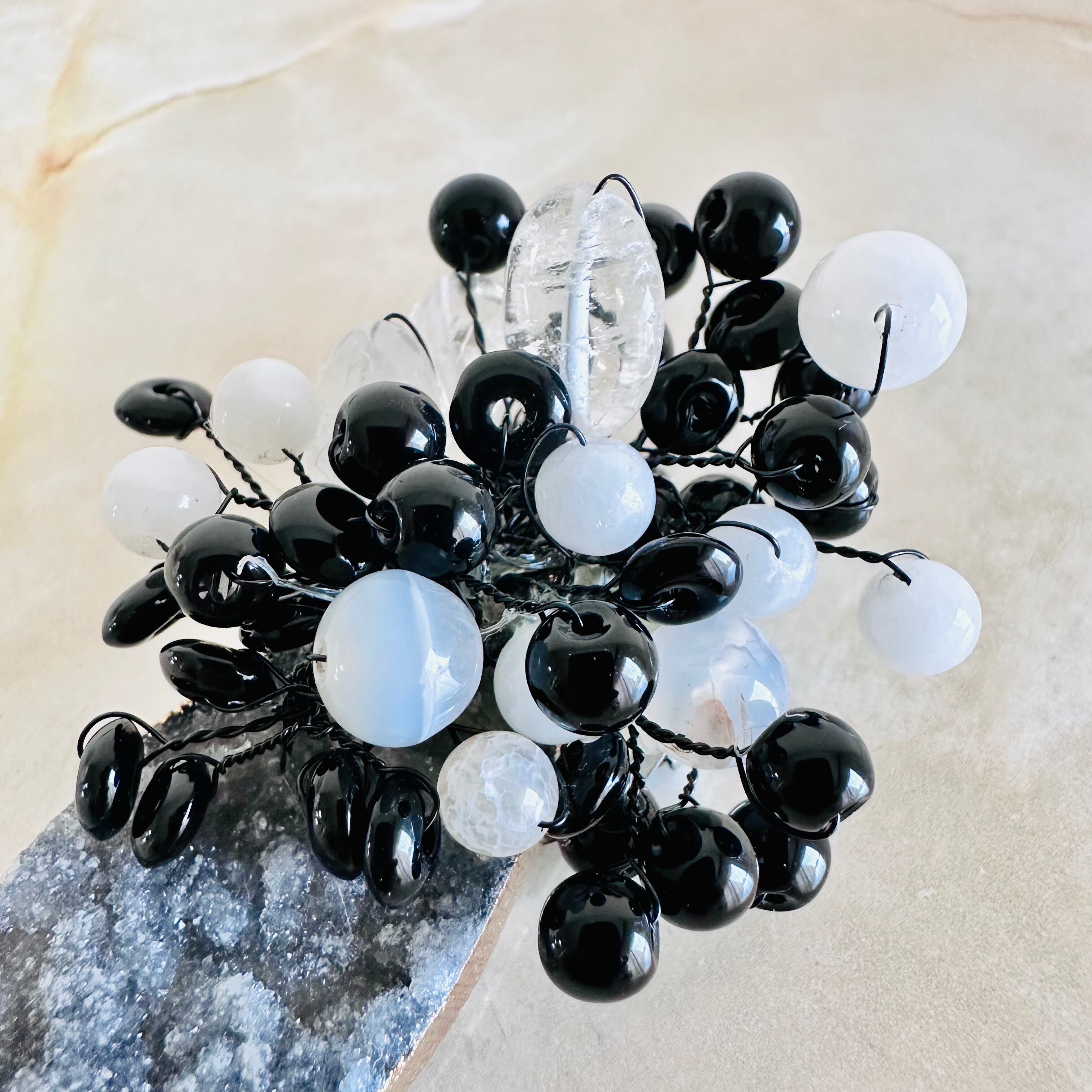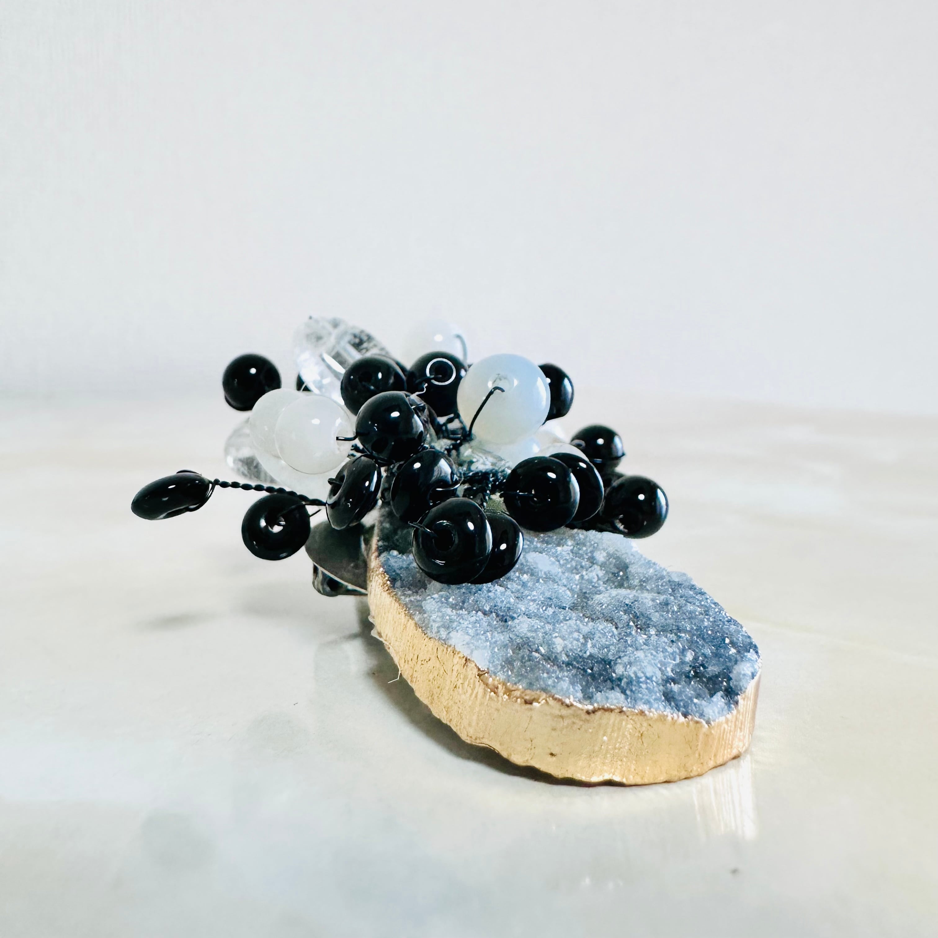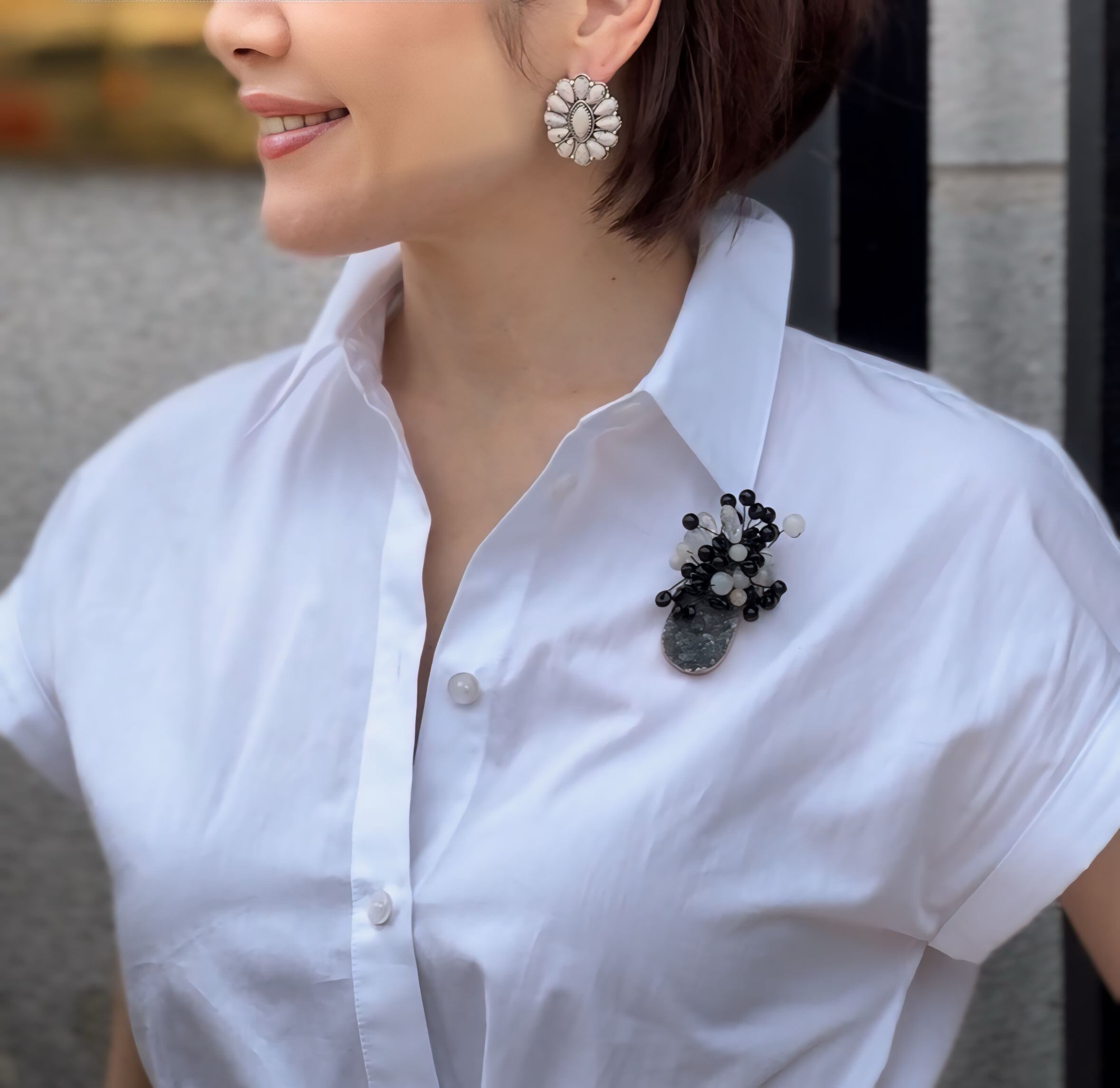 美しい天然石とモノクロカラーのビーズを使用した、世界に一つだけのブローチです。