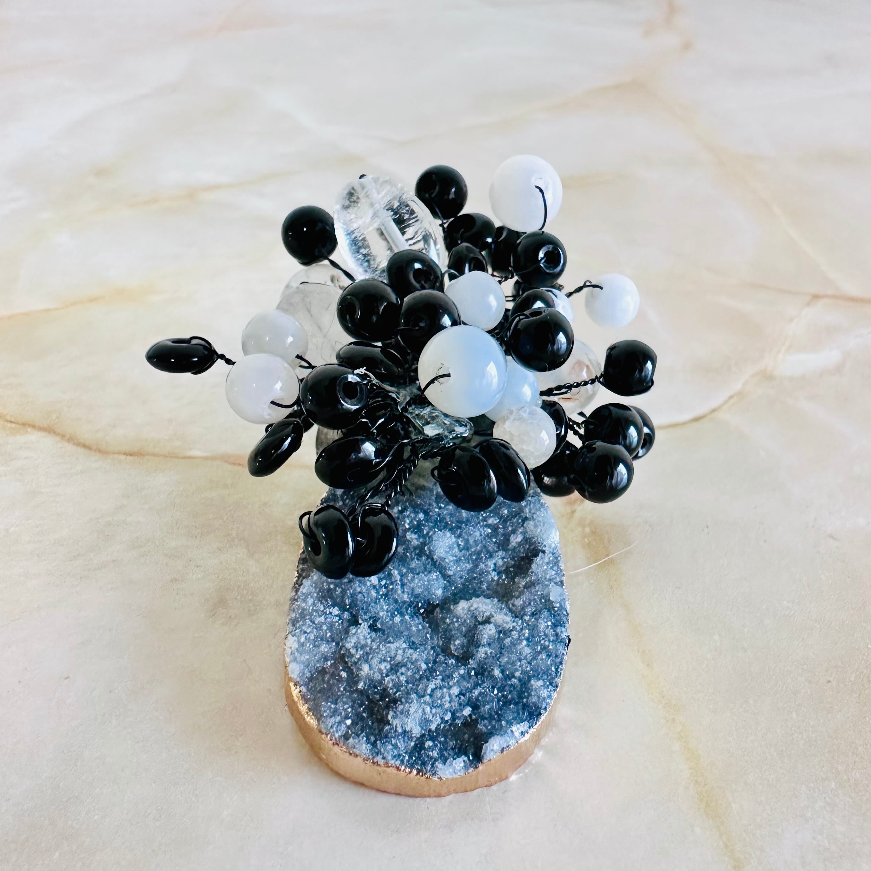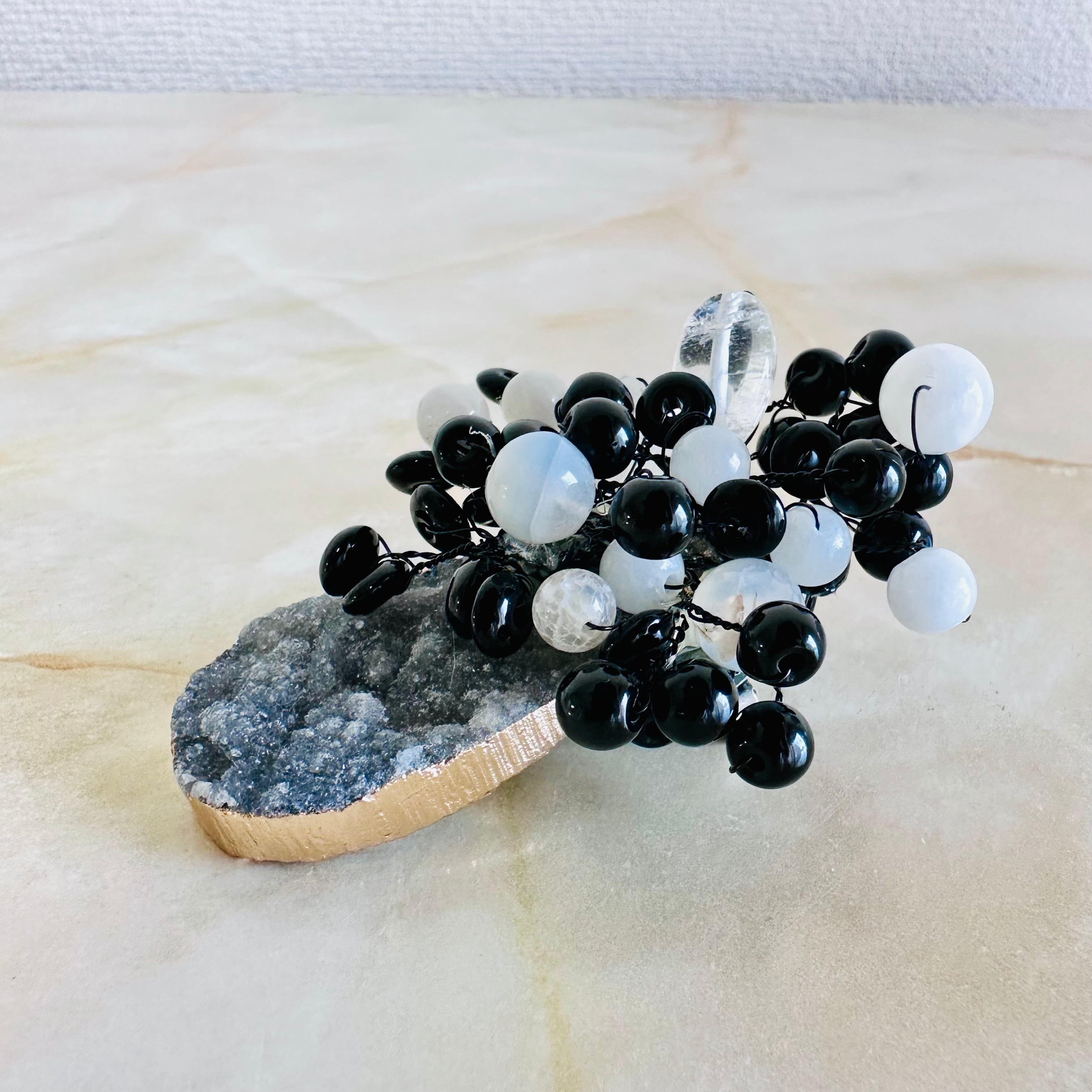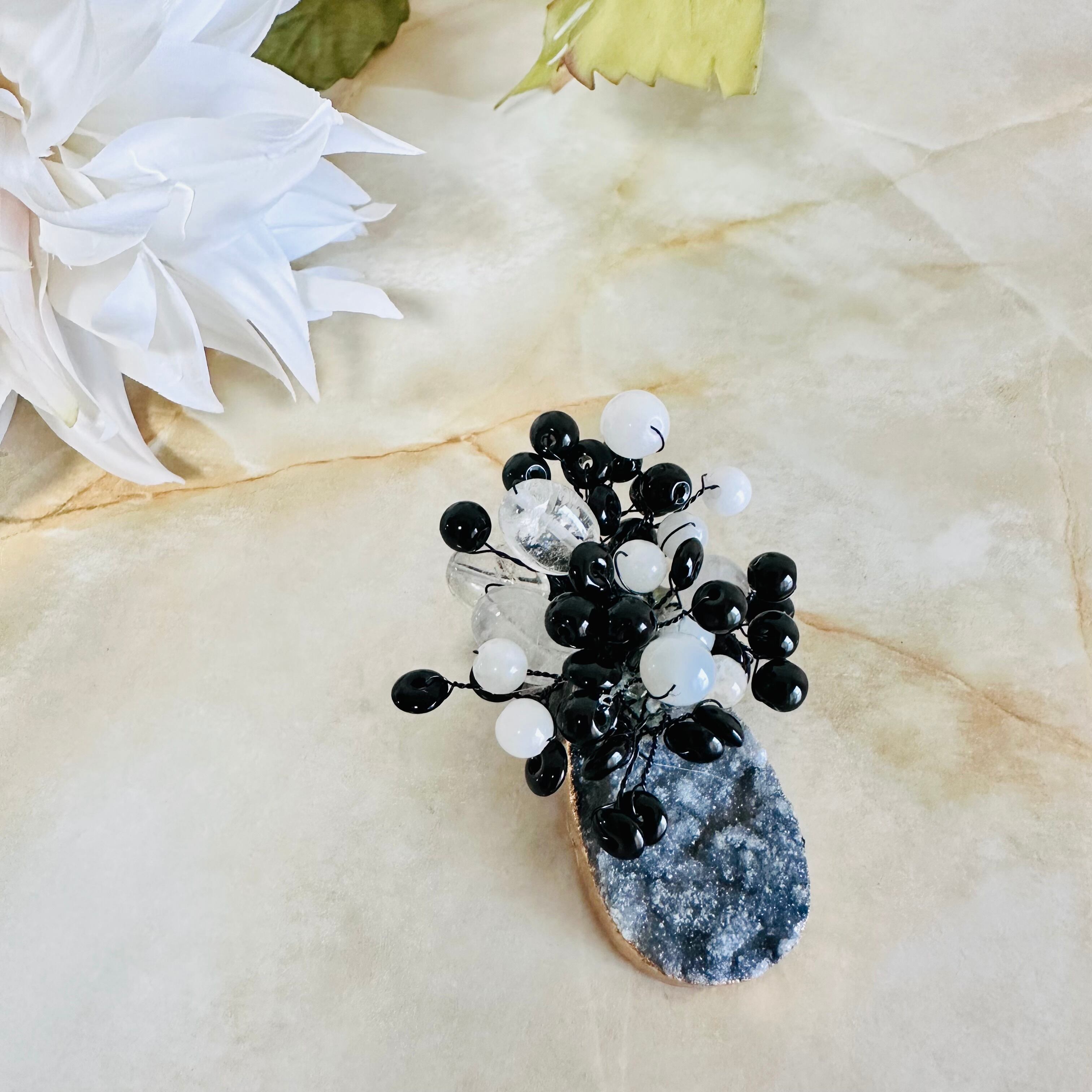 美しい天然石とモノクロカラーのビーズを使用した、世界に一つだけのブローチです。