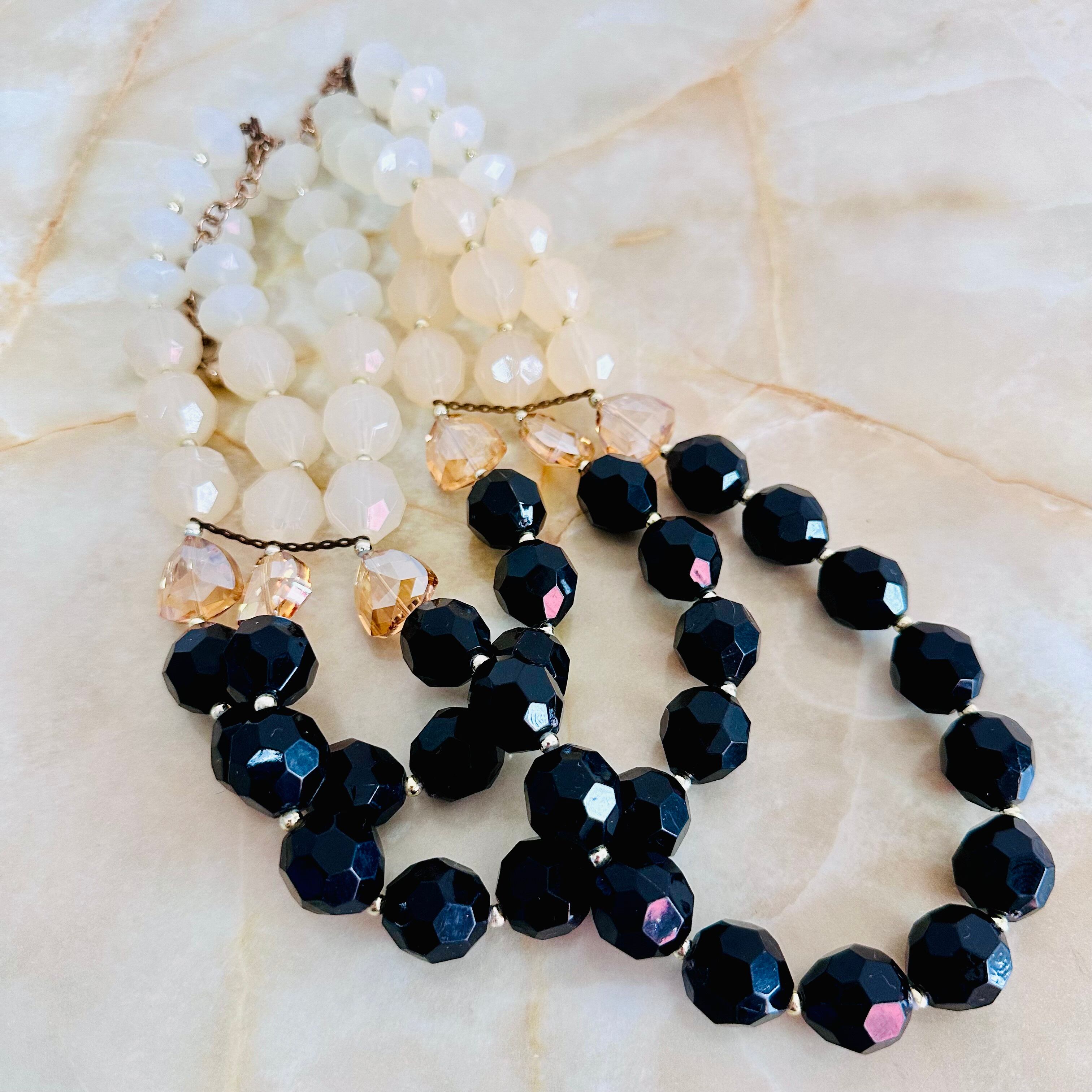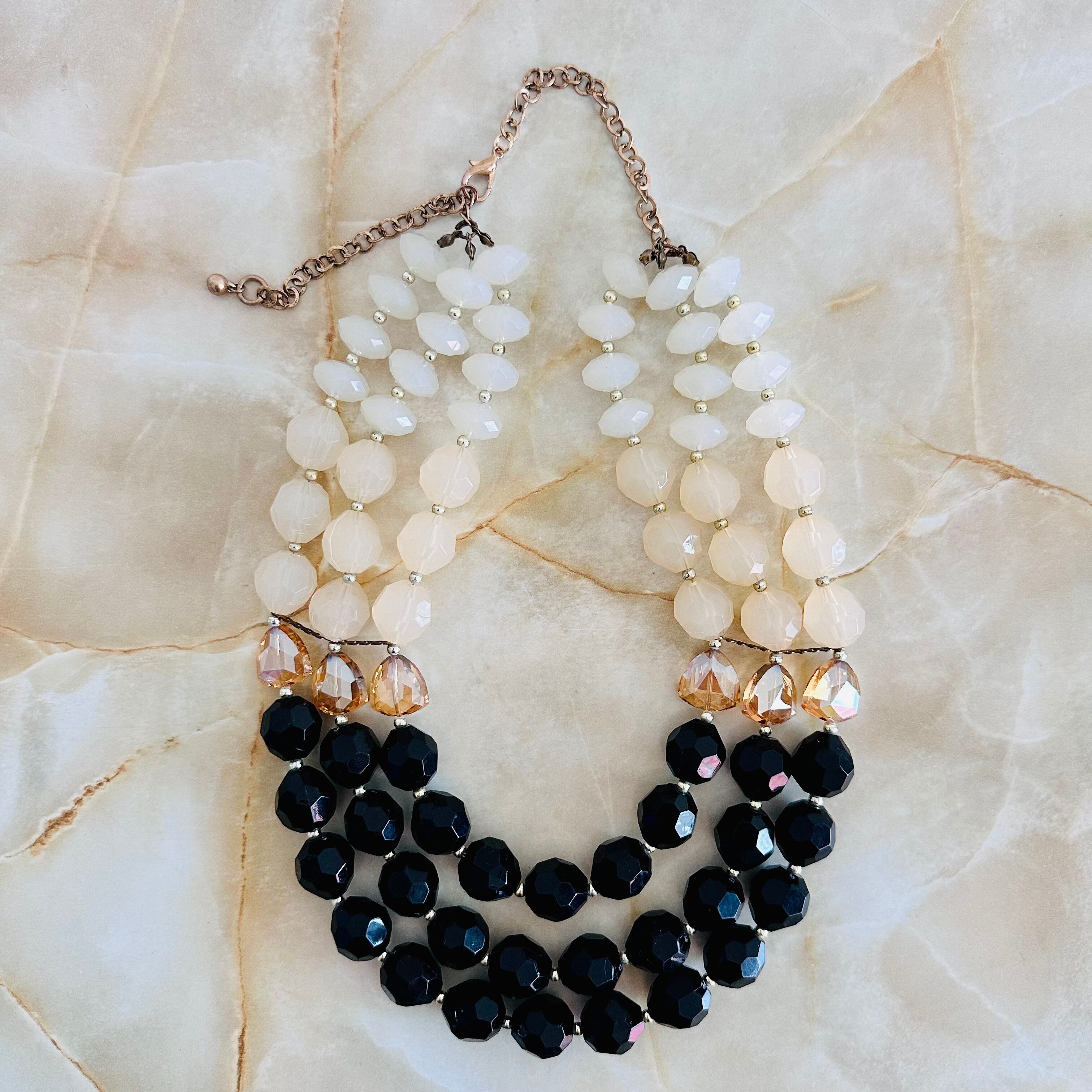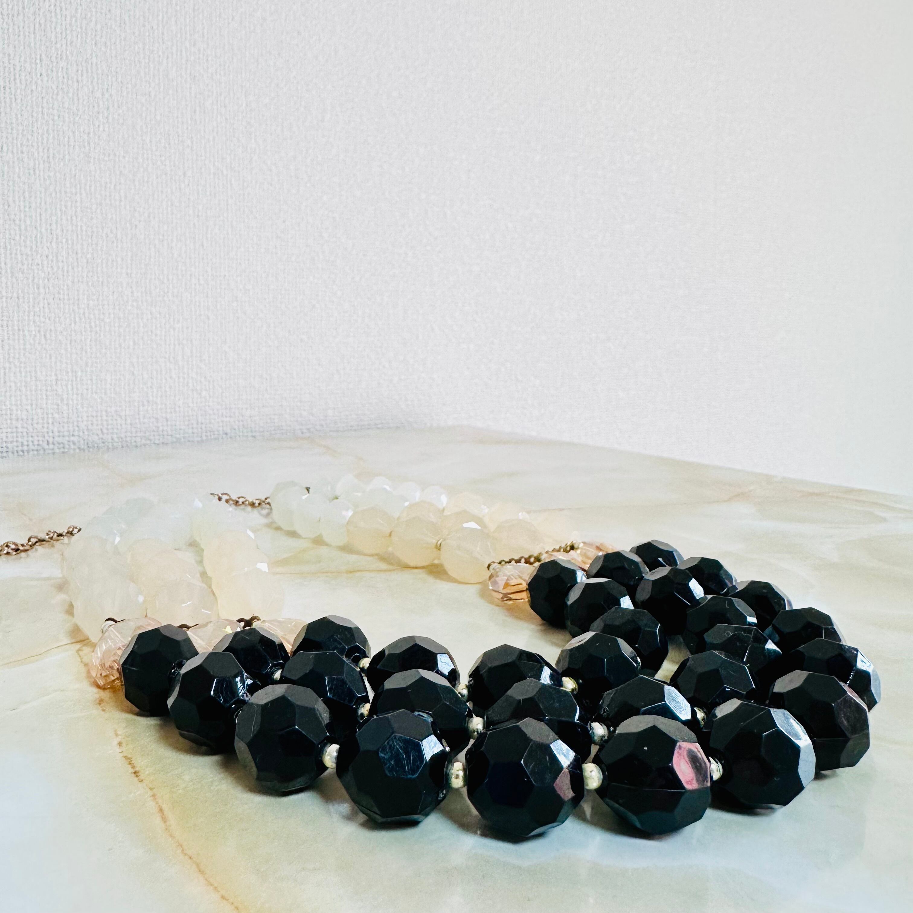 ベージュ系、ブラック✖️アンティークゴールドカラーのネックレスです。