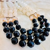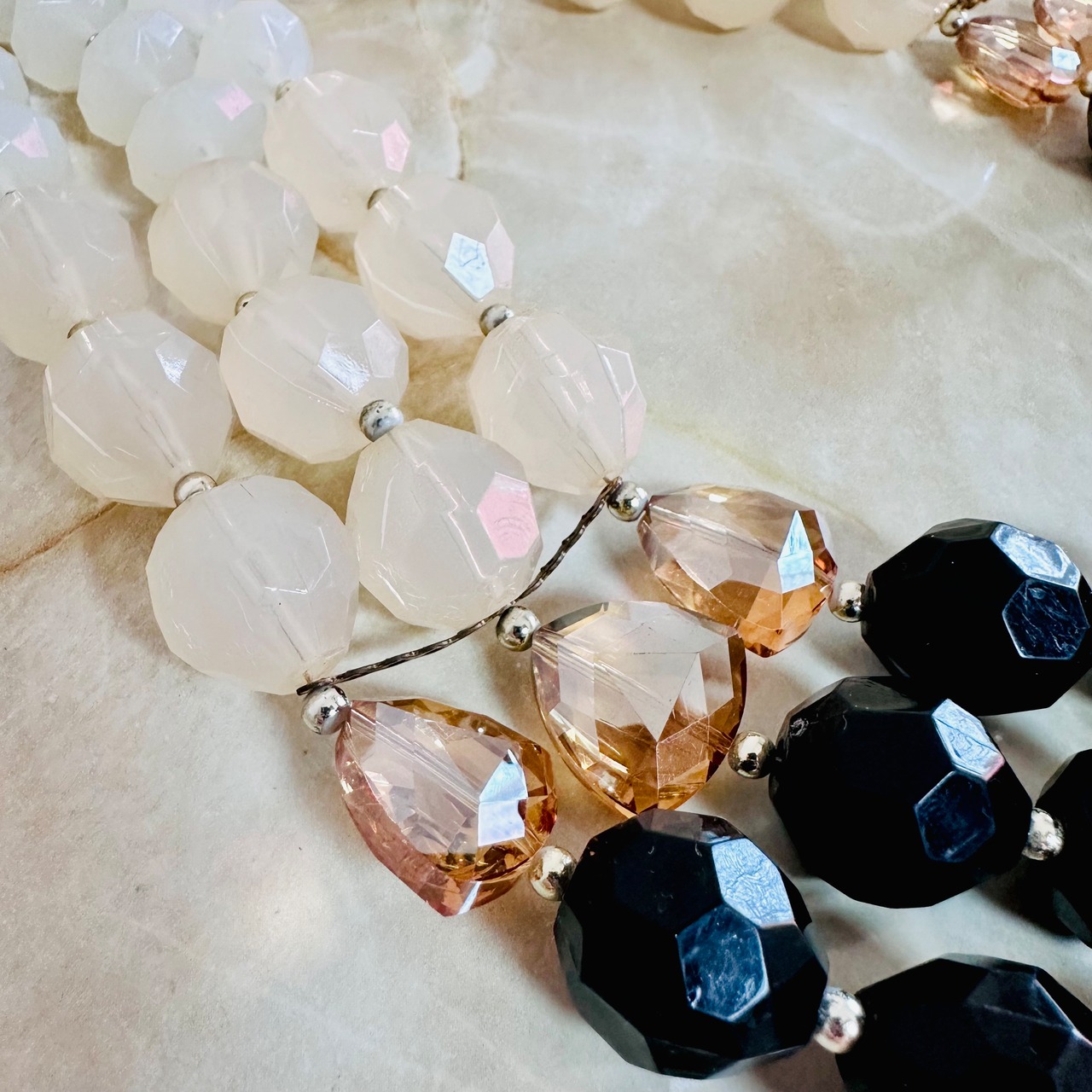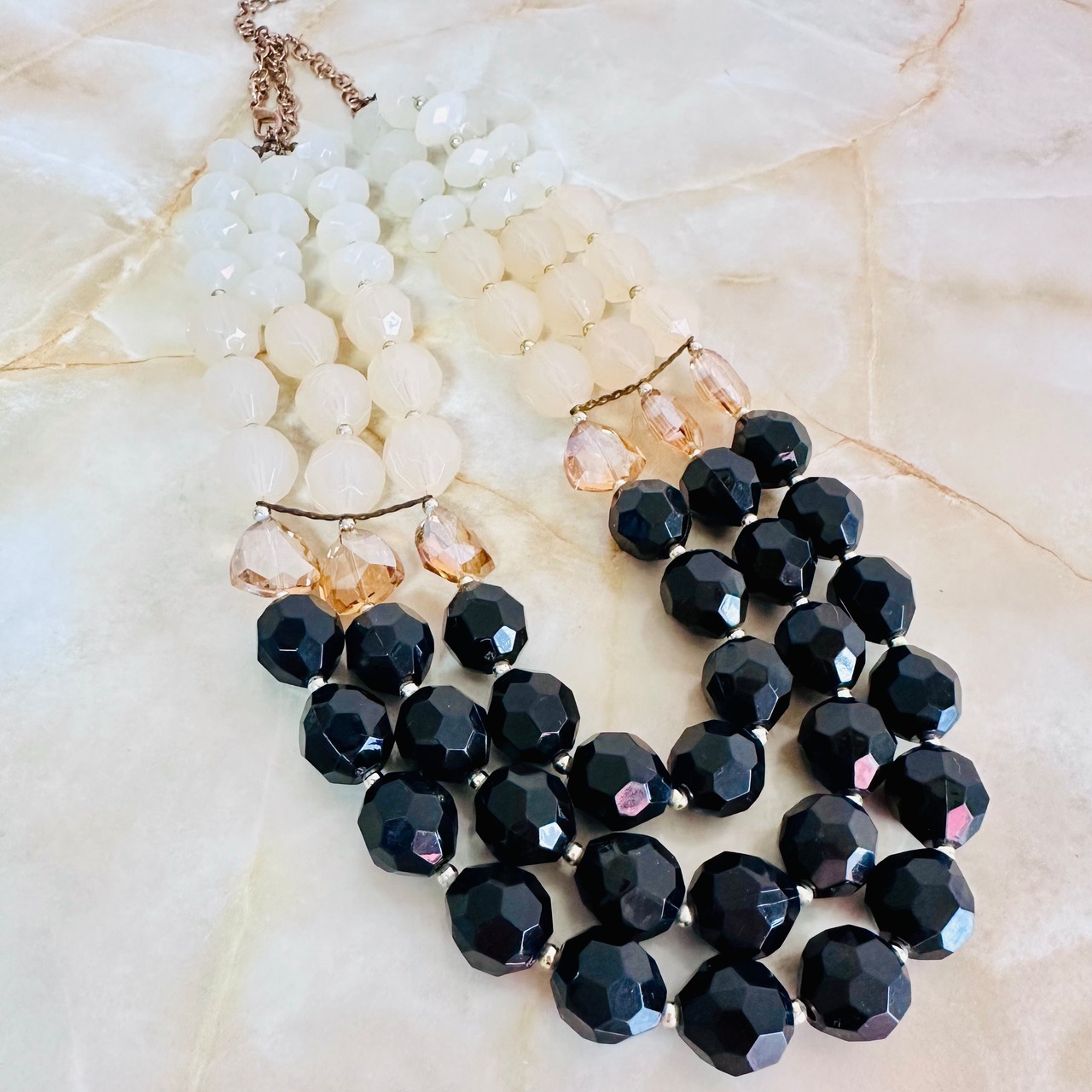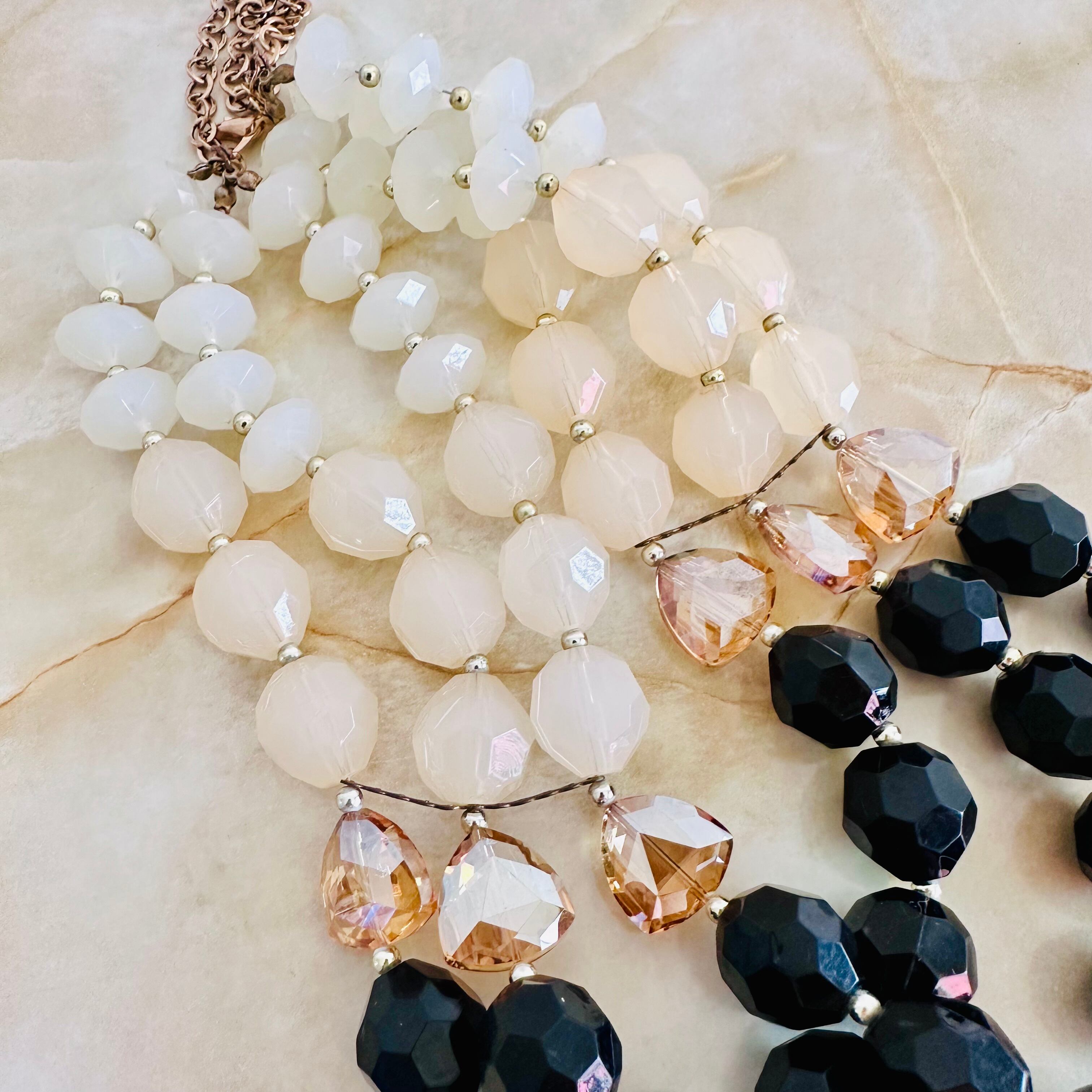 ベージュ系、ブラック✖️アンティークゴールドカラーのネックレスです。