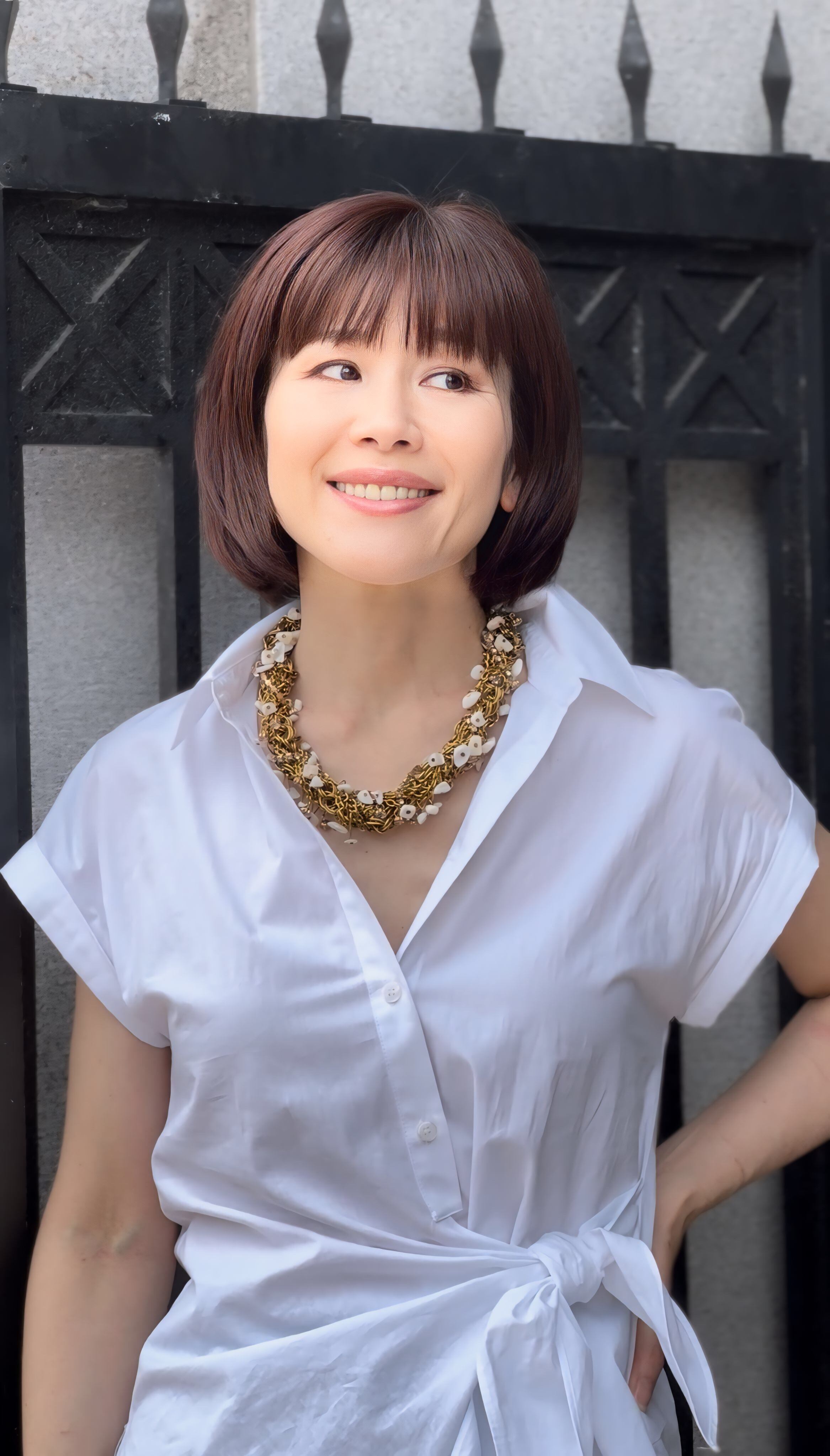 アイボリー、クリア✖️アンティークゴールドカラーのネックレスです。