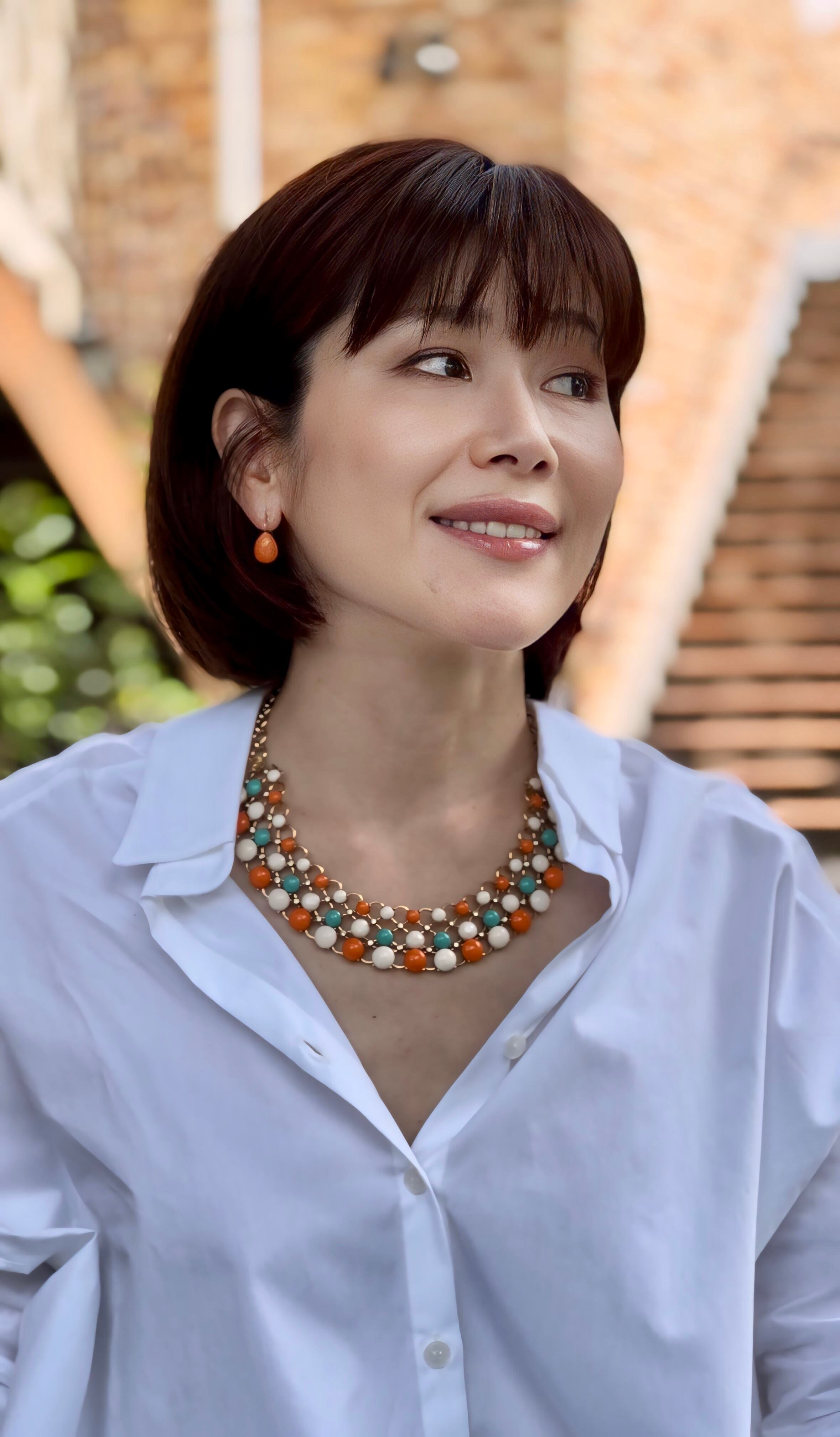 ポップな印象がありながらも落ち着きのあるカラーは大人女性のお顔まわりを明るく彩ってくれます♡