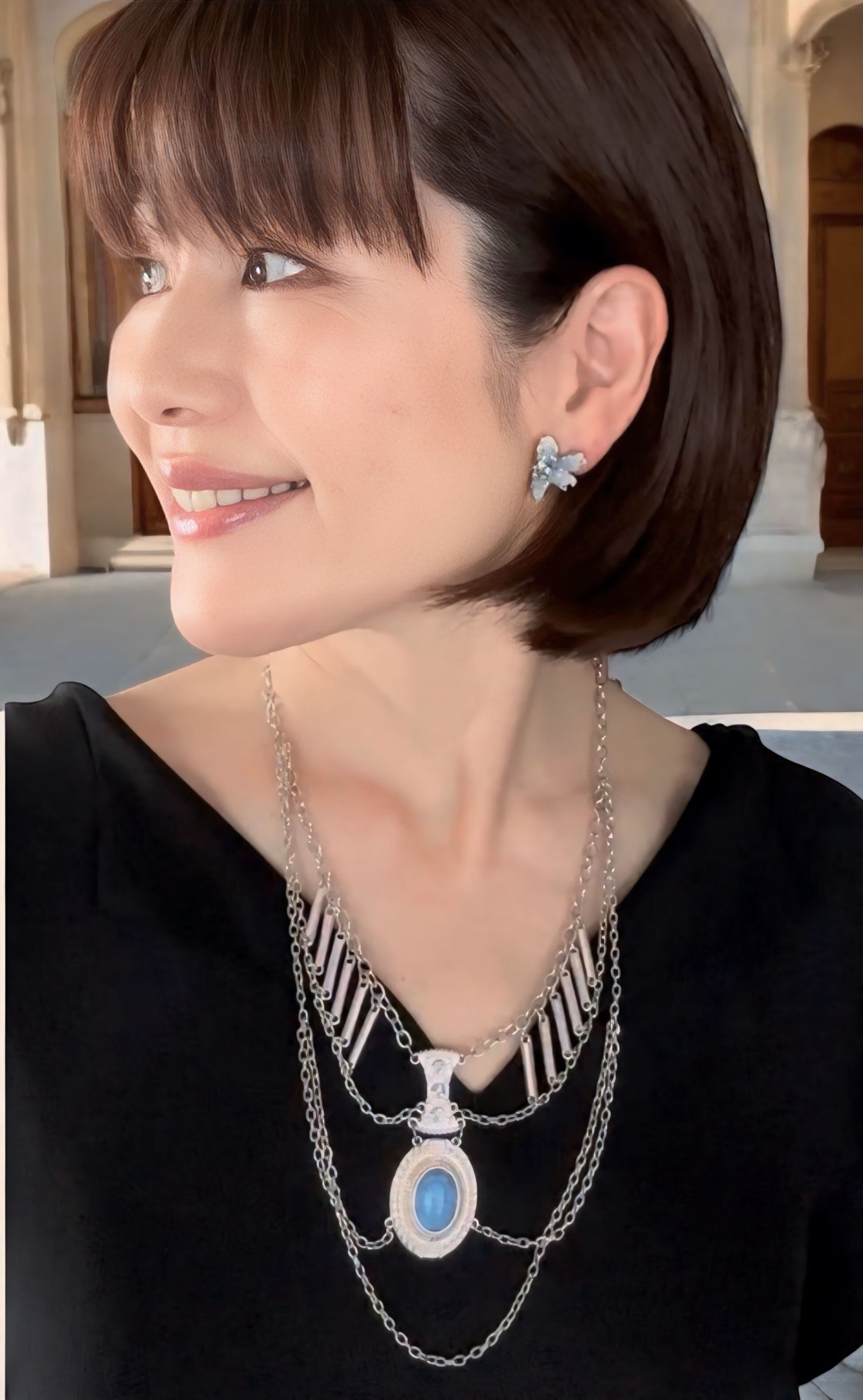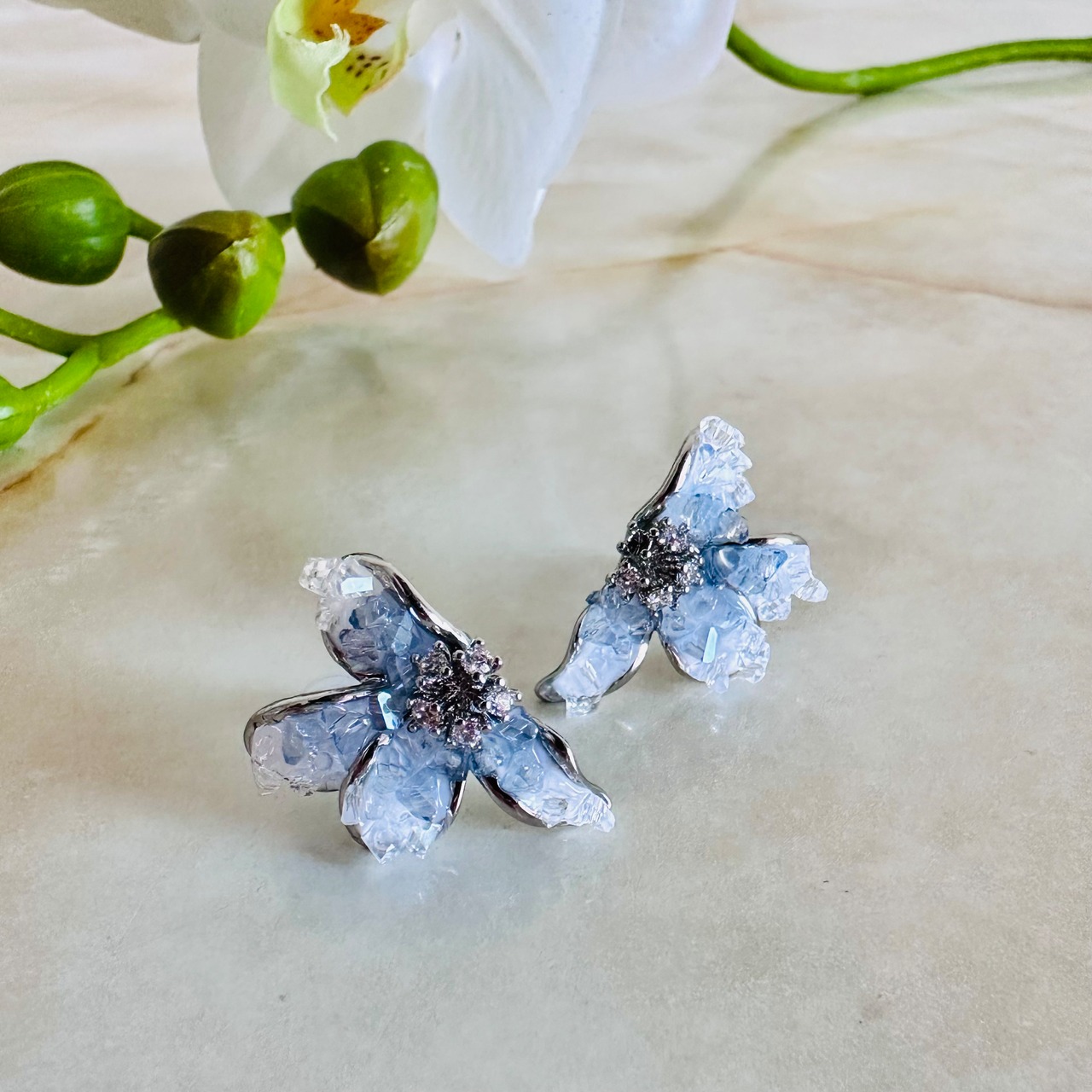 ブルー系、クリア✖️シルバーカラーのピアスです。