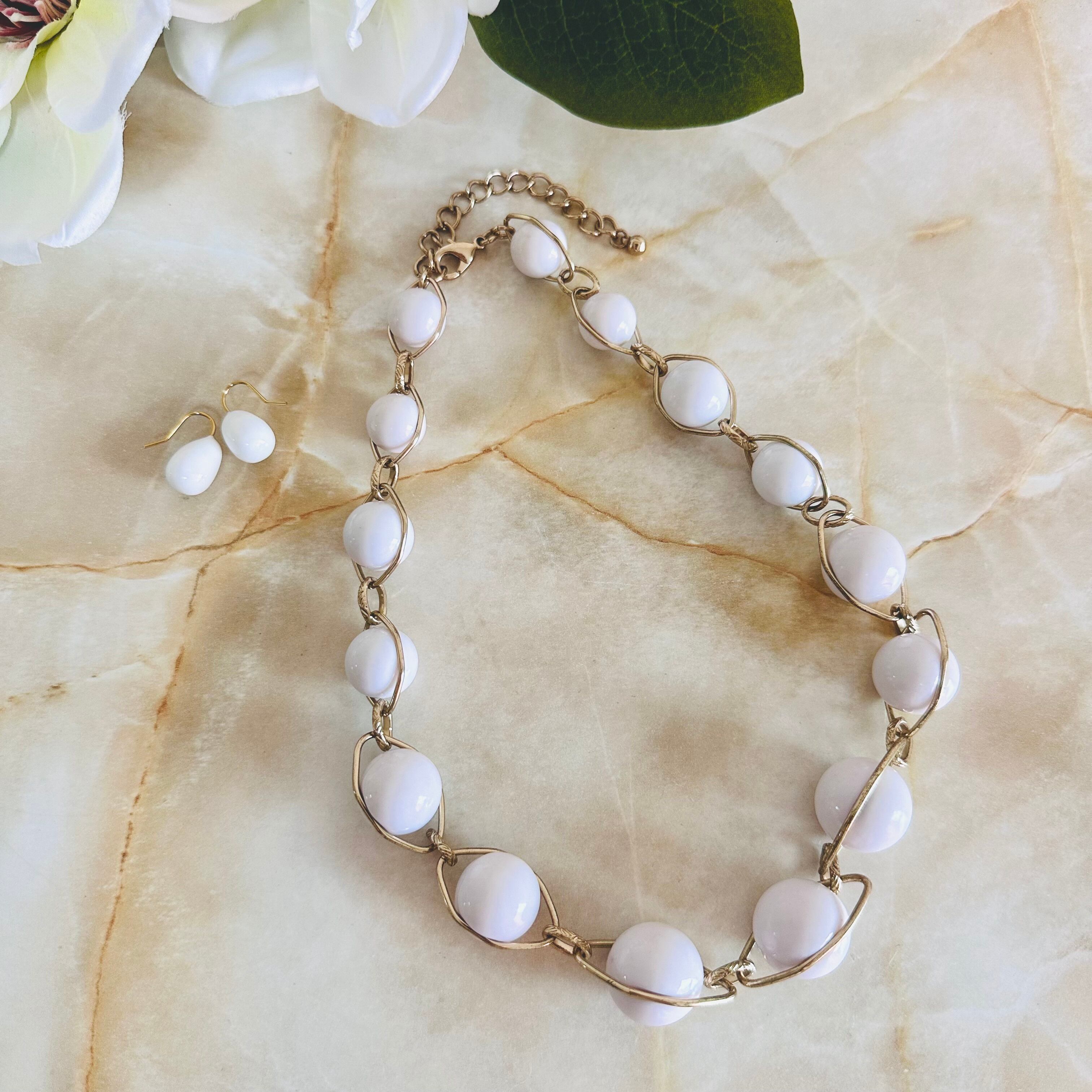 ホワイト✖️ゴールドカラーのネックレスです。