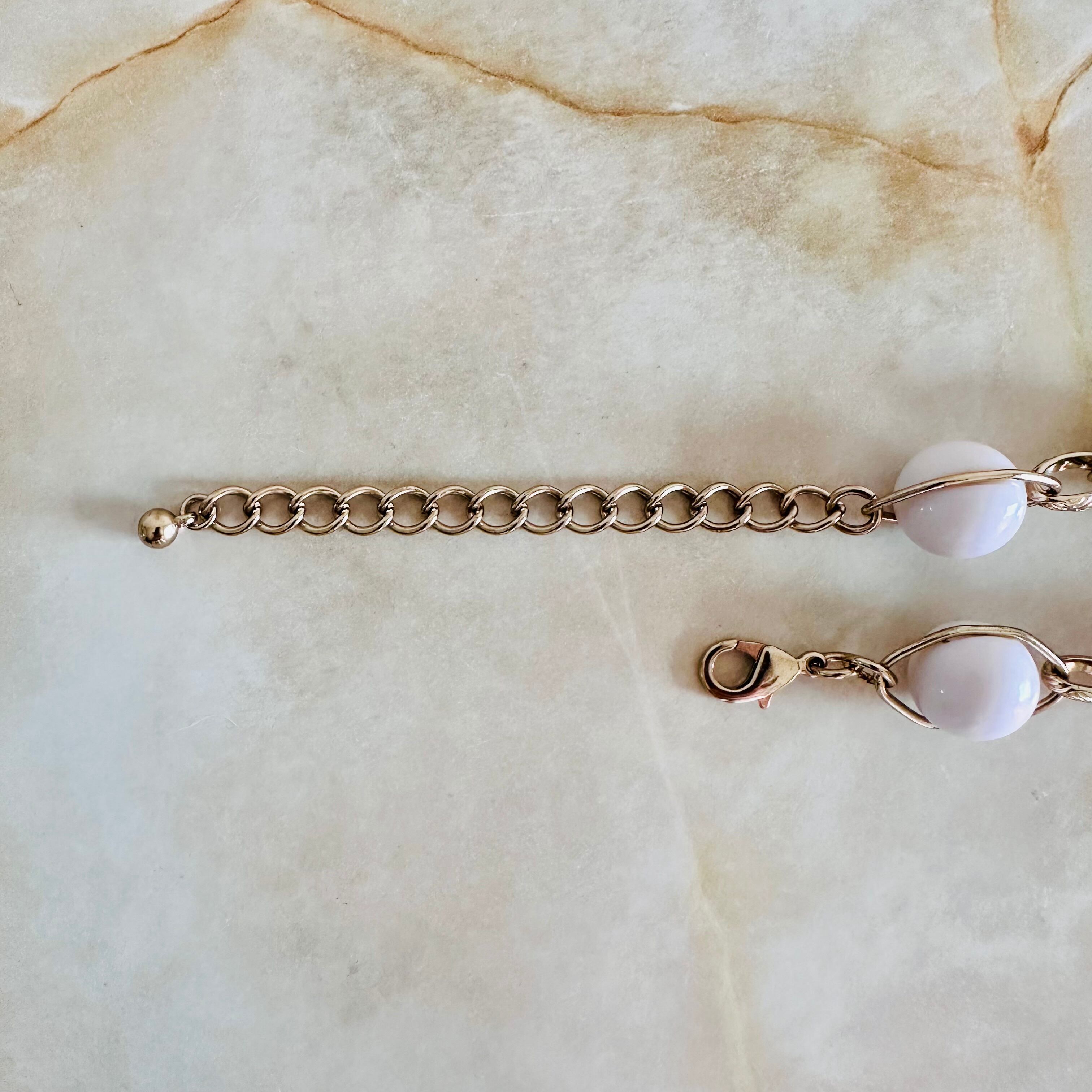 アクリル素材のホワイトボールとゴールドチェーンを組み合わせたデザインです。