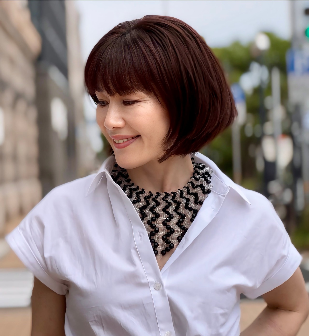 シンプルなスタイリングに合わせて、ネックレスを際立たせる洗練された大人のコーディネートをお楽しみください♪