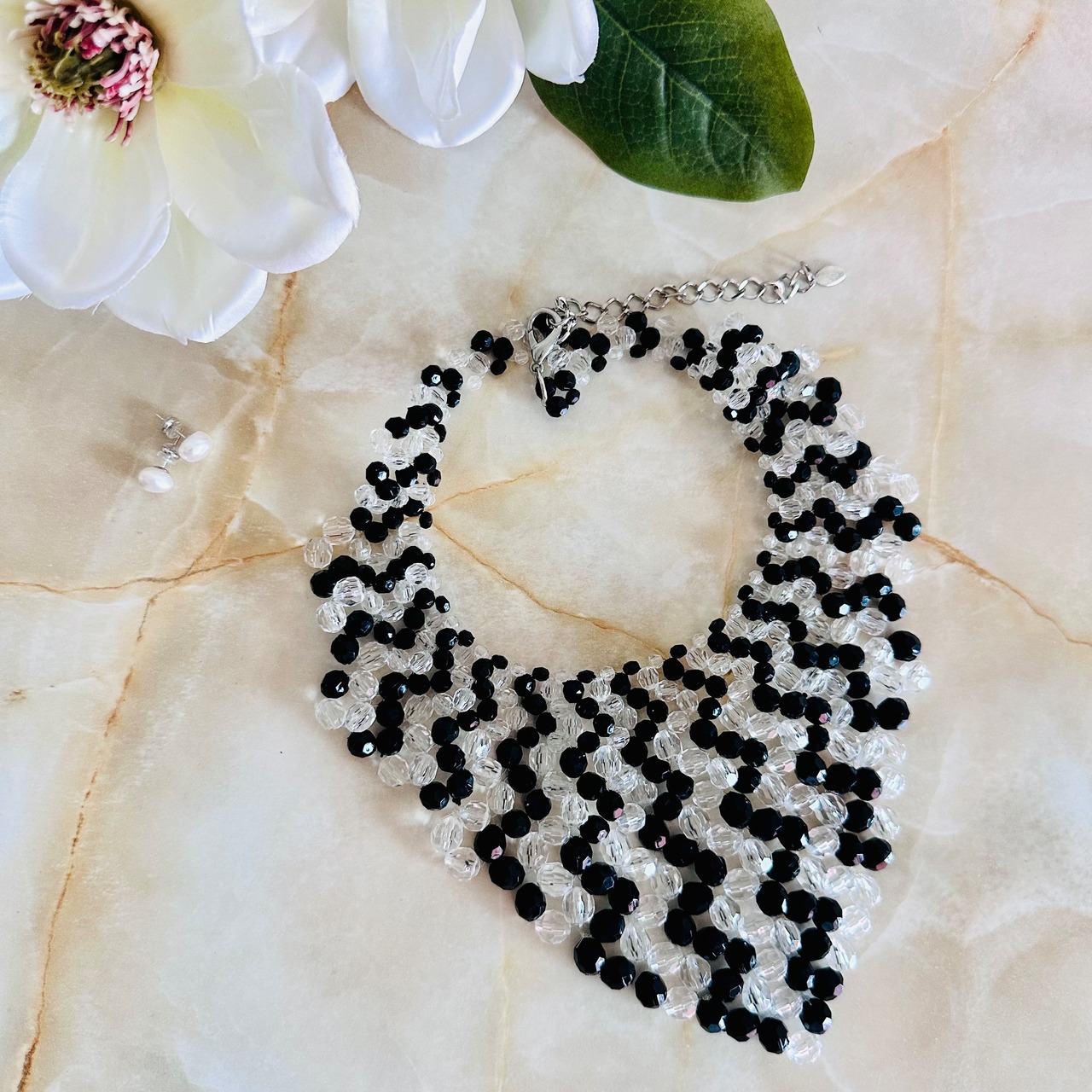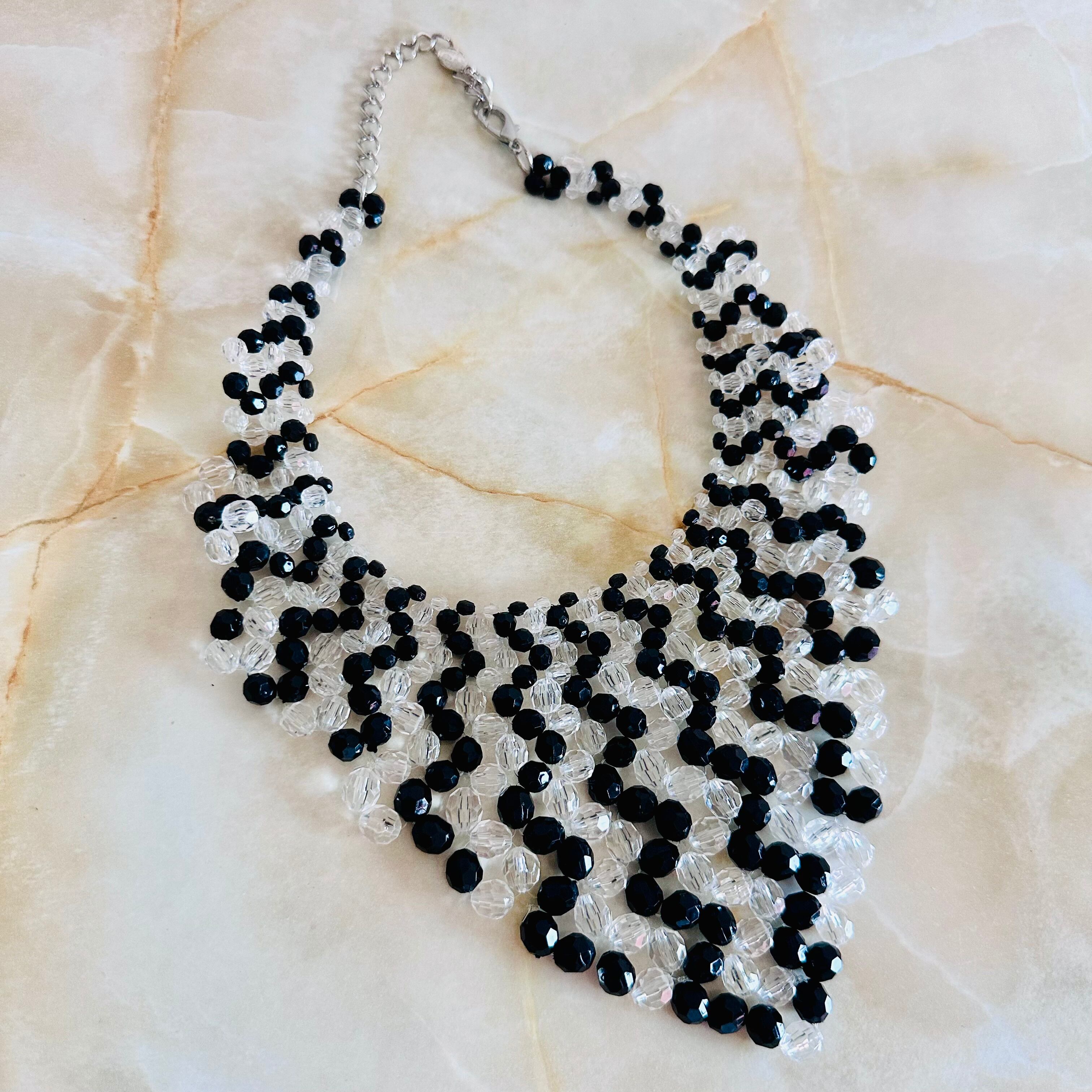 ブラック、クリア✖️シルバーカラーのネックレスです。