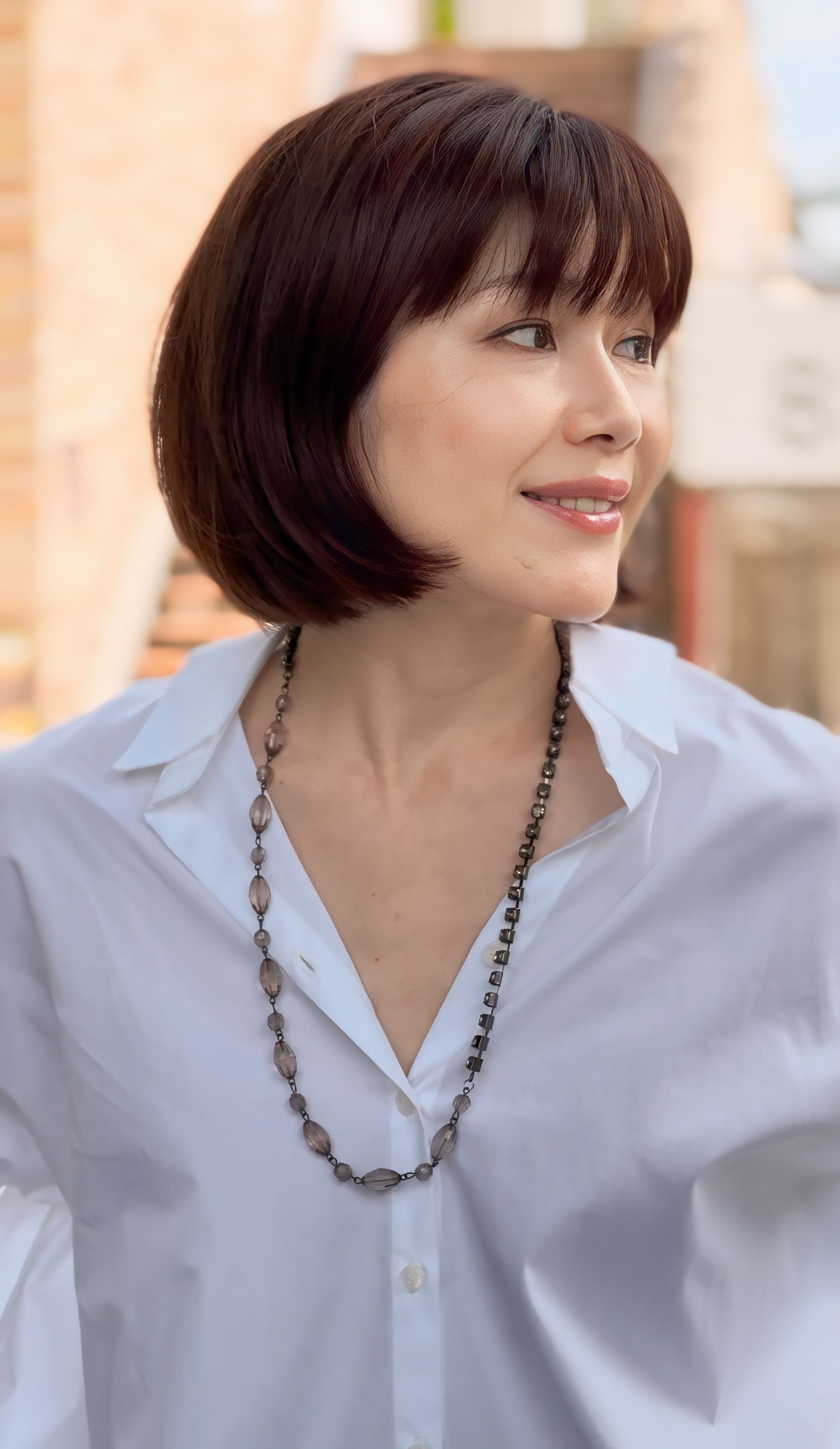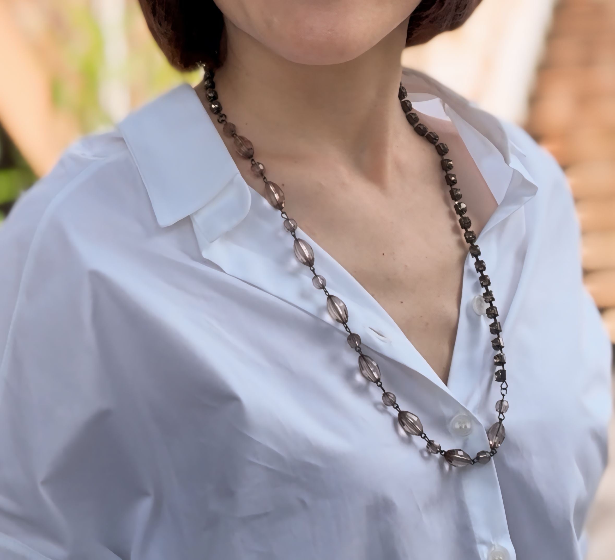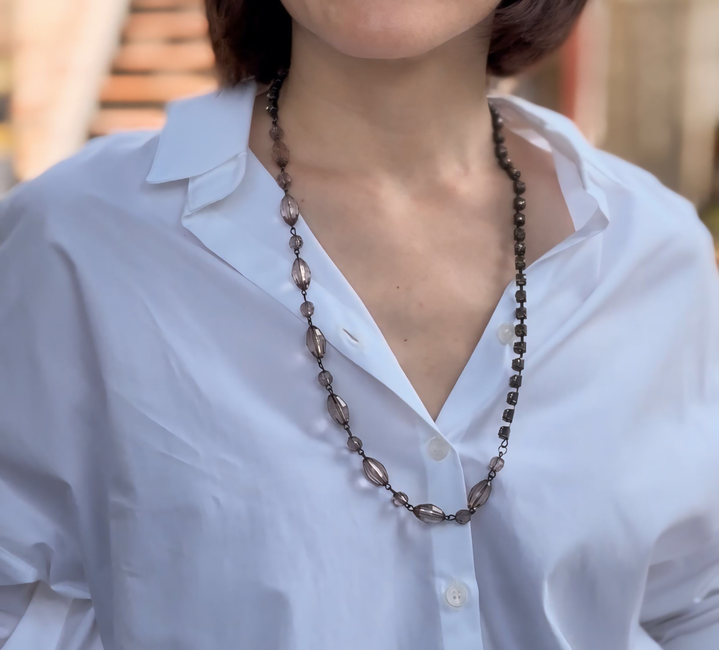 グレージュカラーのネックレスです。