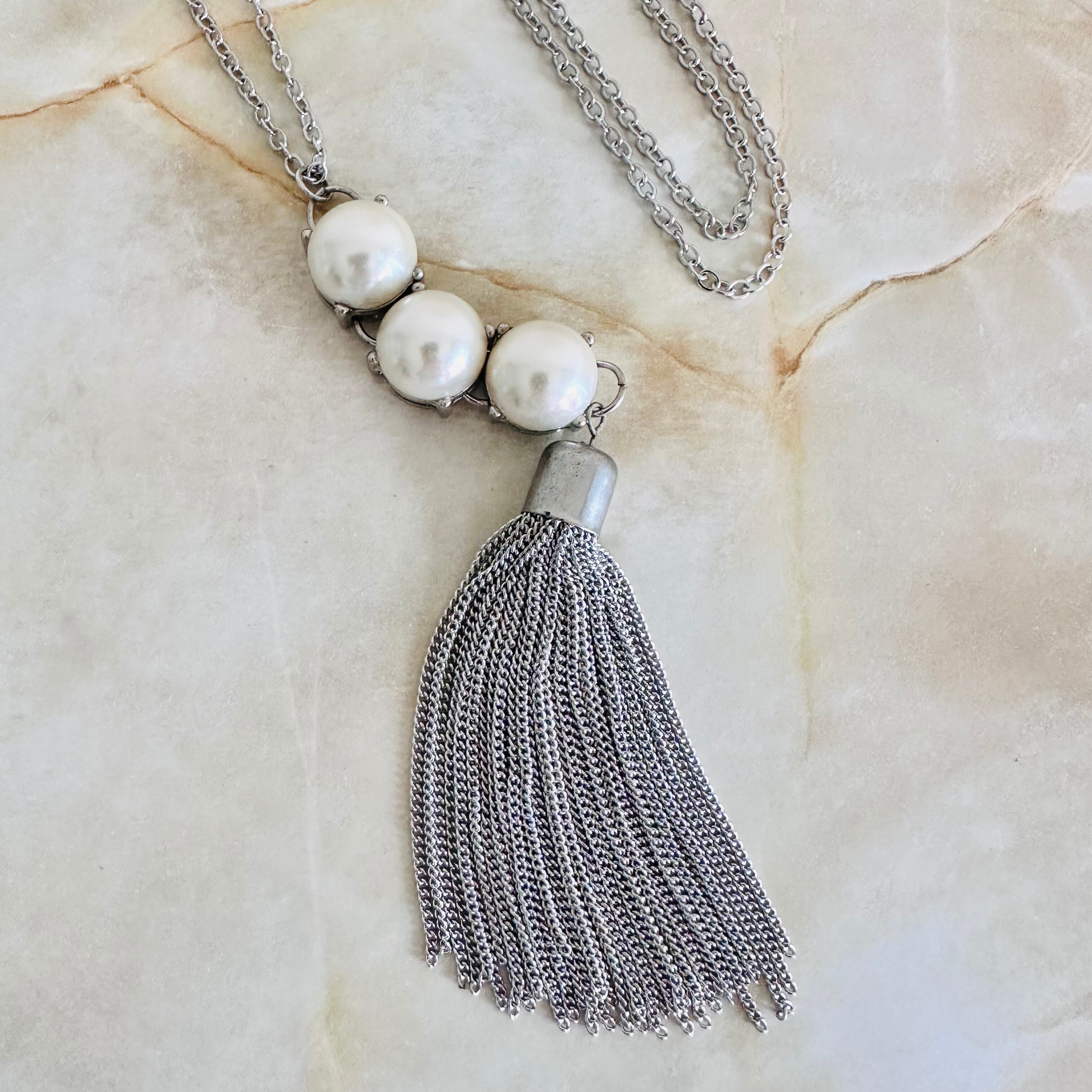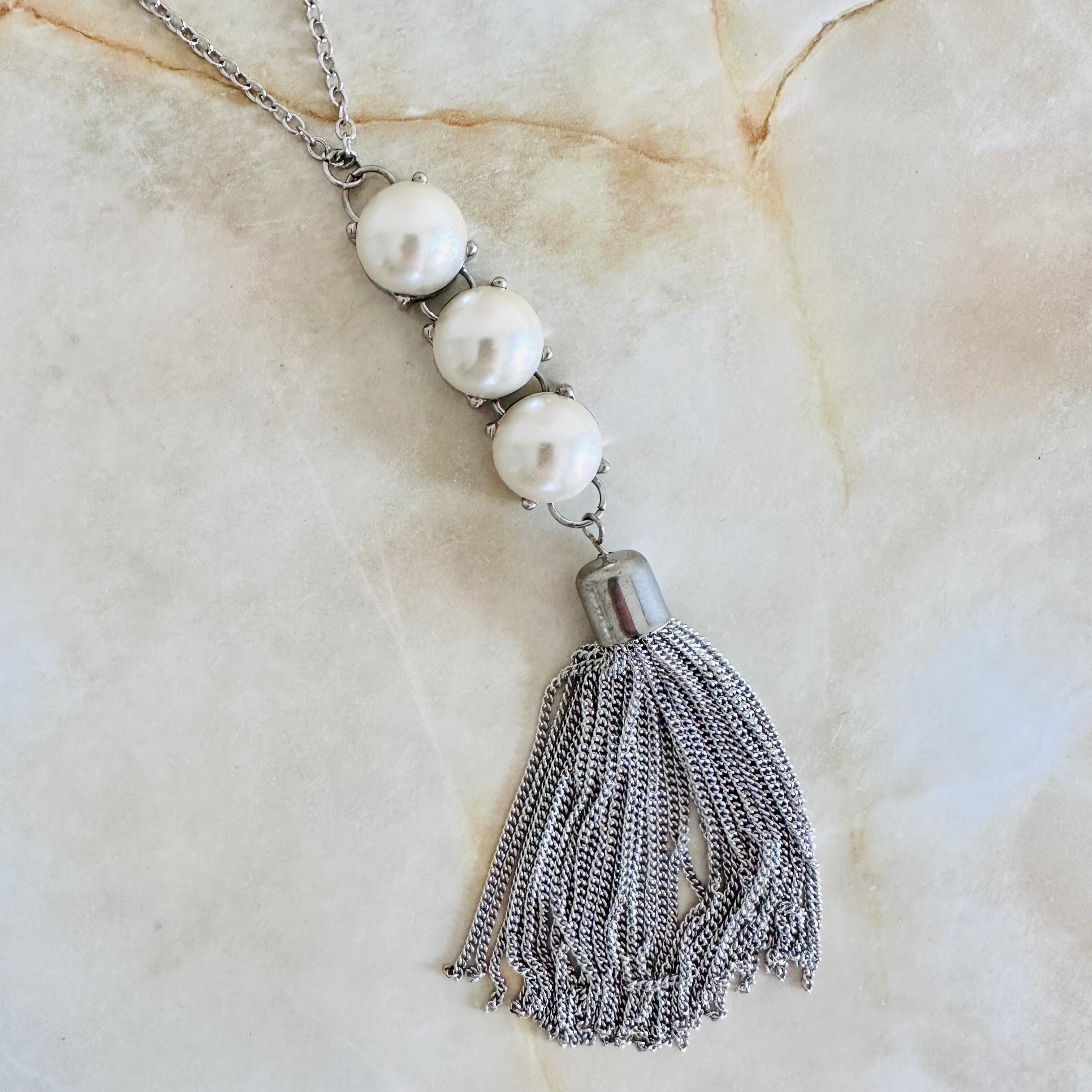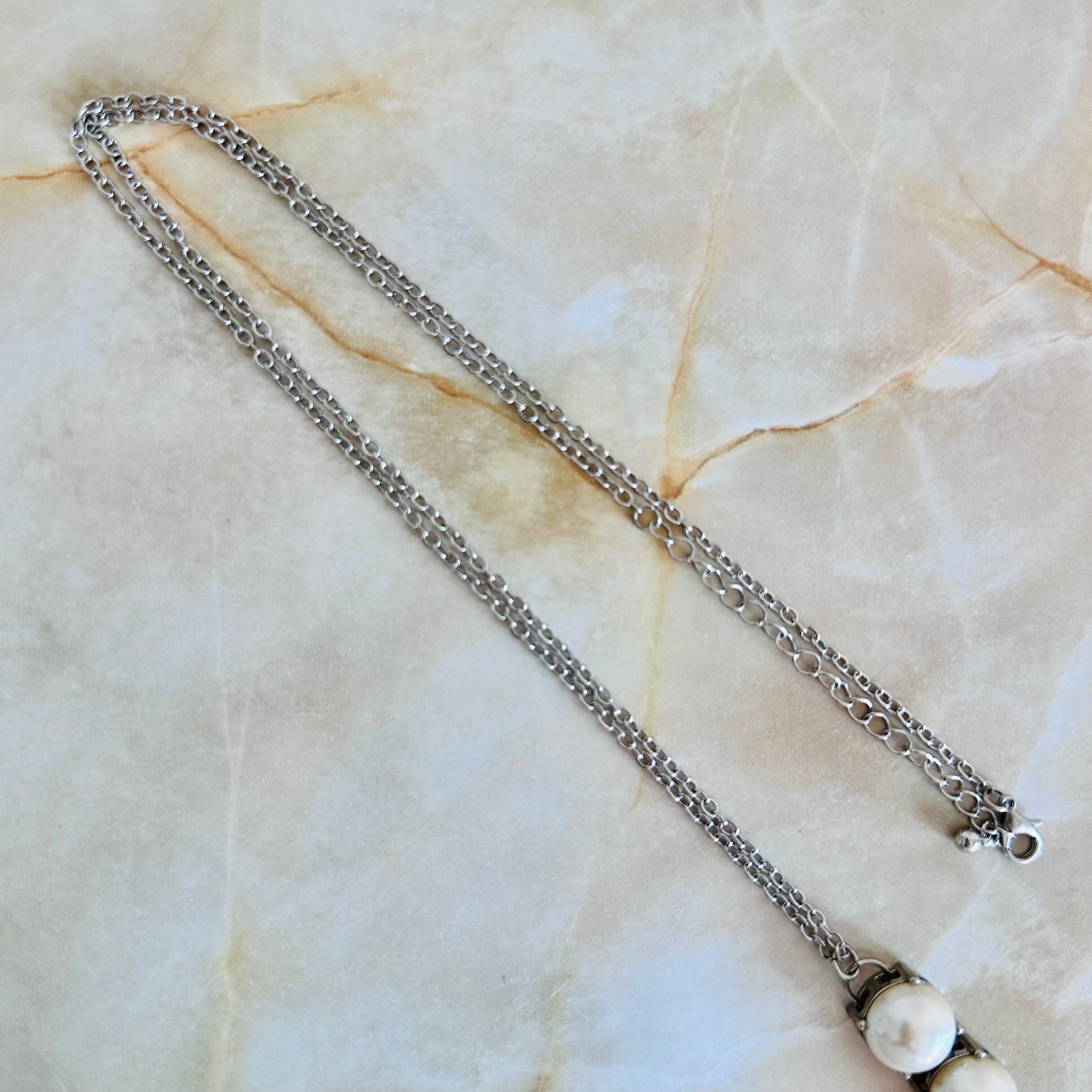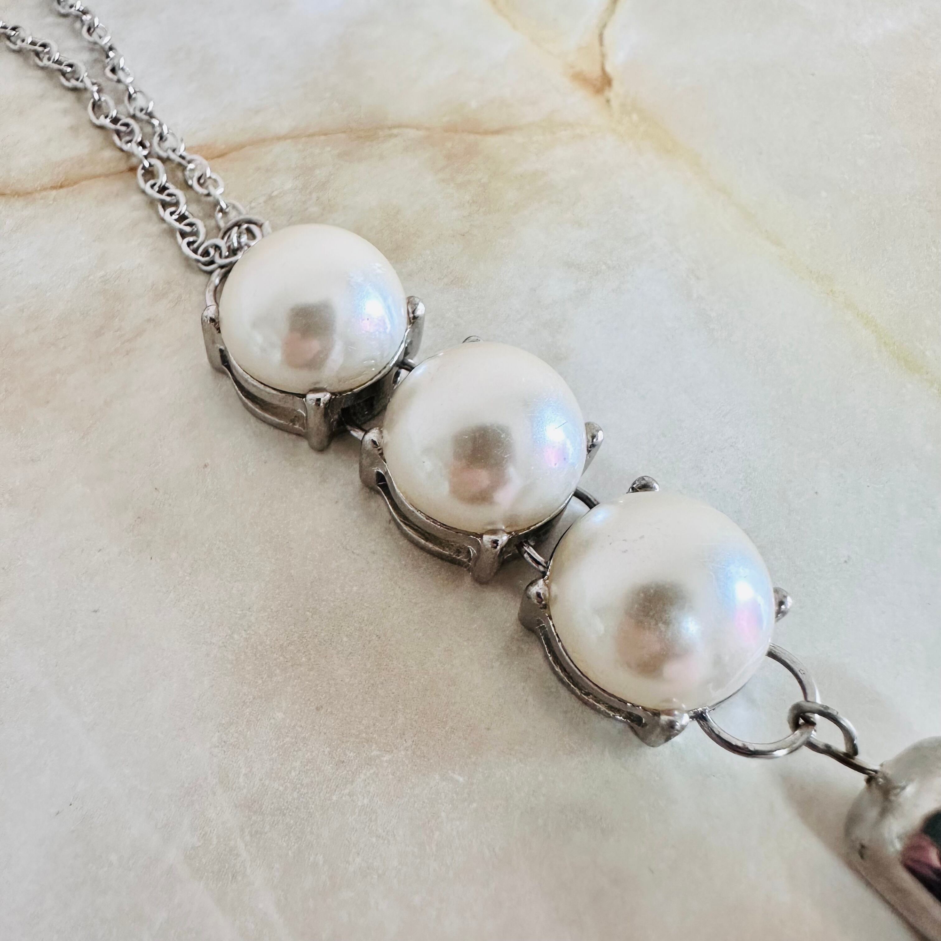 パール✖️シルバーカラーのロングネックレスです。