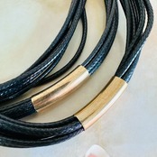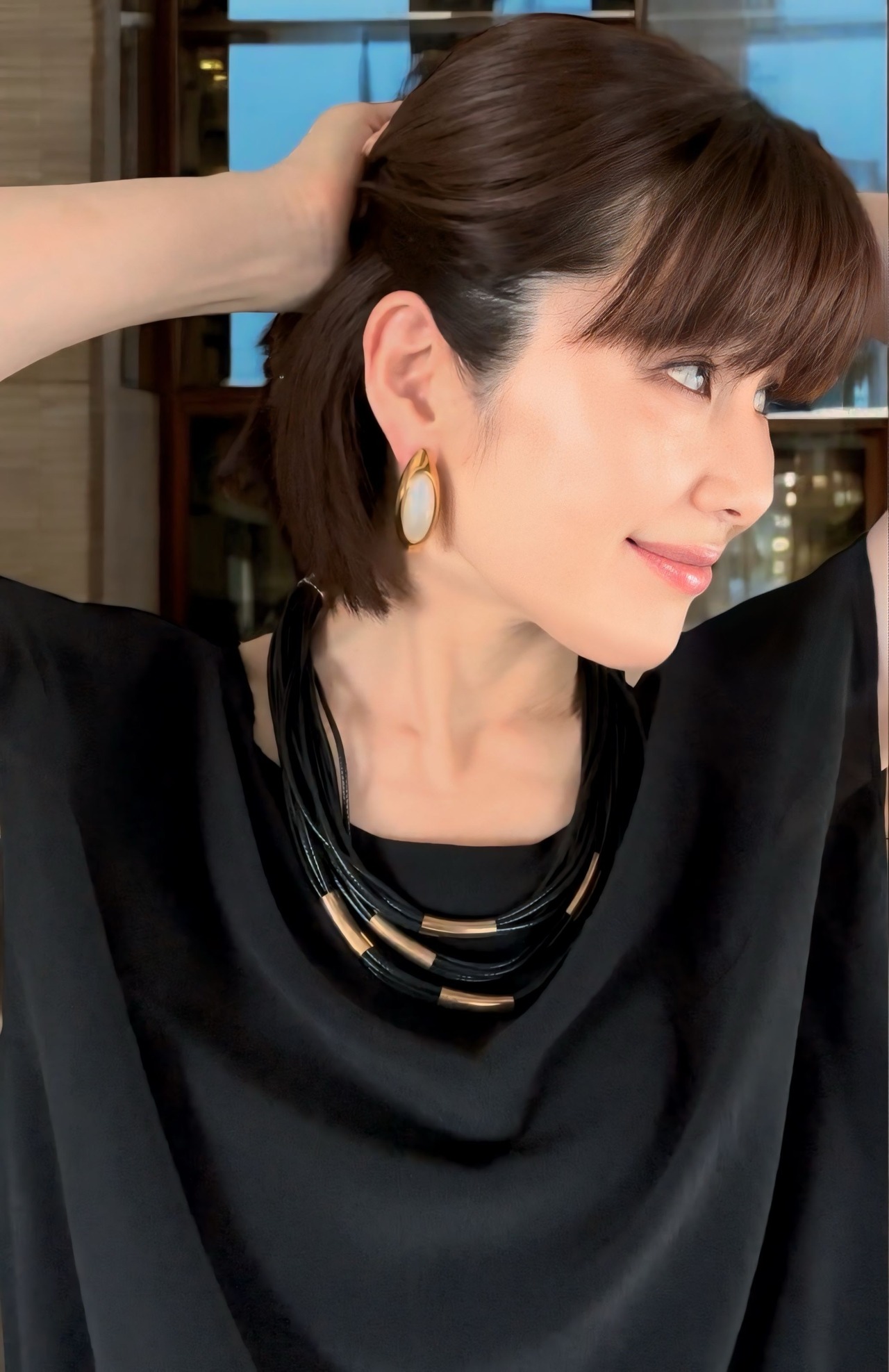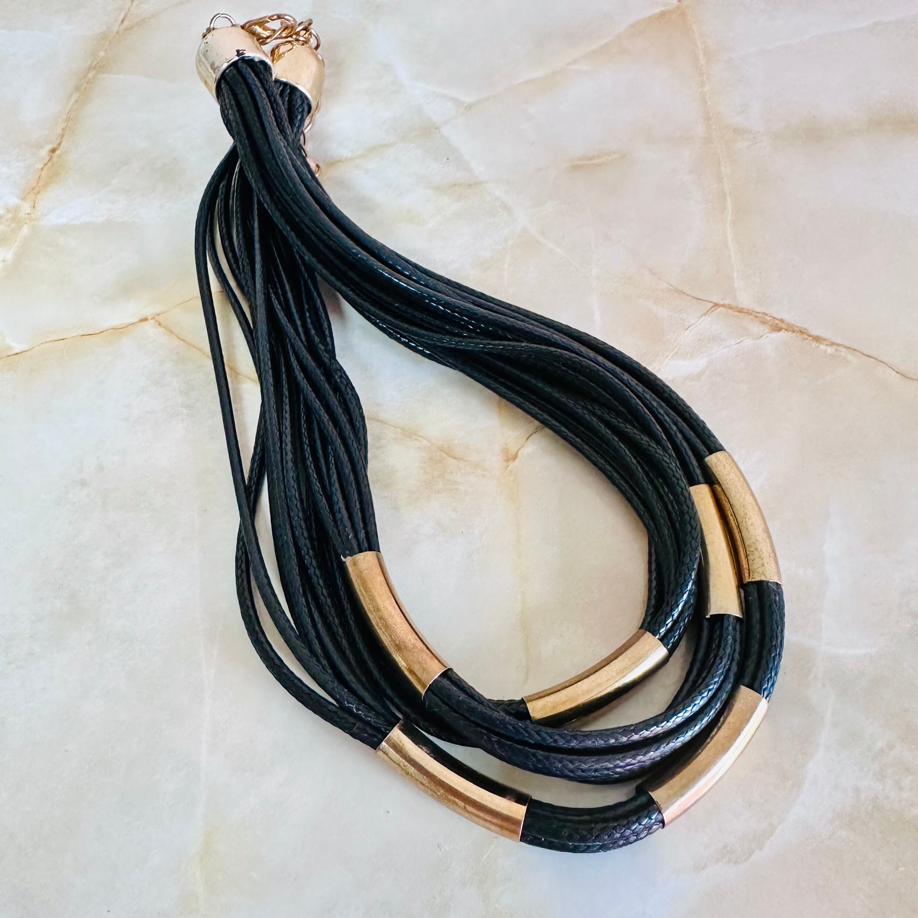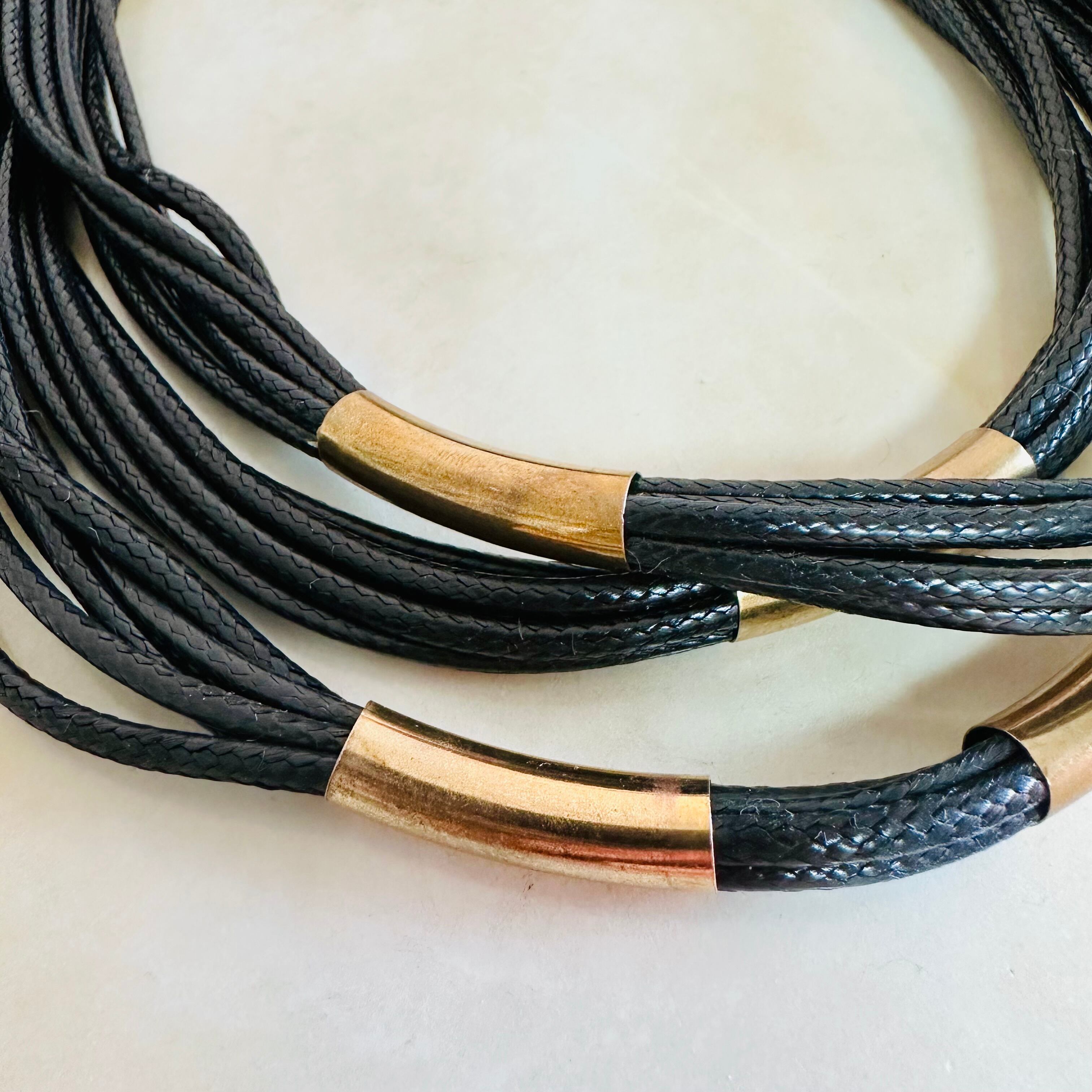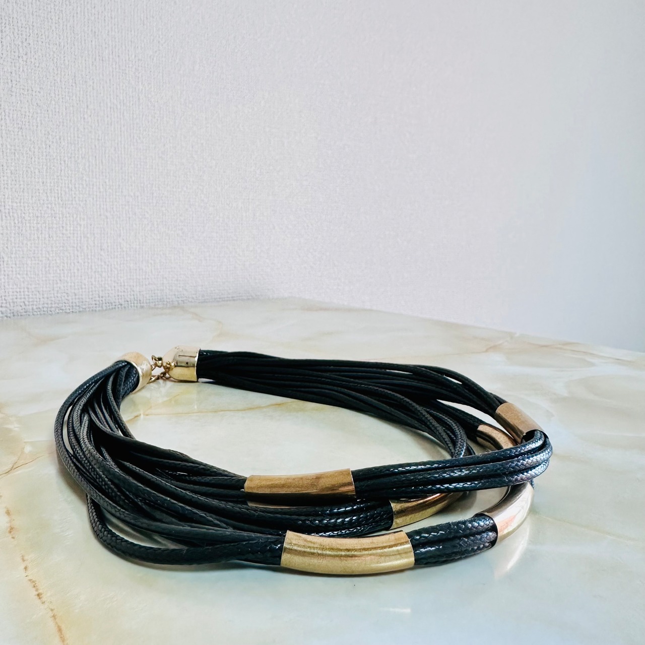 ブラックのコードをゴールドパーツで束ねコントラストをつけたデザインです。