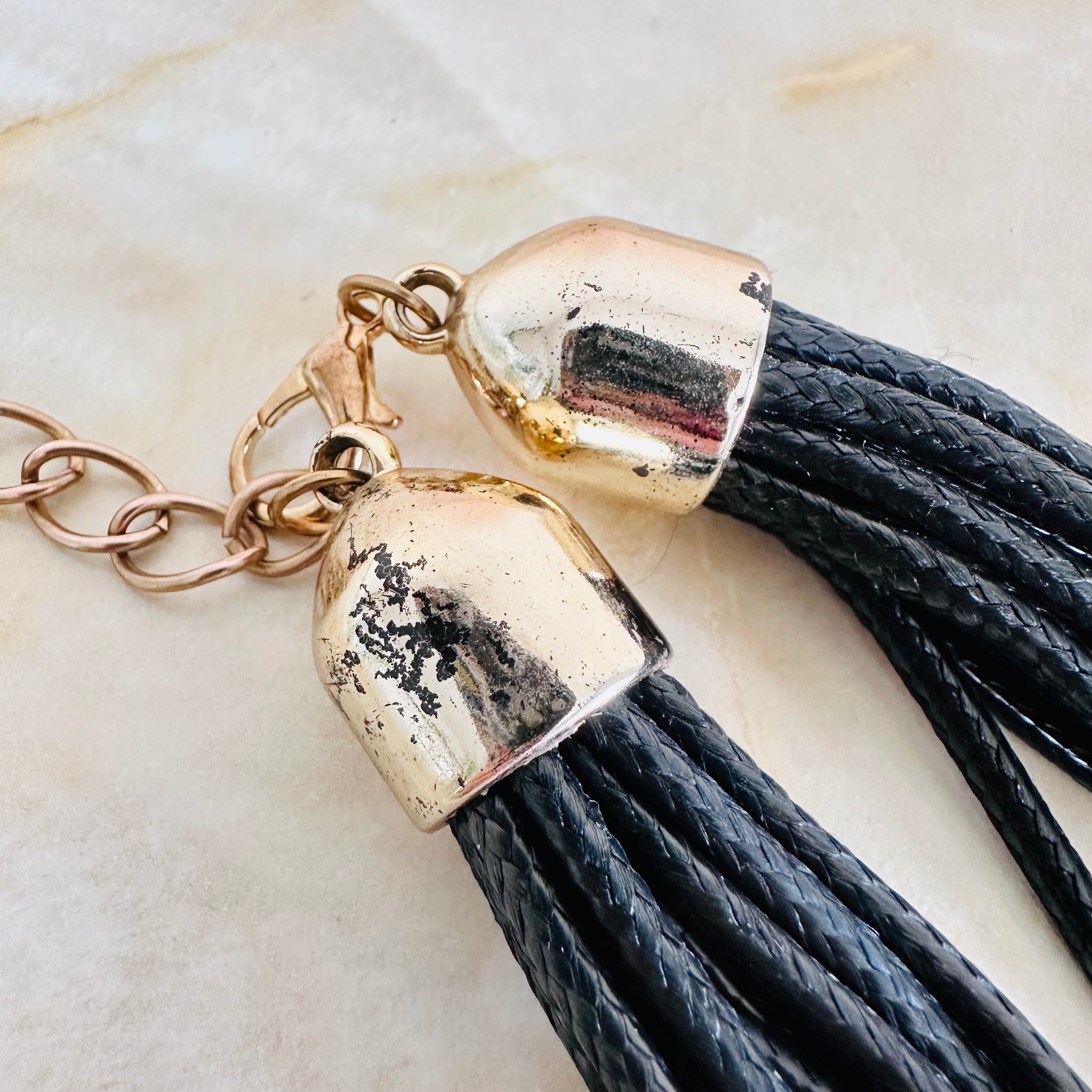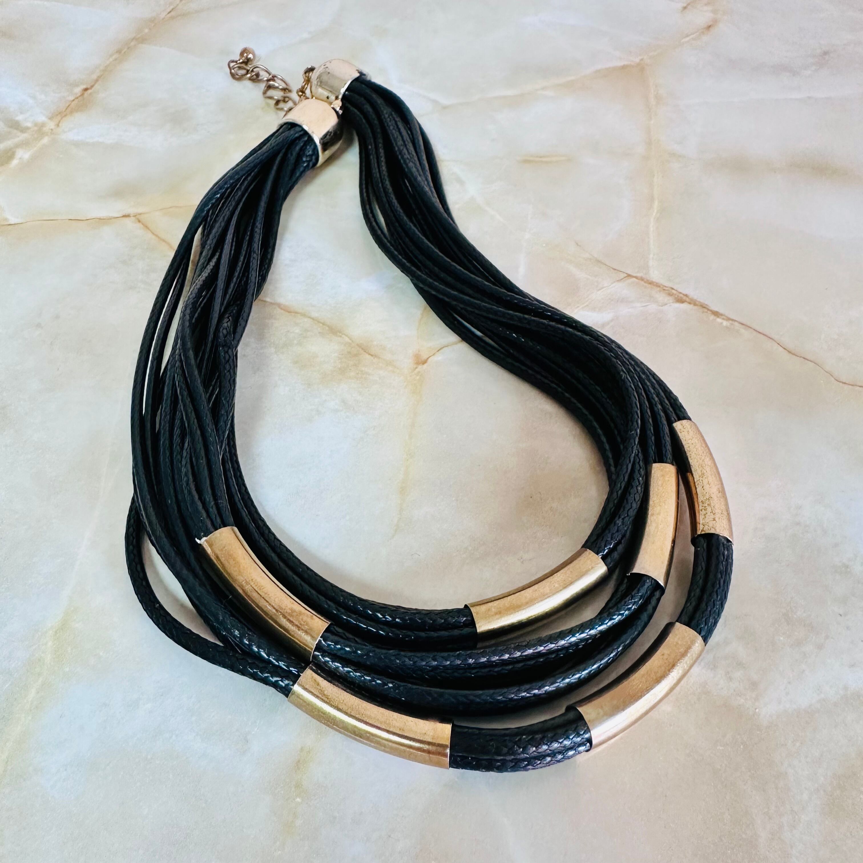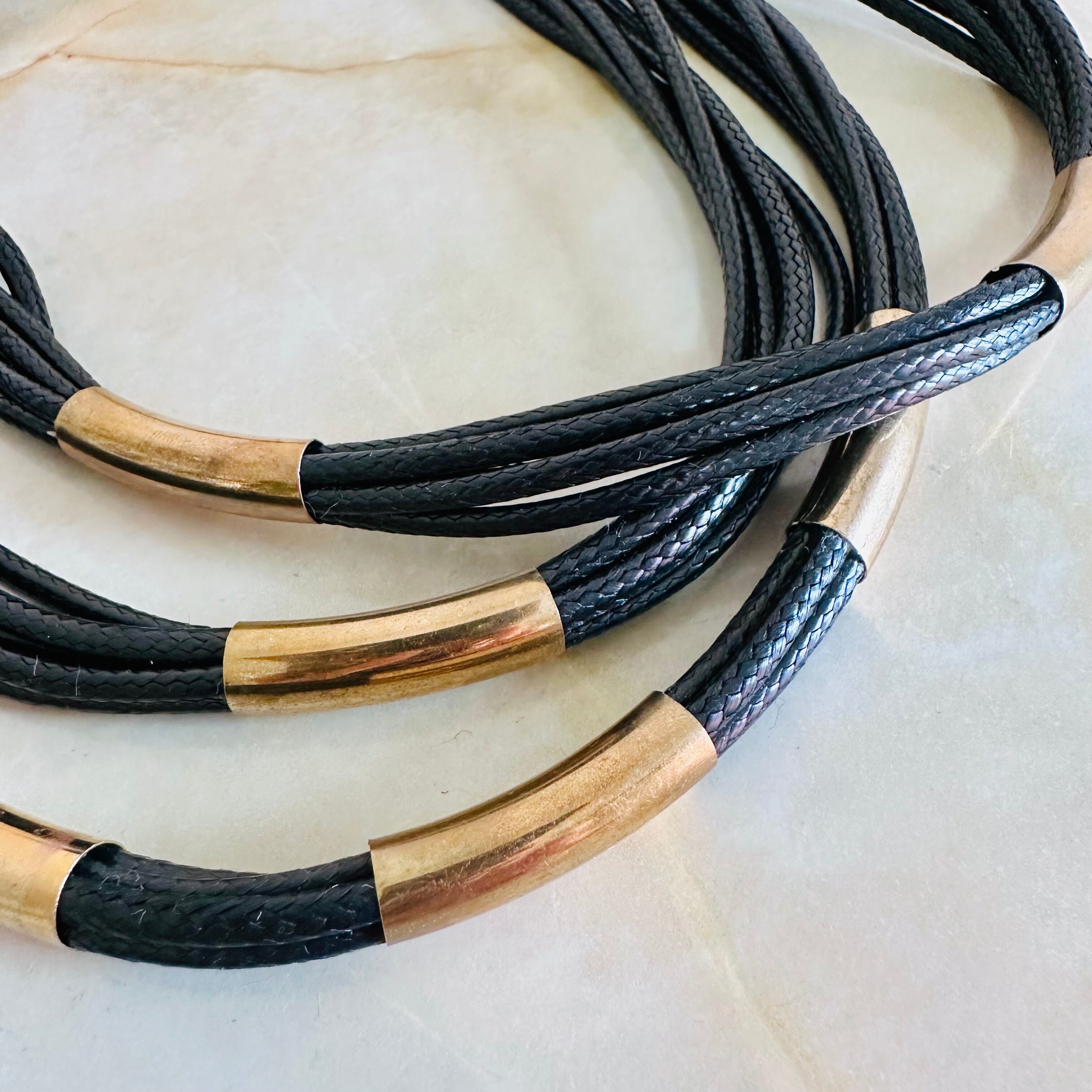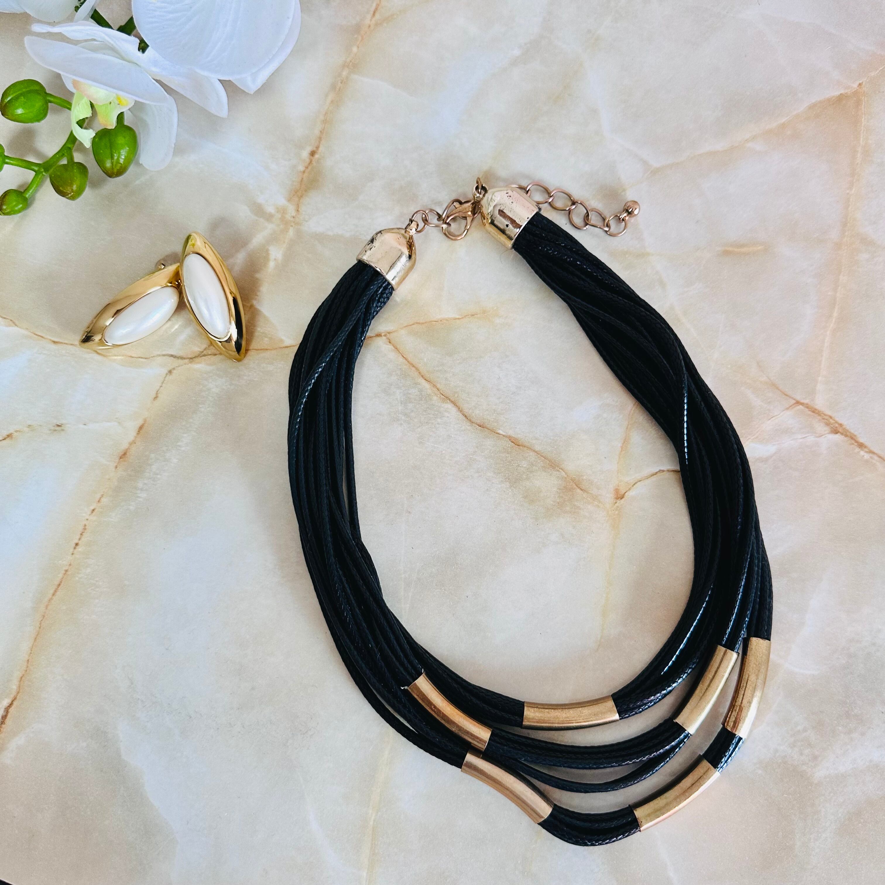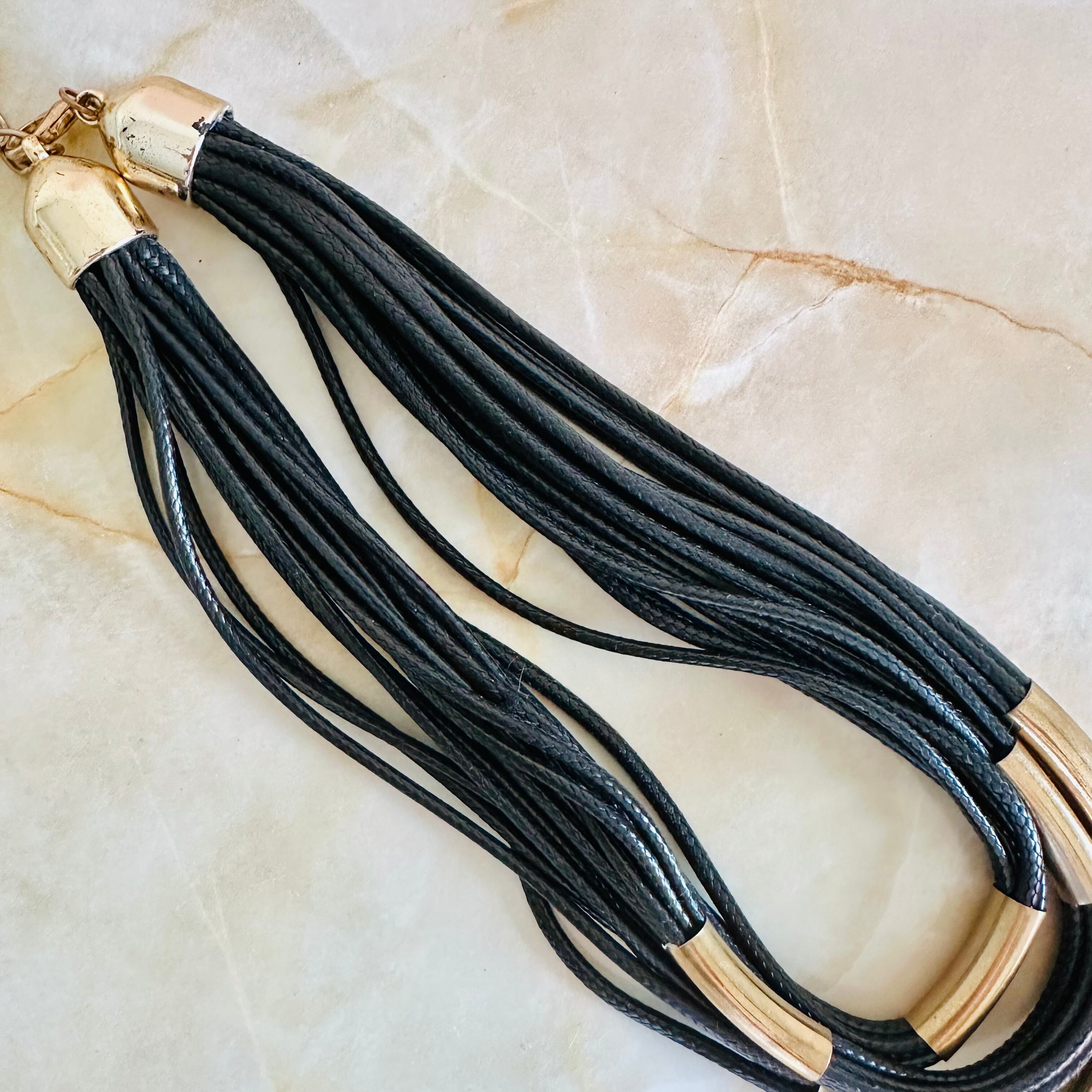 ブラックのコードをゴールドパーツで束ねコントラストをつけたデザインです。