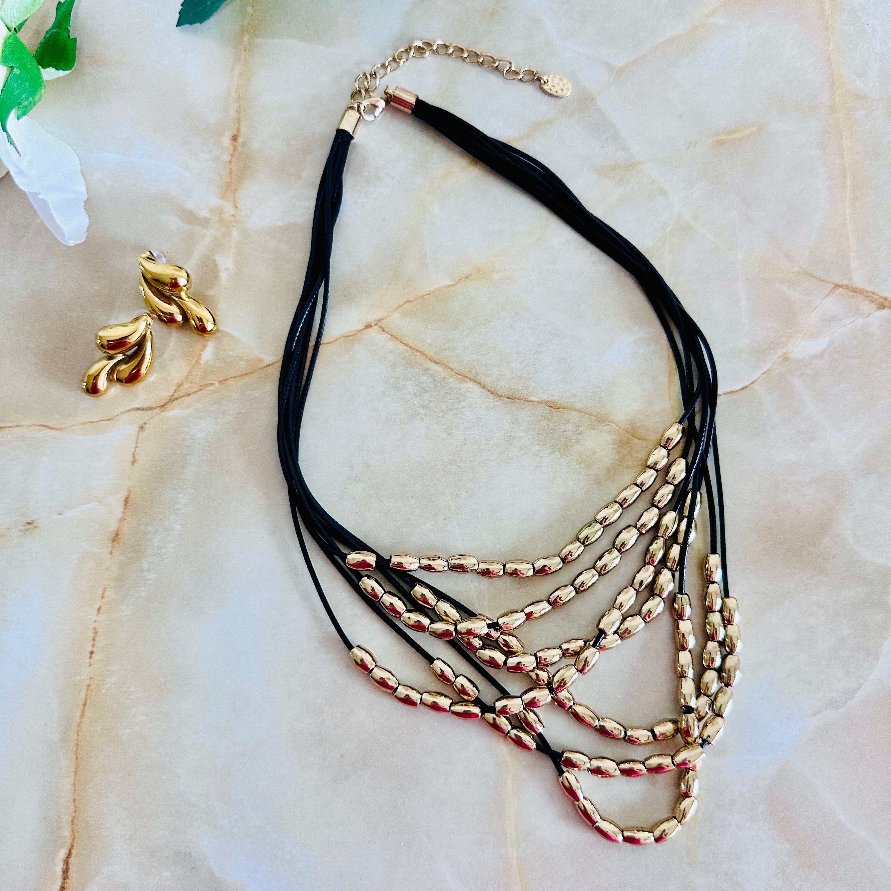 ブラック✖️ゴールカラーのネックレスです。