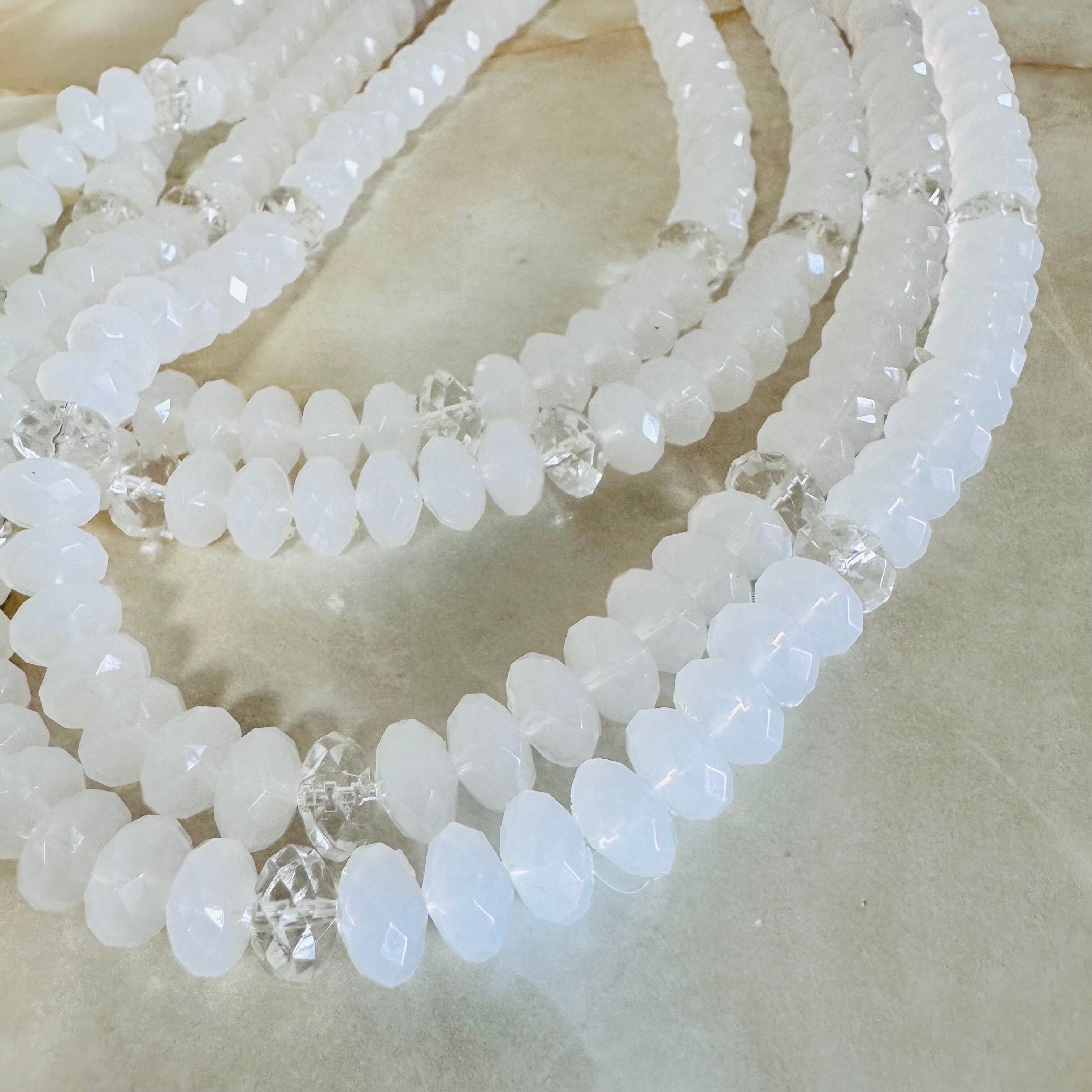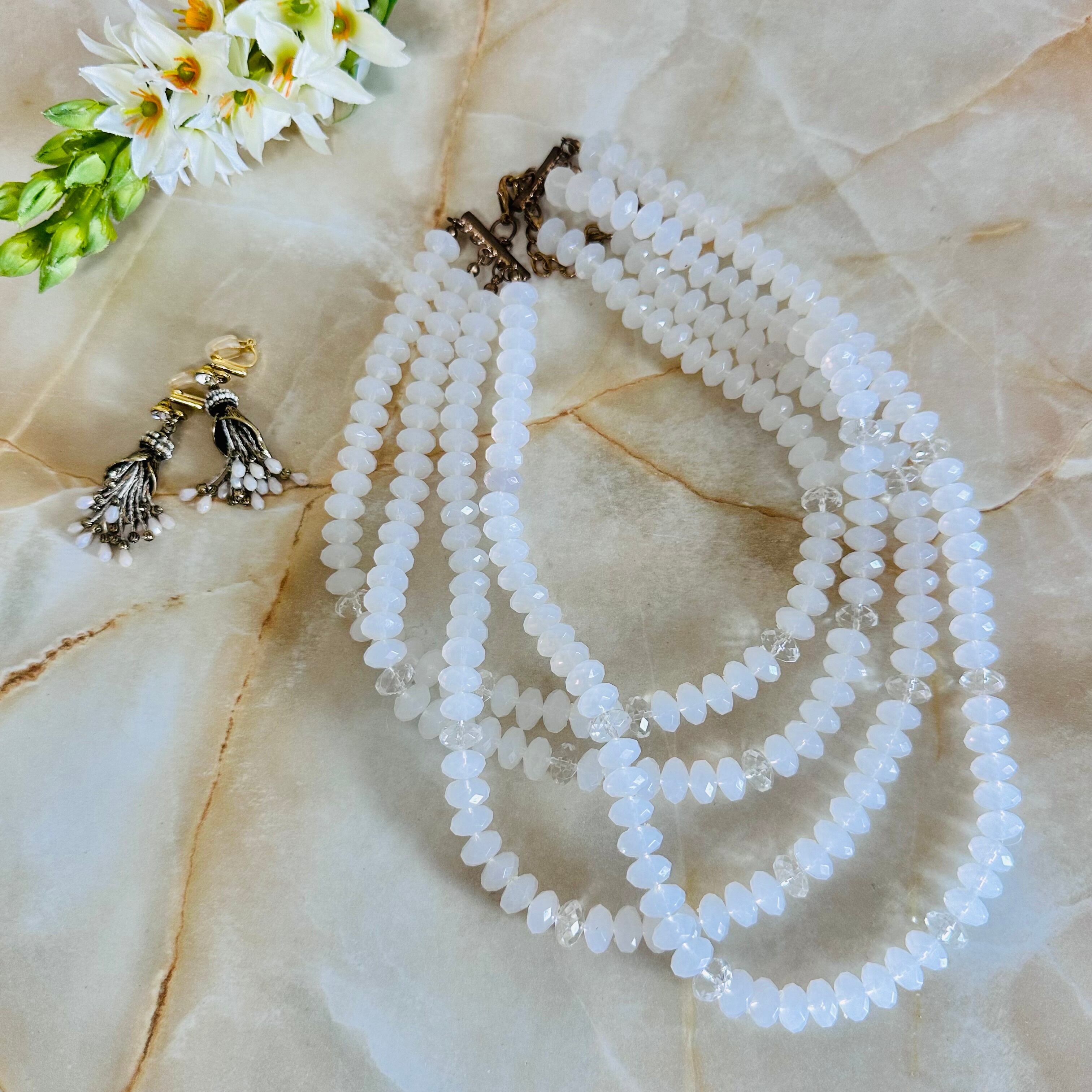 半透明のホワイトビーズにクリアカラーをプラスしボリュームのあるデザインに仕上げています。