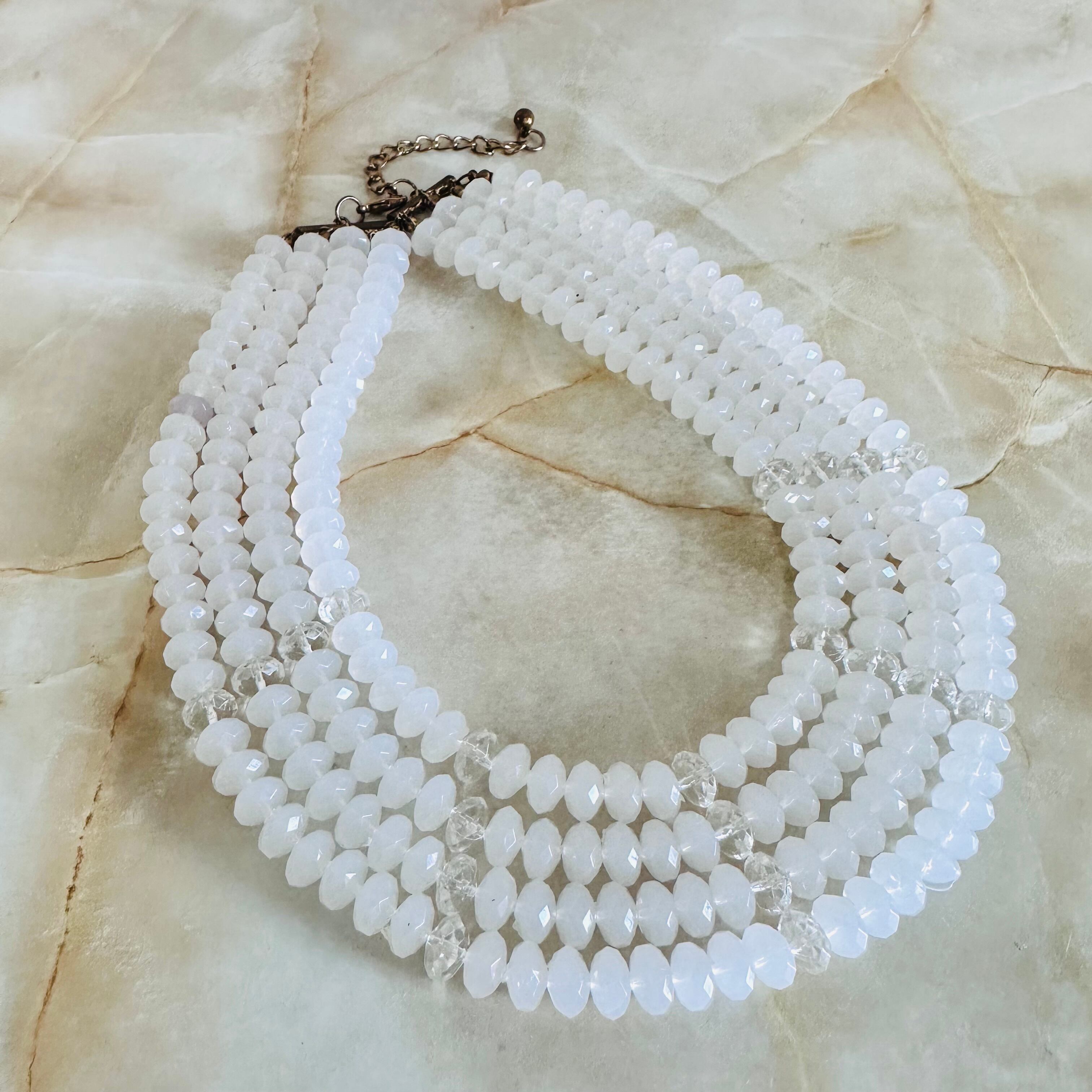 ホワイト、クリア✖️アンティークゴールドカラーのネックレスです。