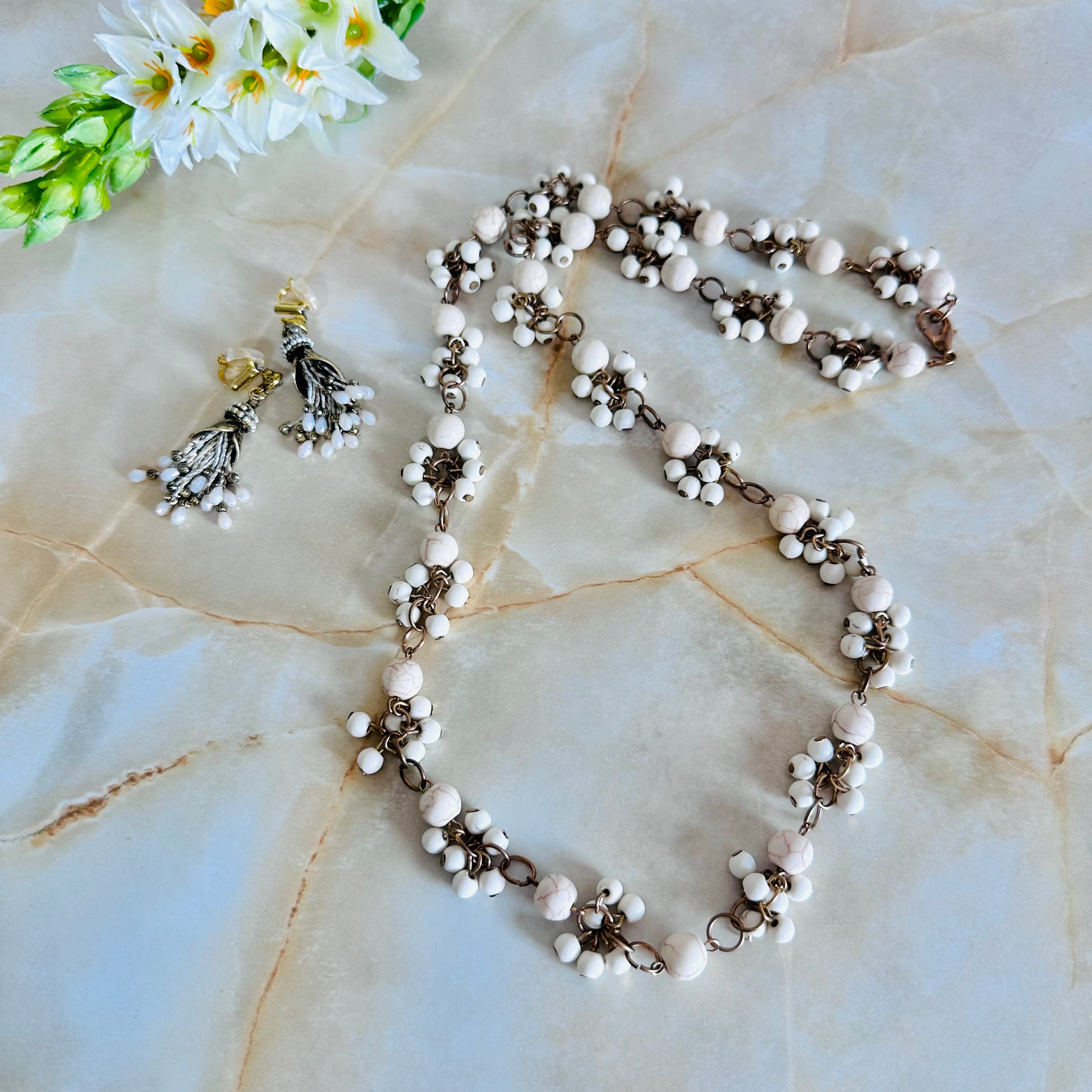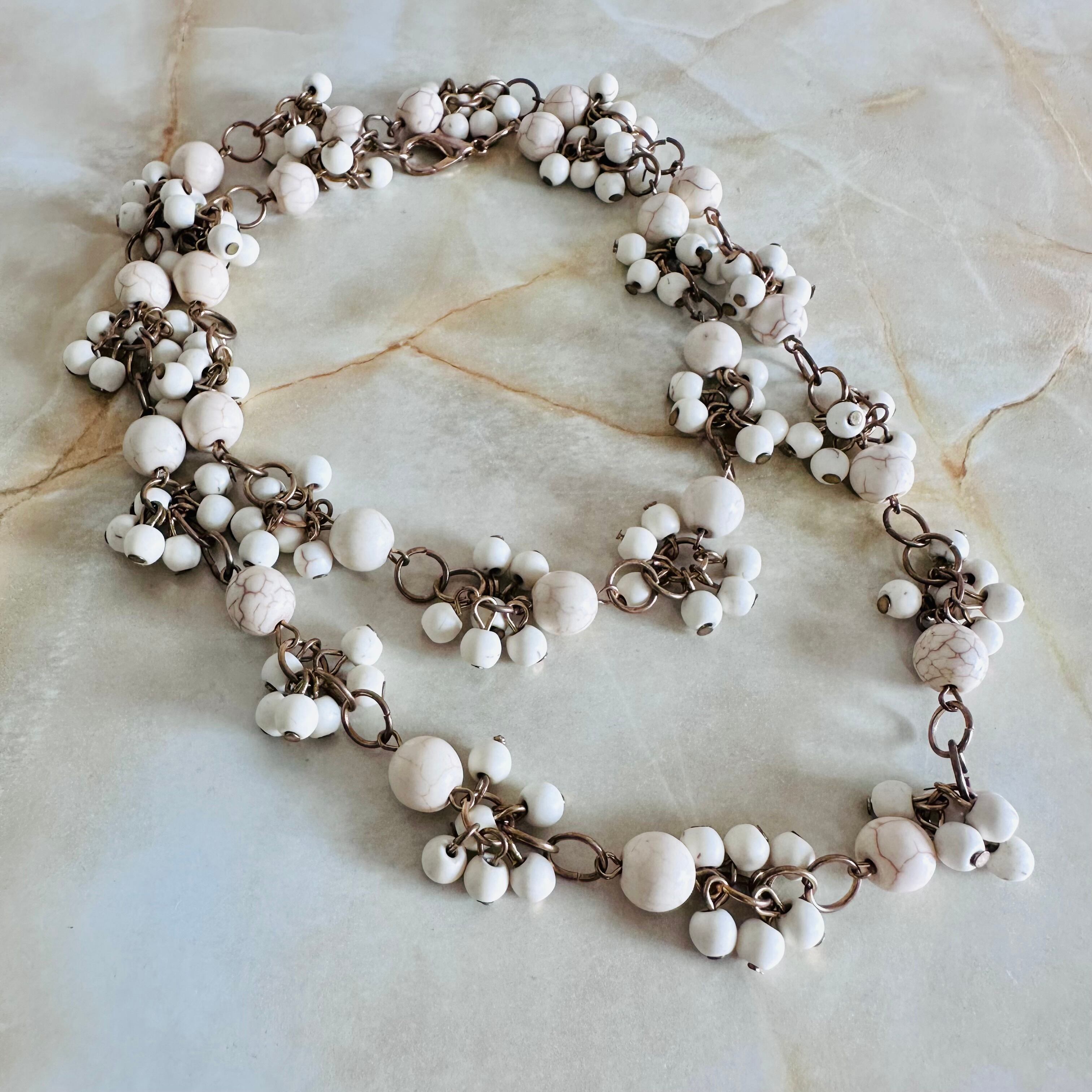ホワイトターコイズカラー✖️アンティークゴールドカラーのネックレスです。