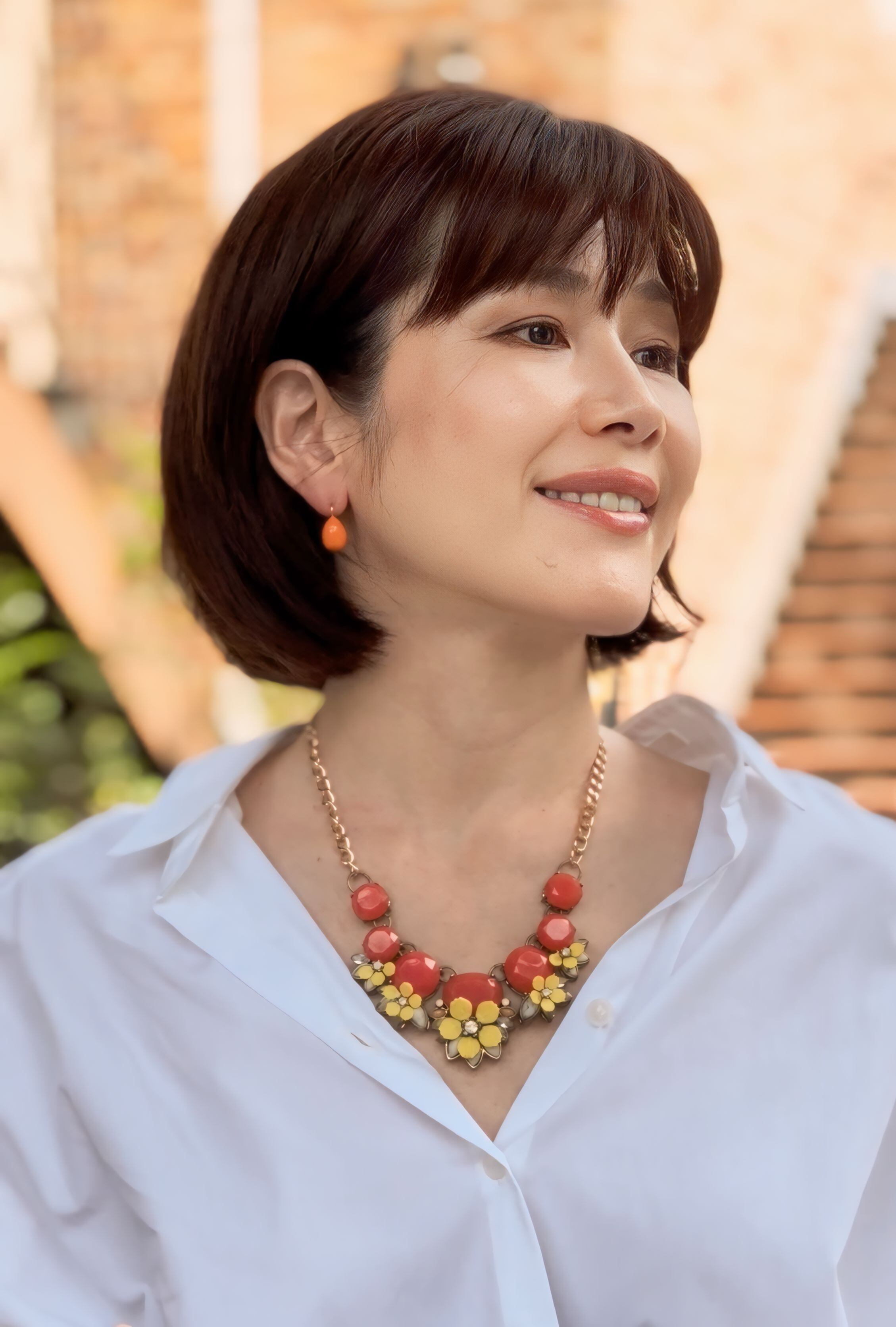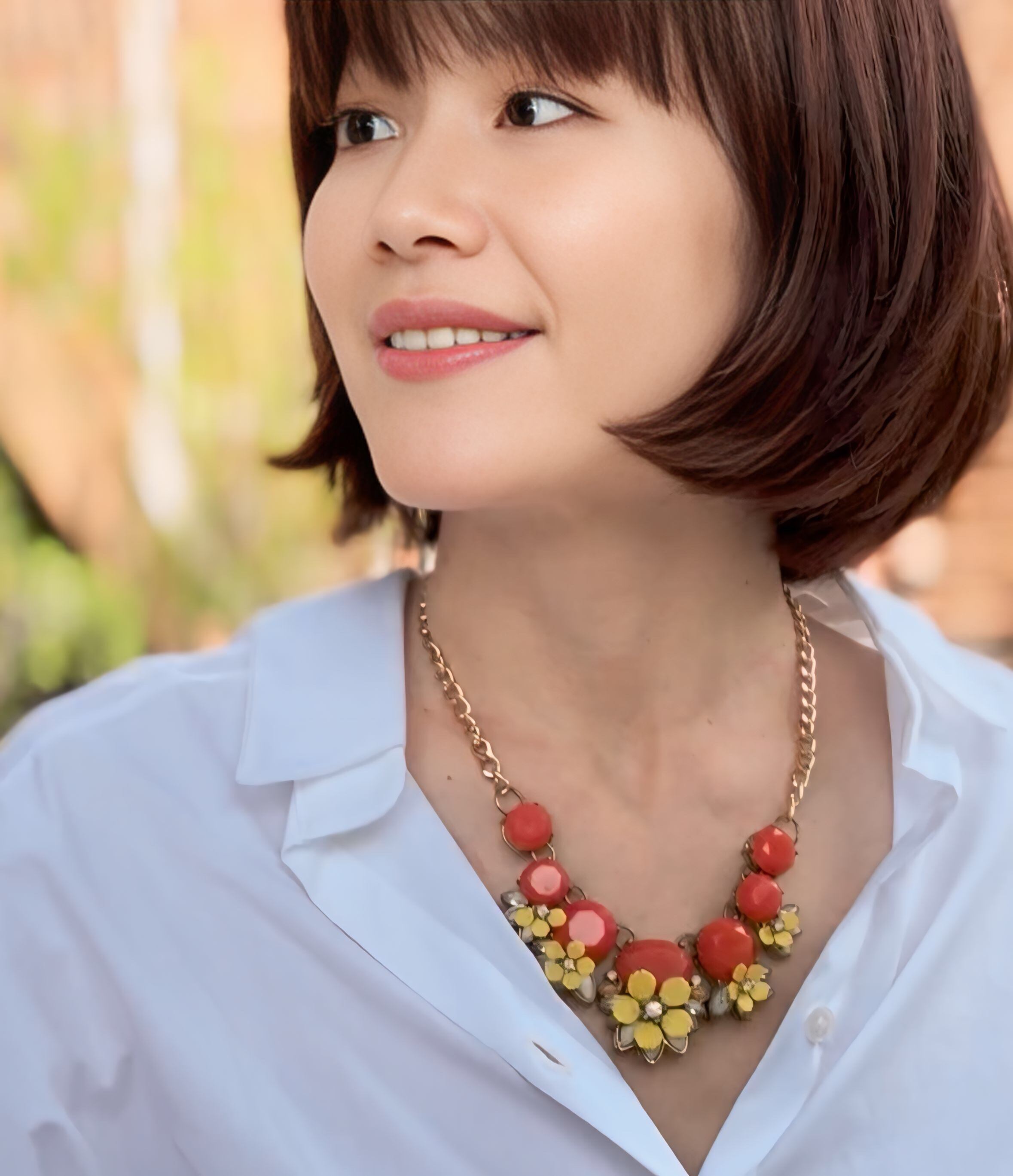オレンジ、イエロー✖️ゴールドカラーのネックレスです。