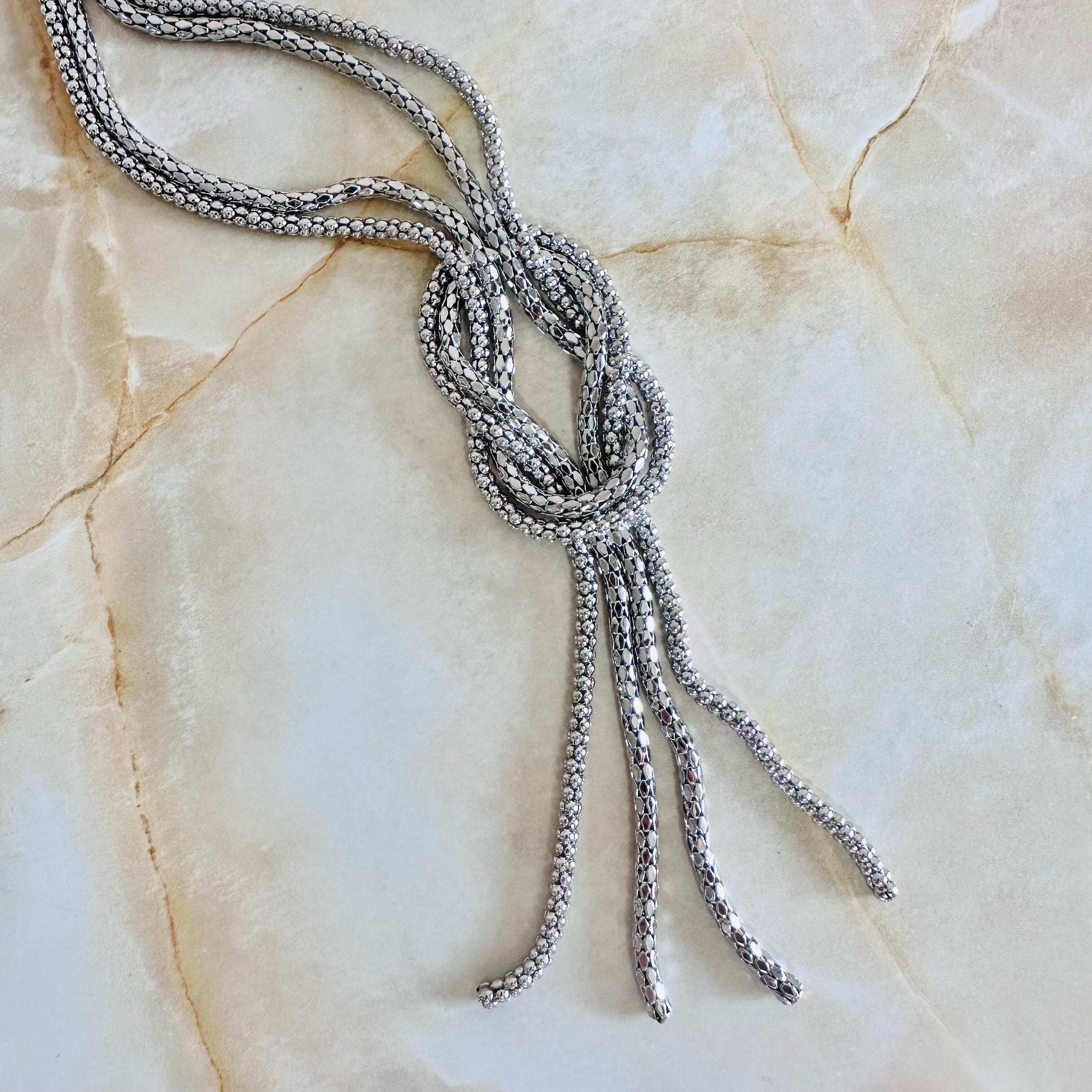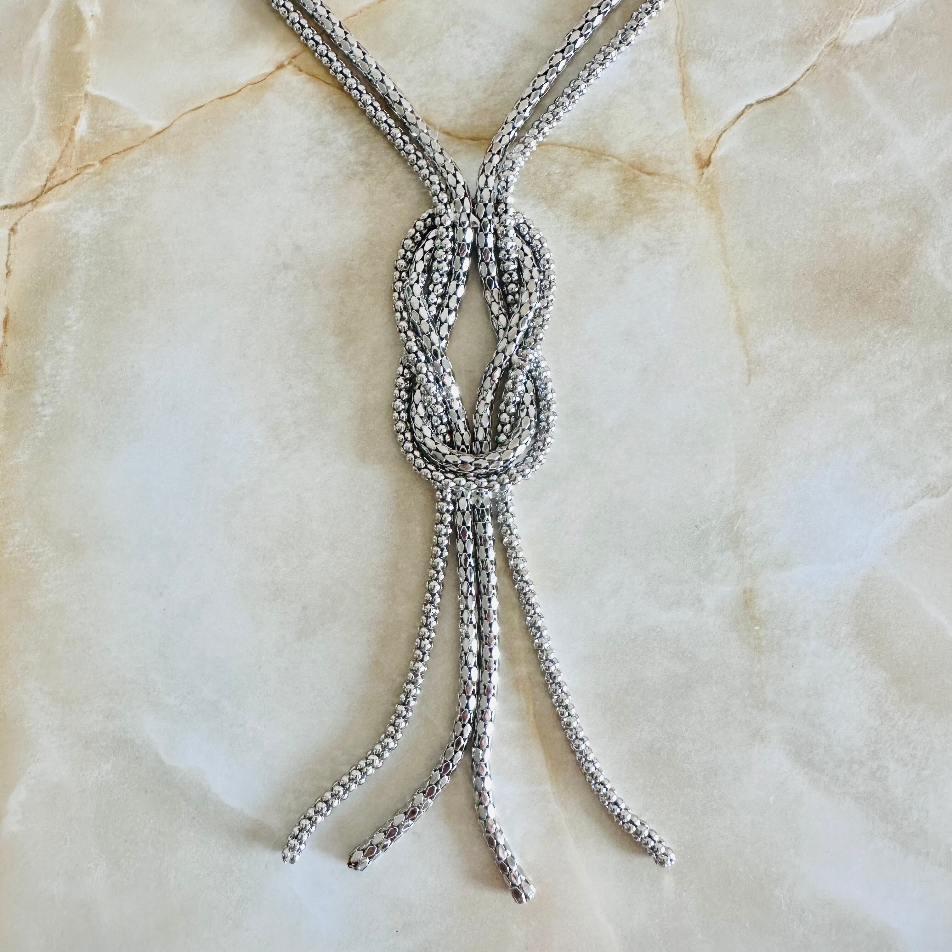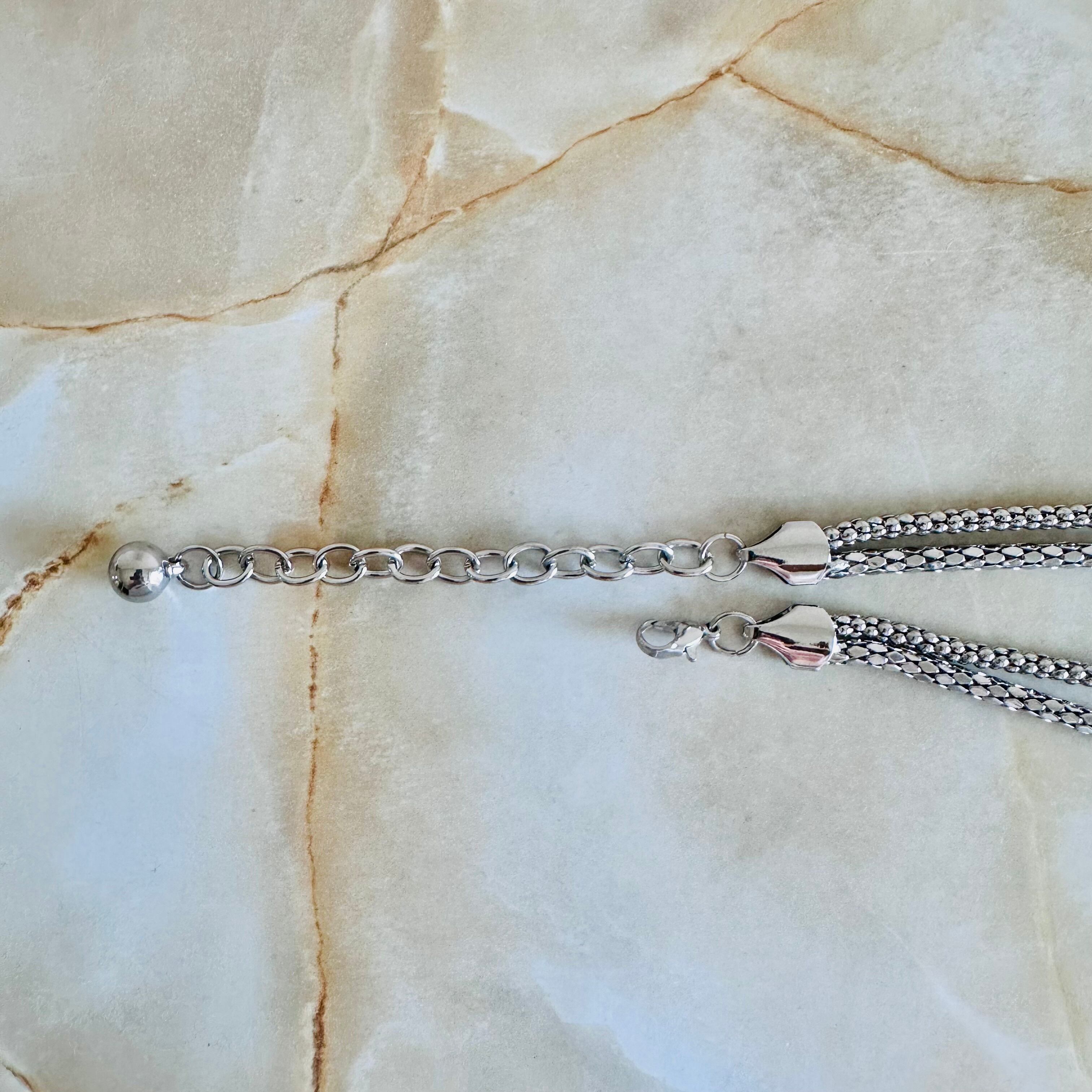 輝きのあるシルバーチェーンを使用し、スッキリしたデザインに仕上げました。