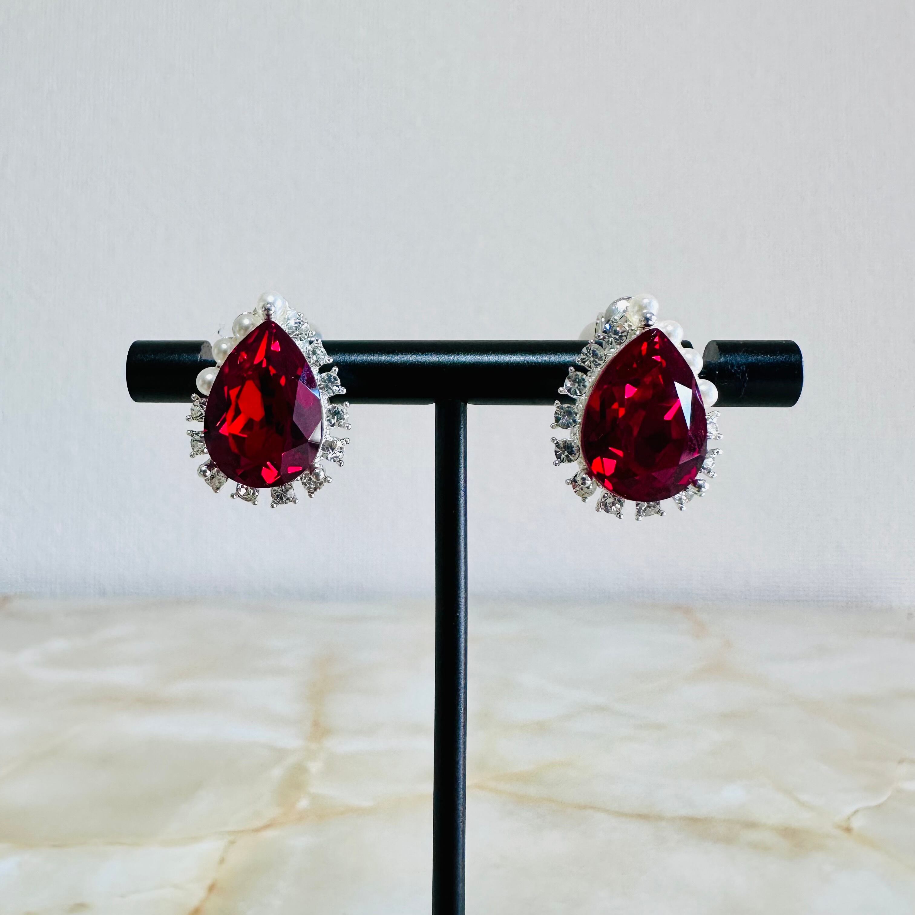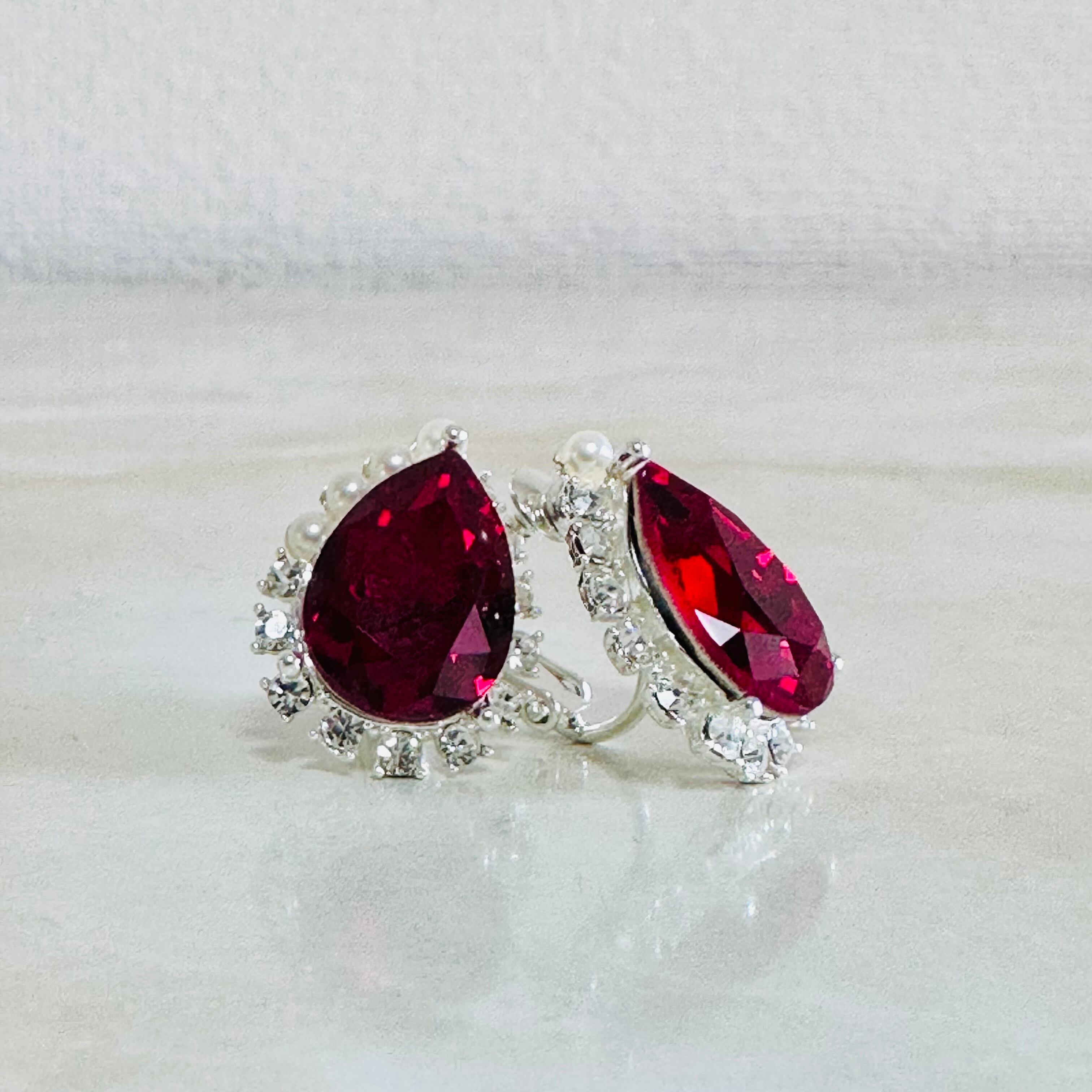 レッド、パール、クリア✖️シルバーカラーのイヤリングです。