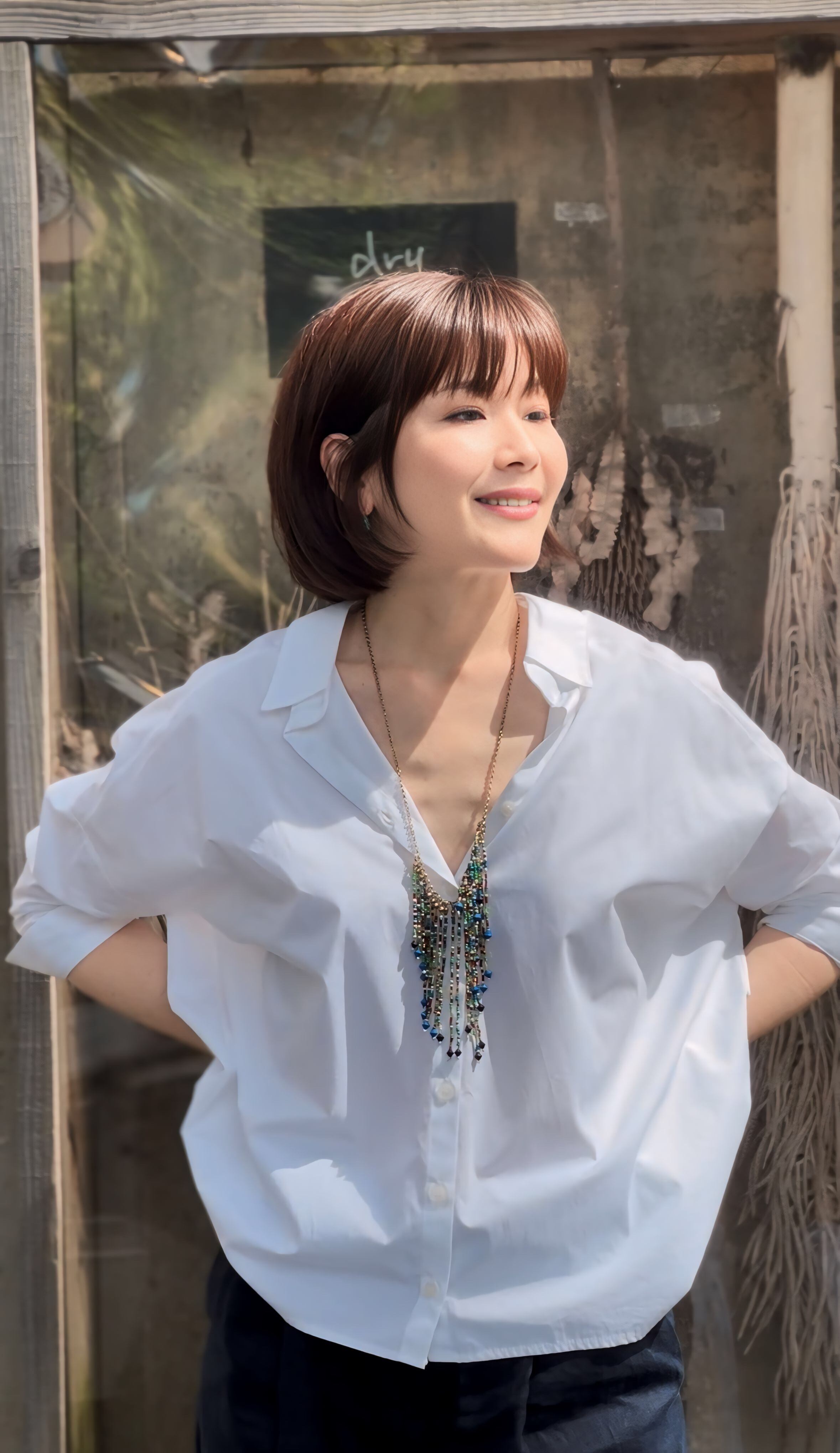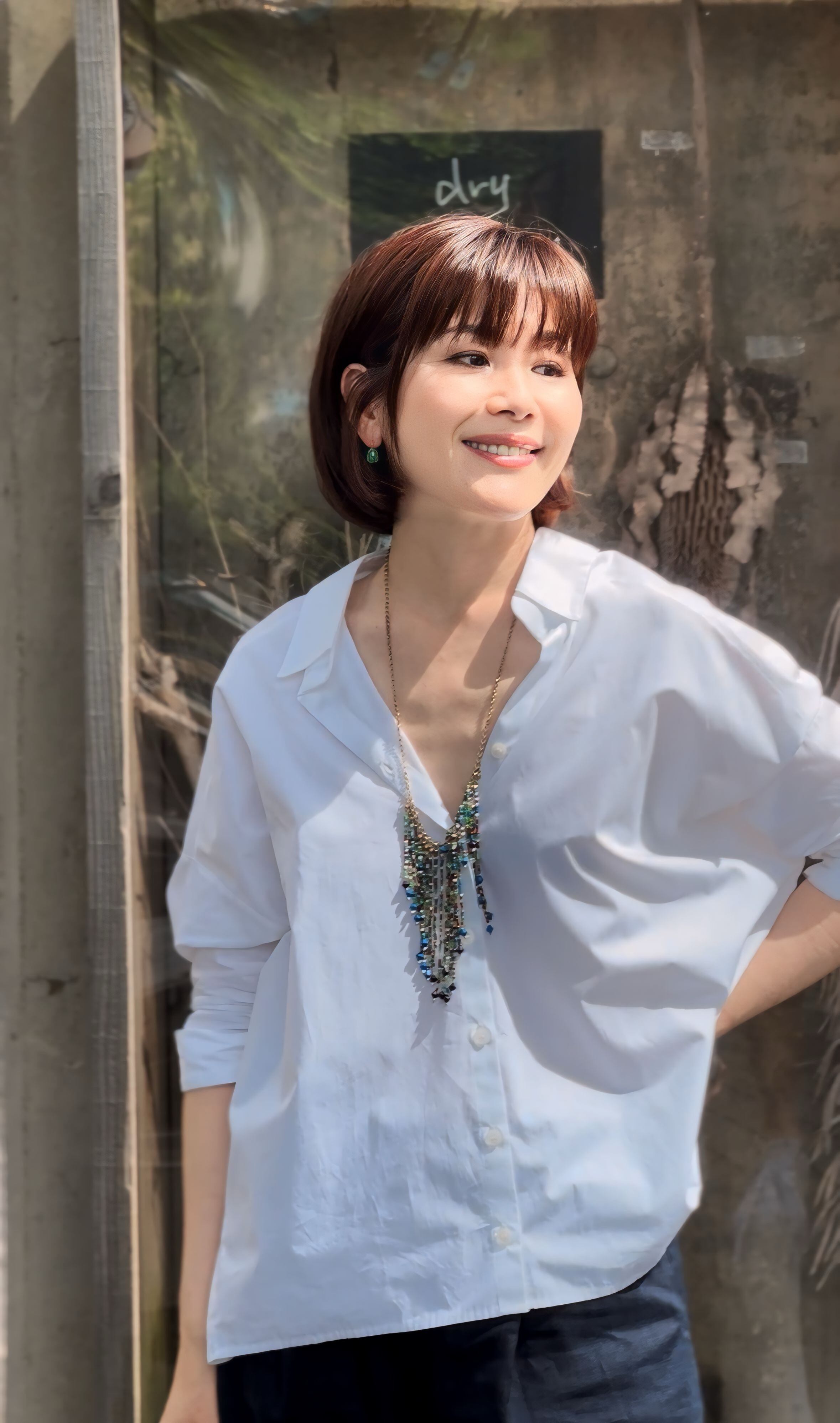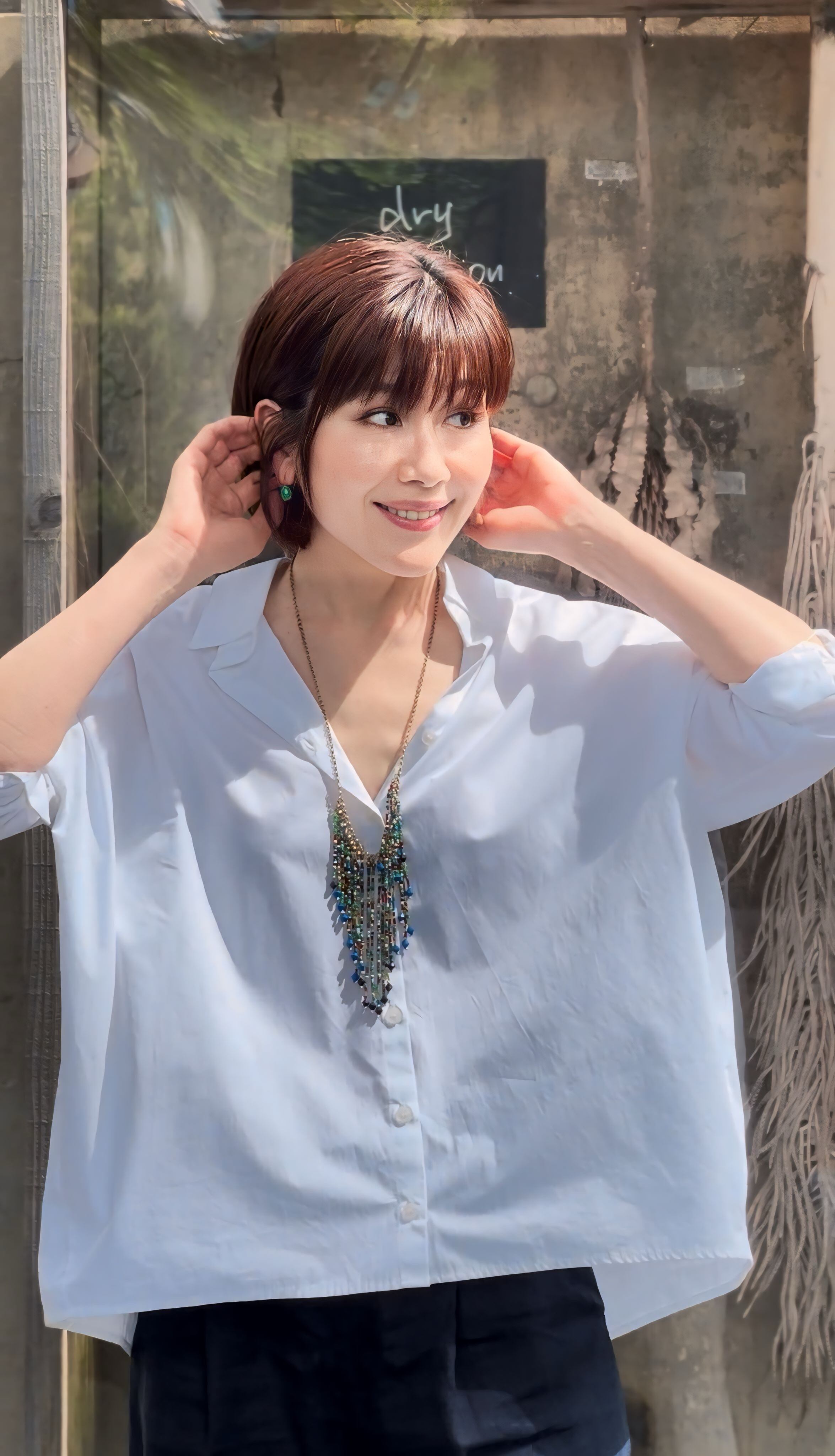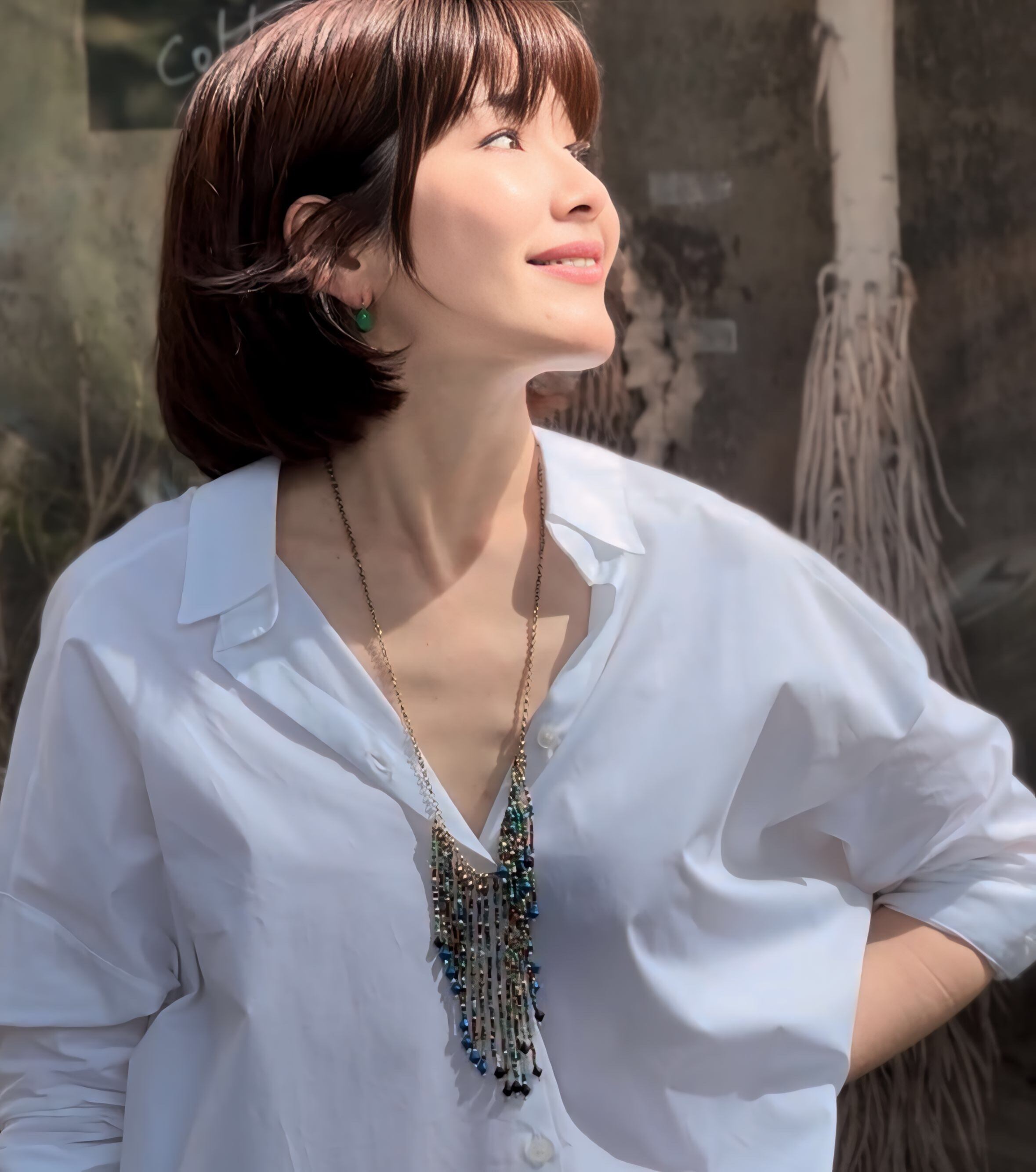 細めのチェーンでのロングデザインはスタイリングに清涼感を与えてくれます。