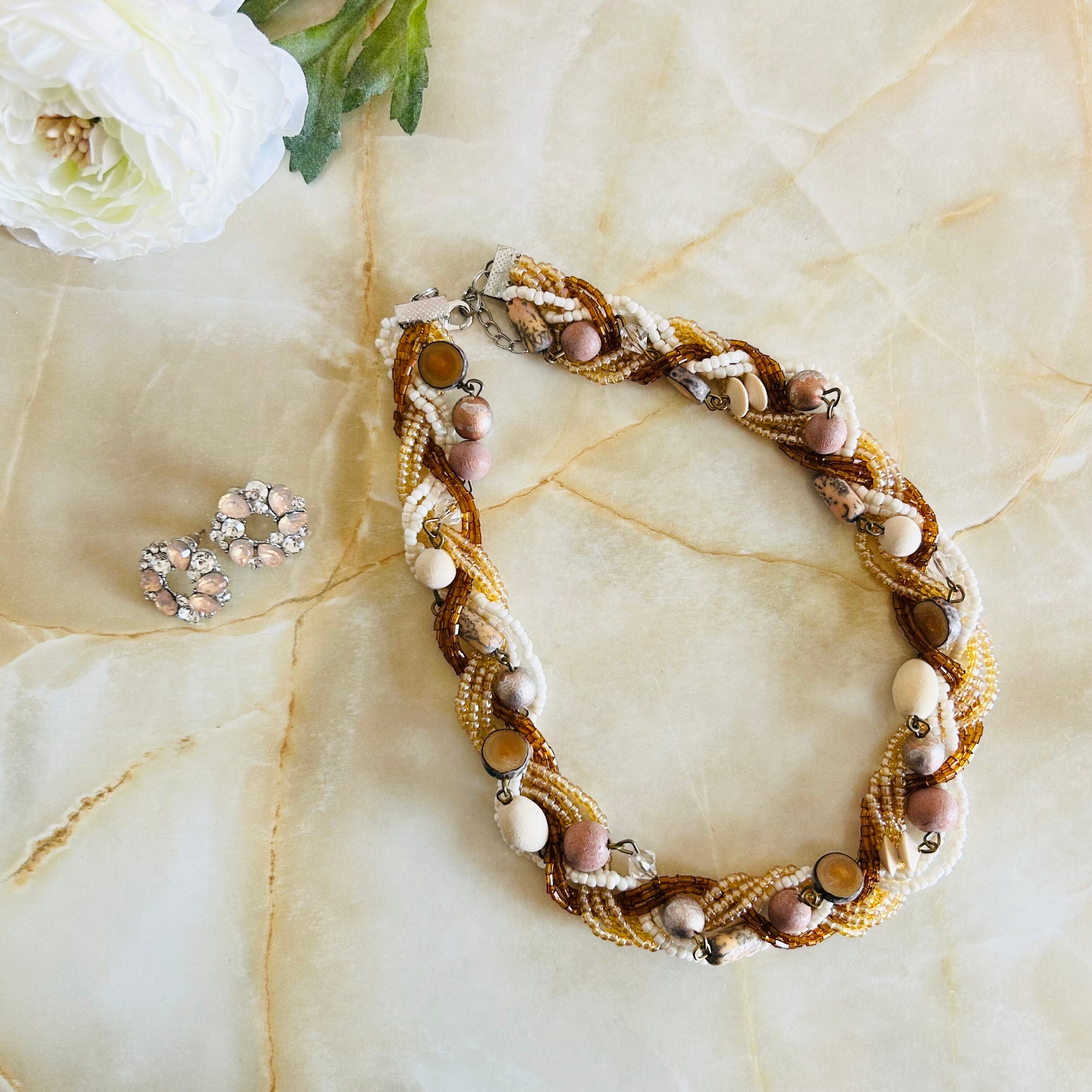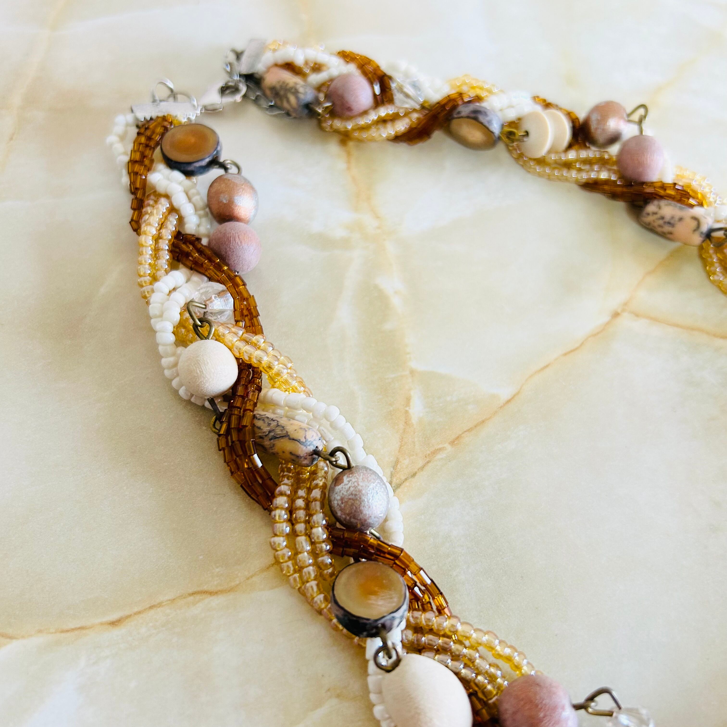 アイボリー系✖️シルバーカラーのネックレスです。