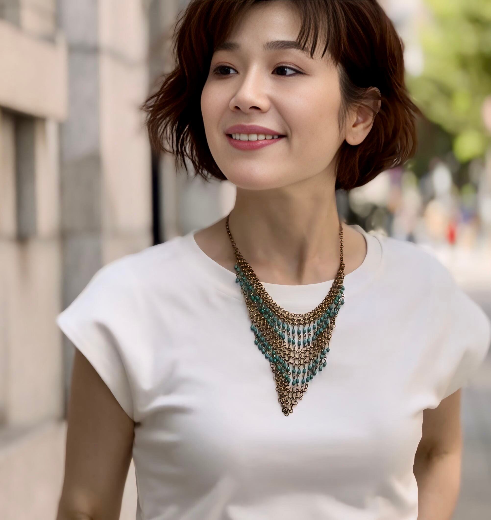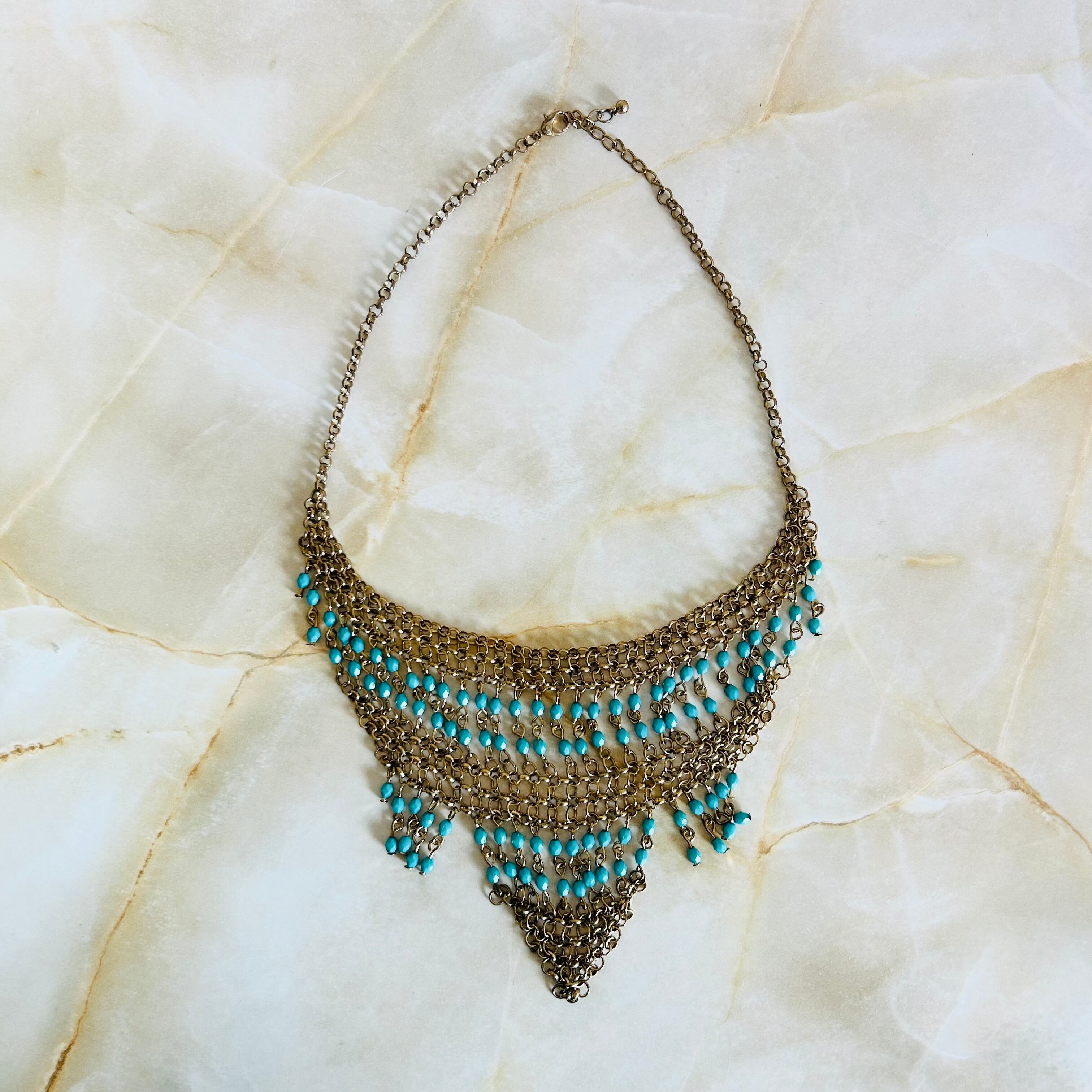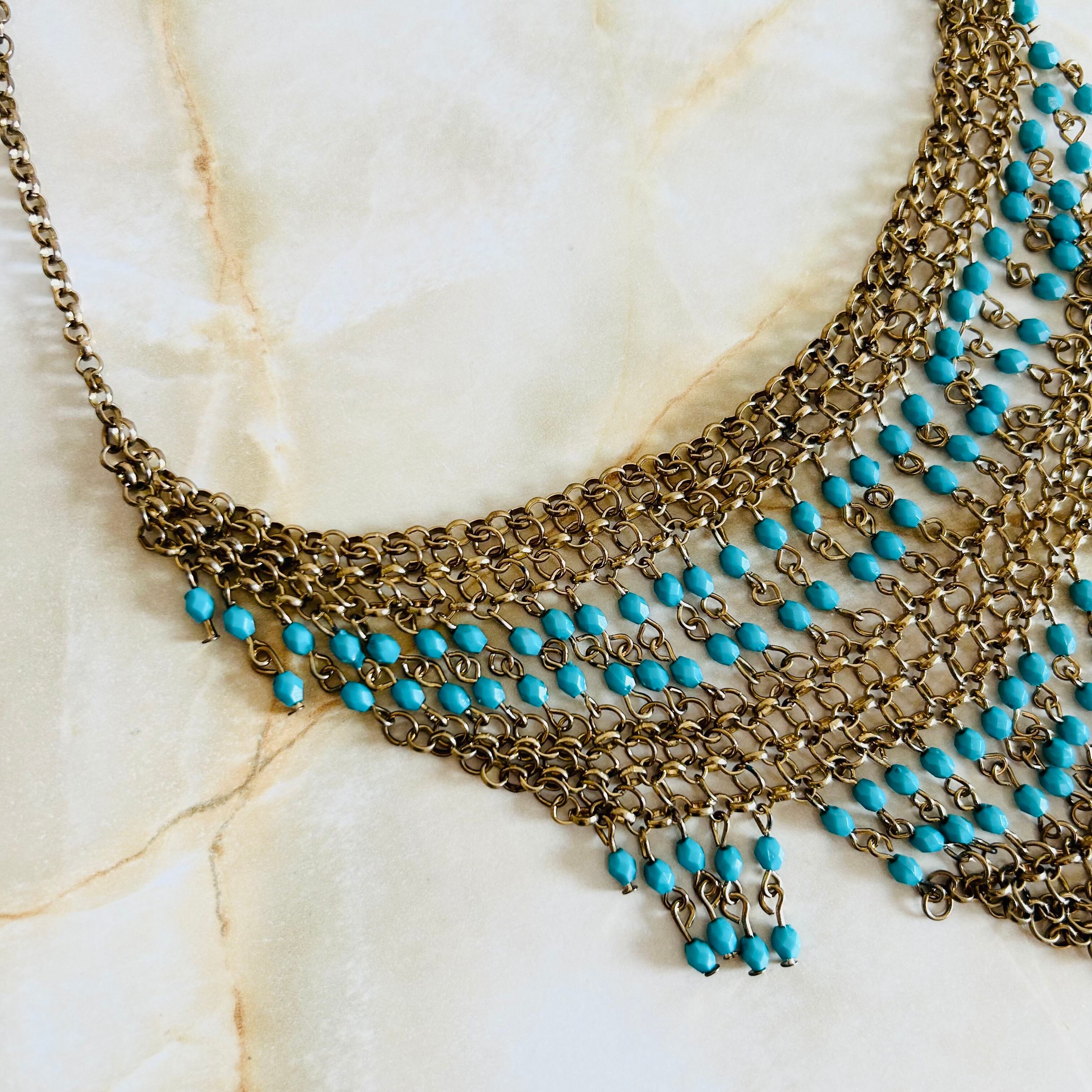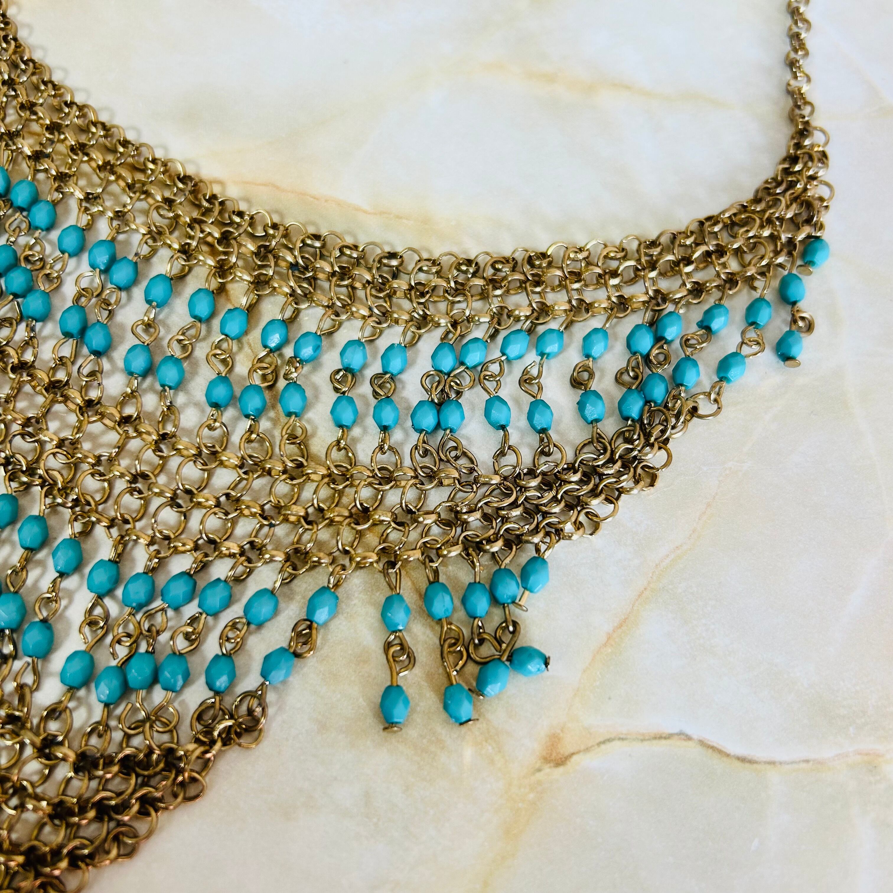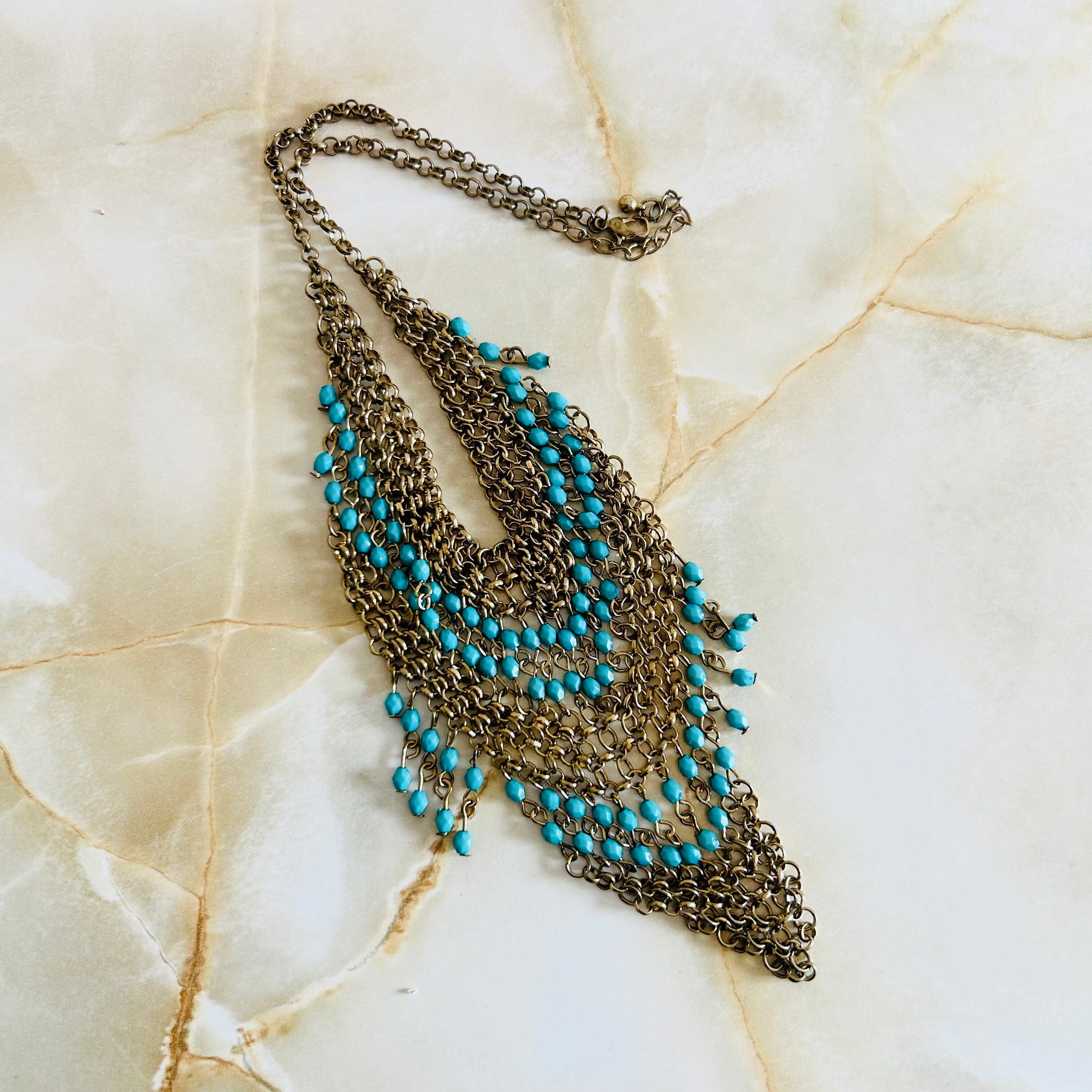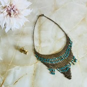 ターコイズブルー✖️アンティークゴールドカラーのネックレスです。