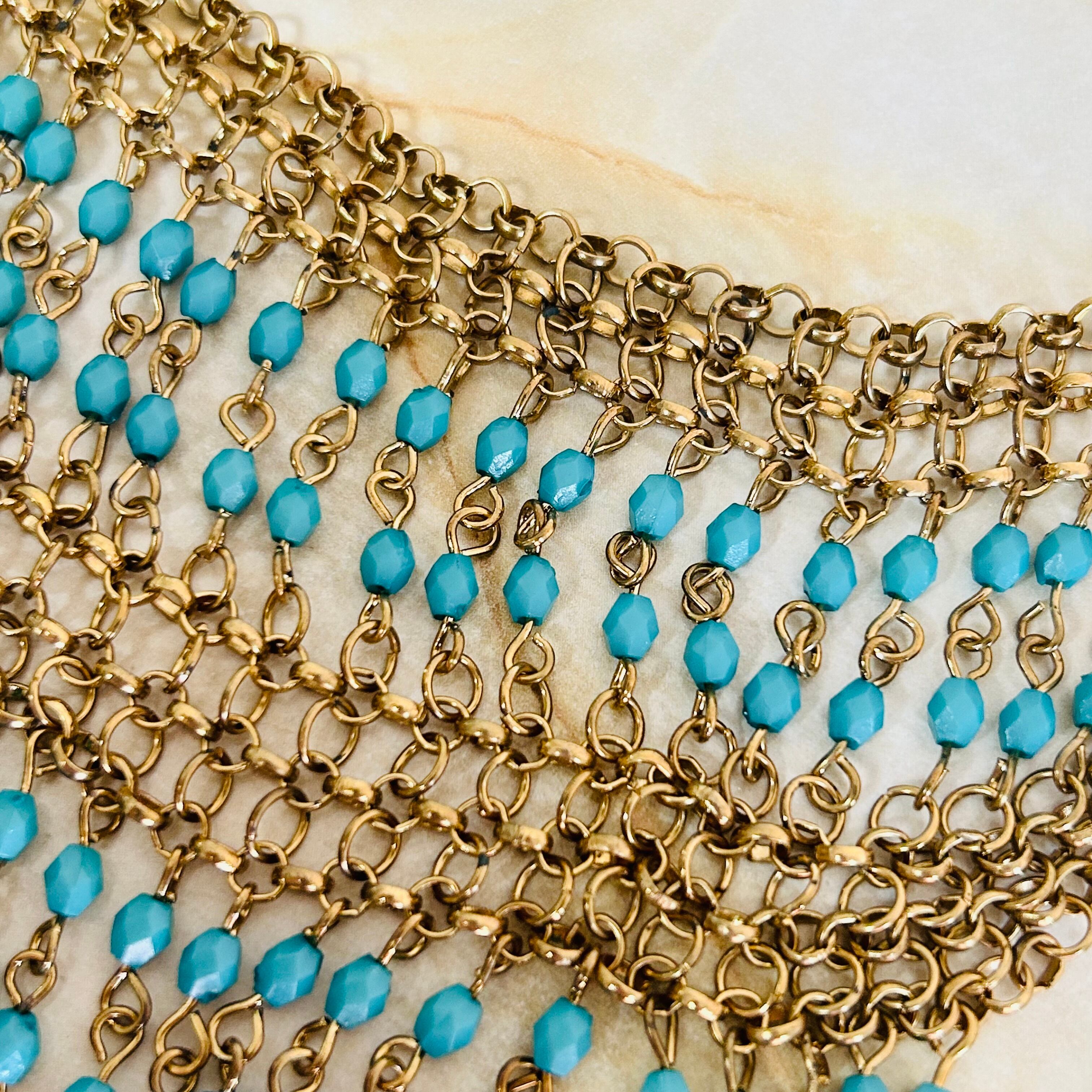 ゴールドチェーンにブルービーズを取り付けたデザイン性の高いアイテムです。