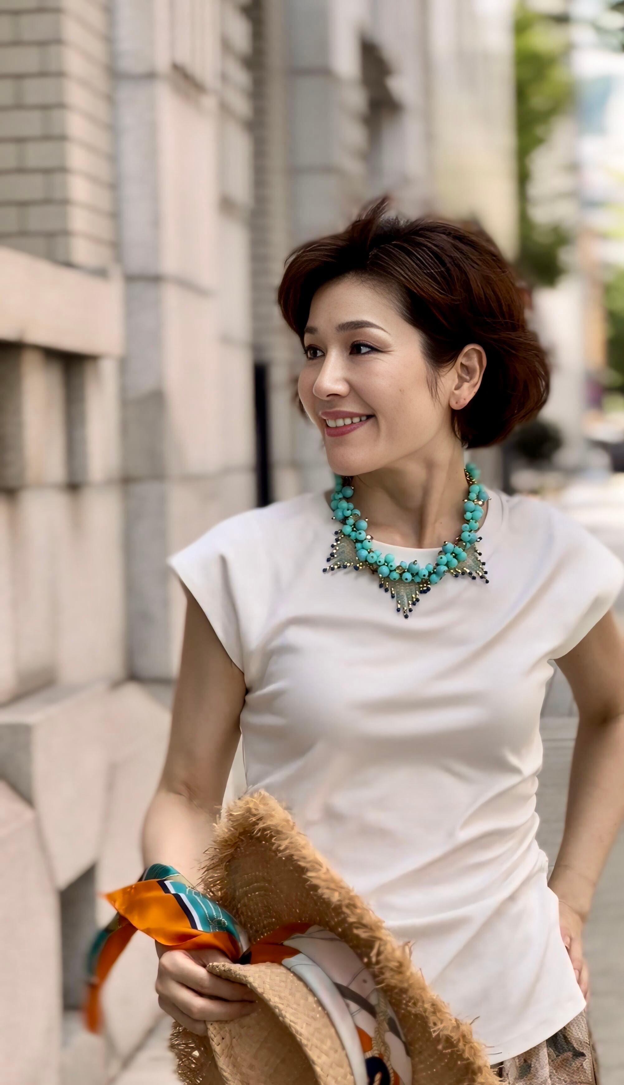 カットソーに合わせると、大人女性のカジュアルを素敵にクラスアップしてくれますね☆