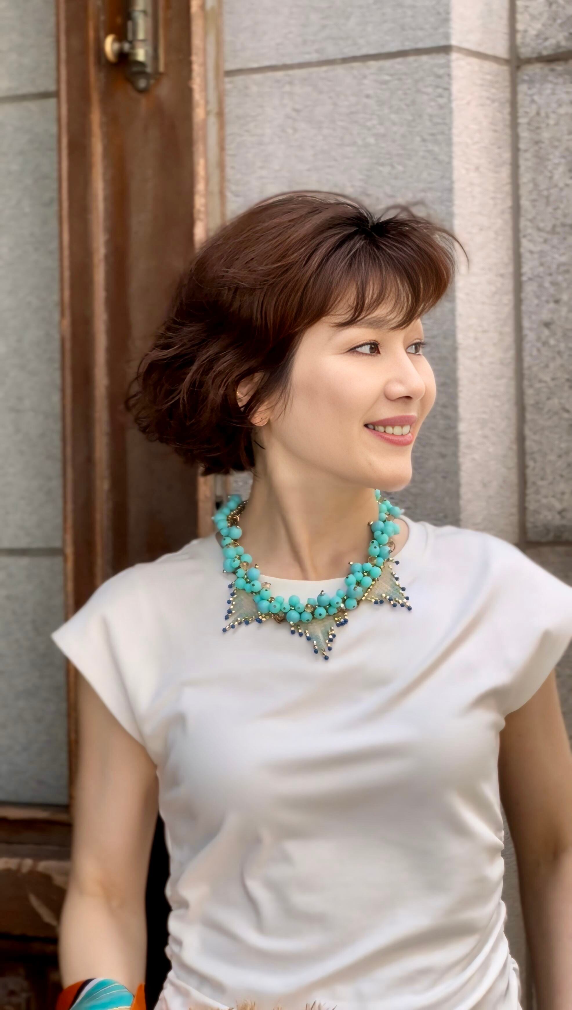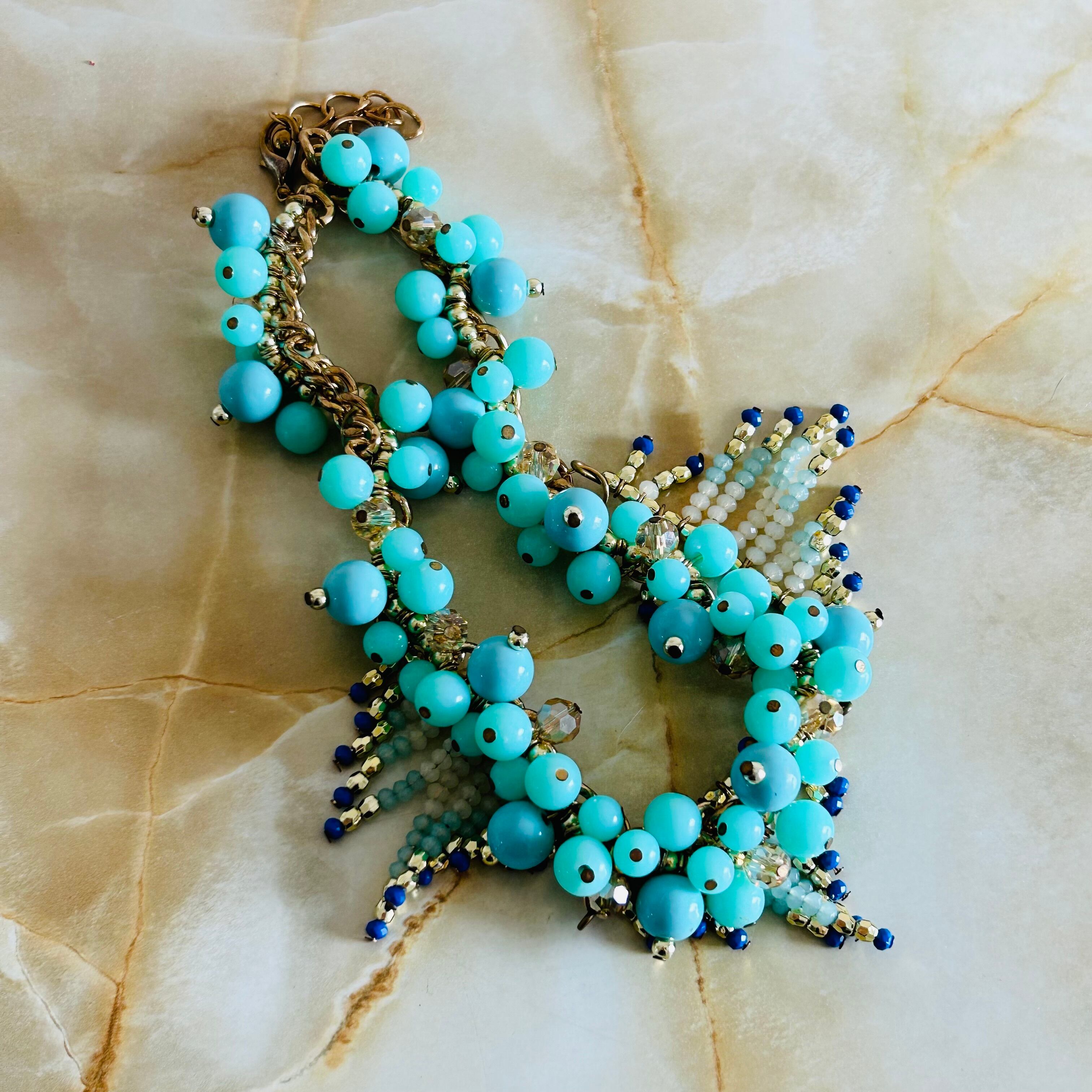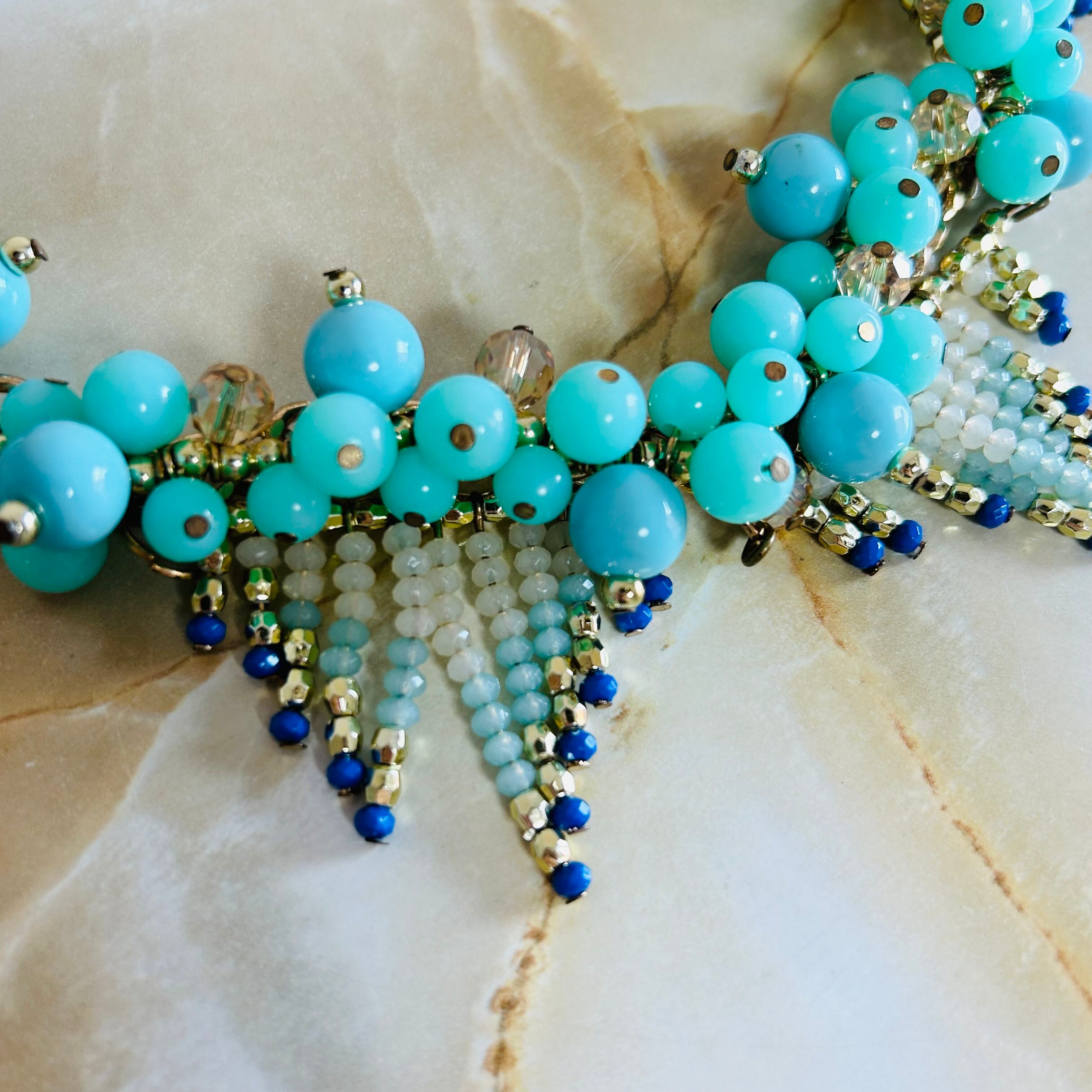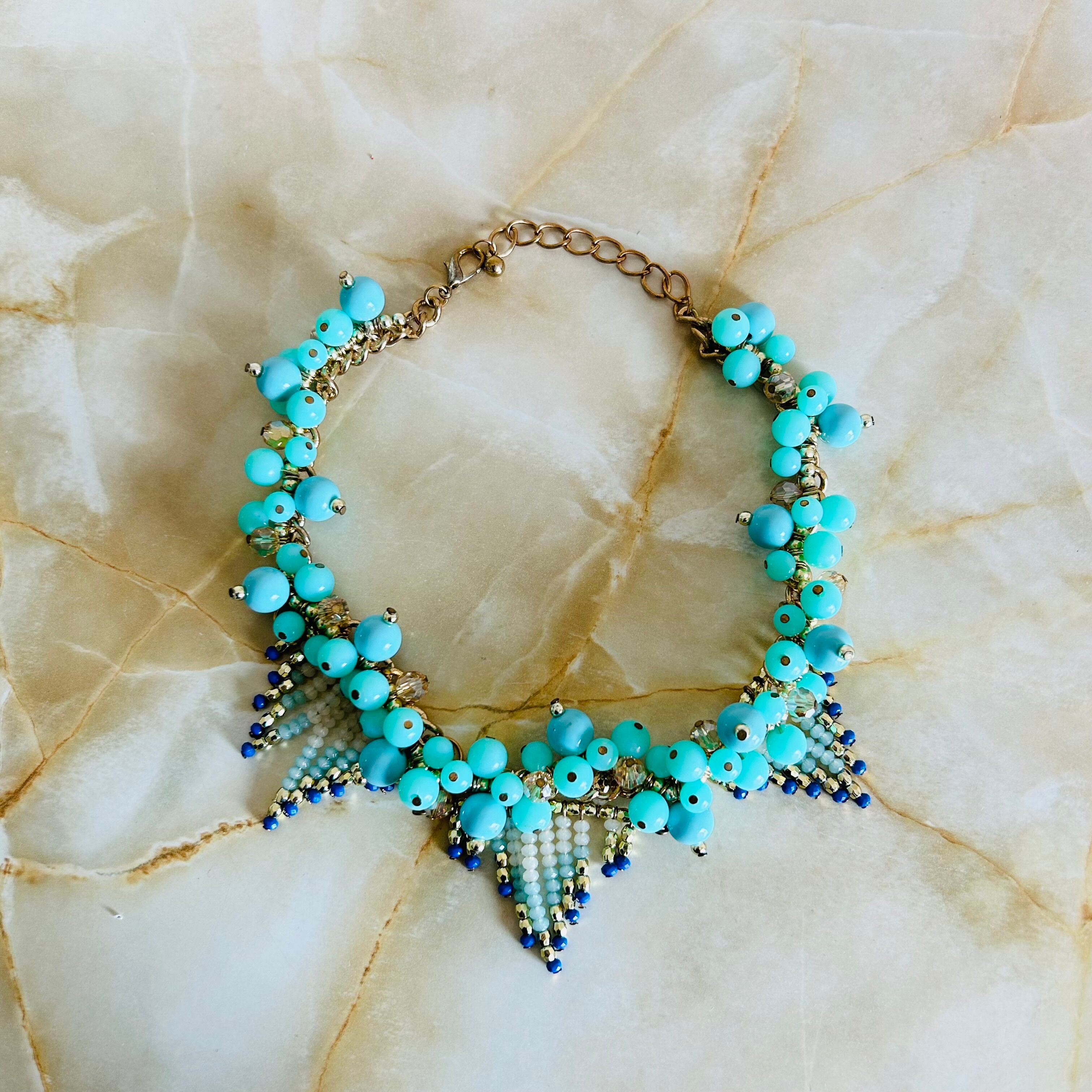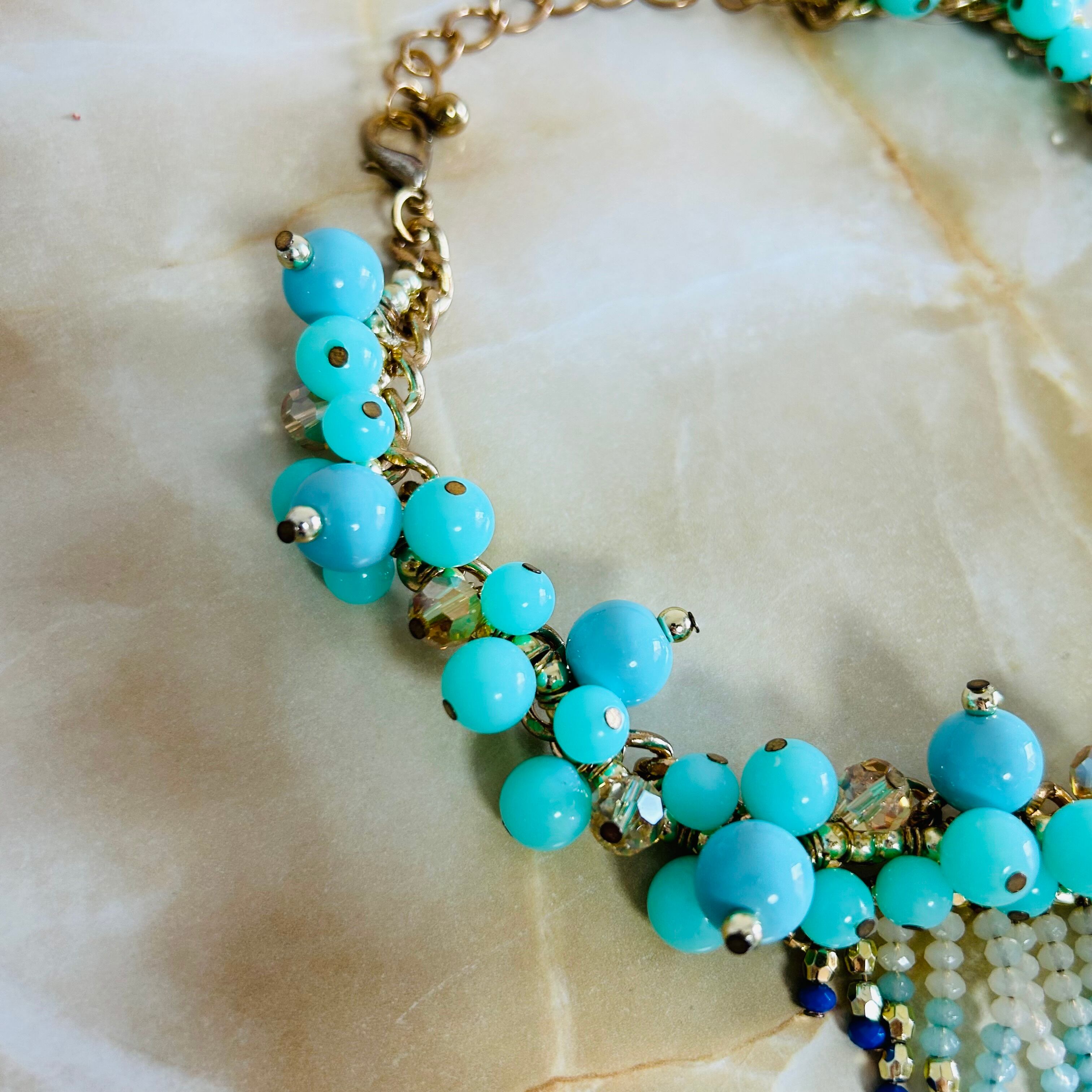 ブルー系✖️アンティークゴールドカラーのネックレスです。