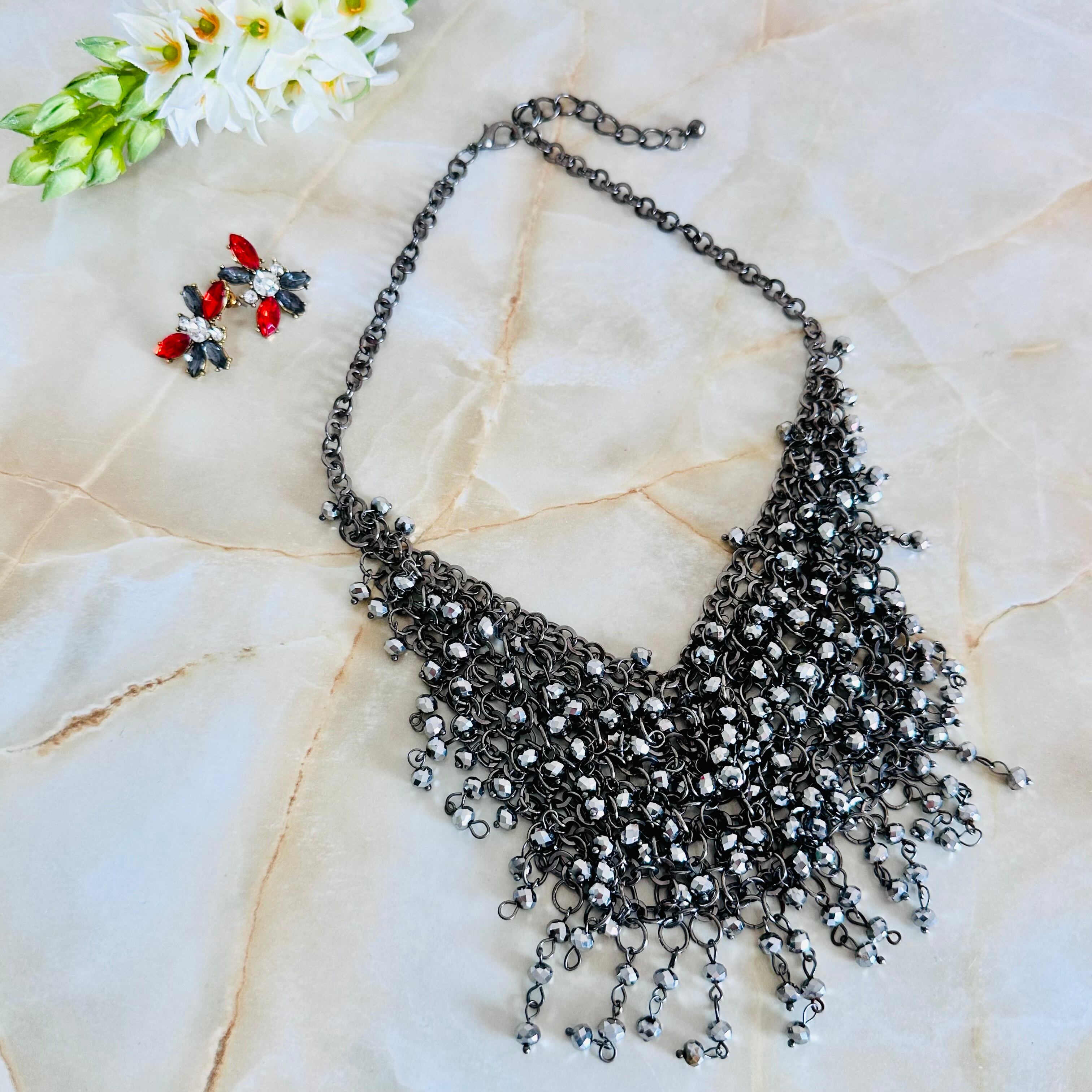 メタリックシルバーカラー✖️ブラックシルバーカラーのネックレスです。