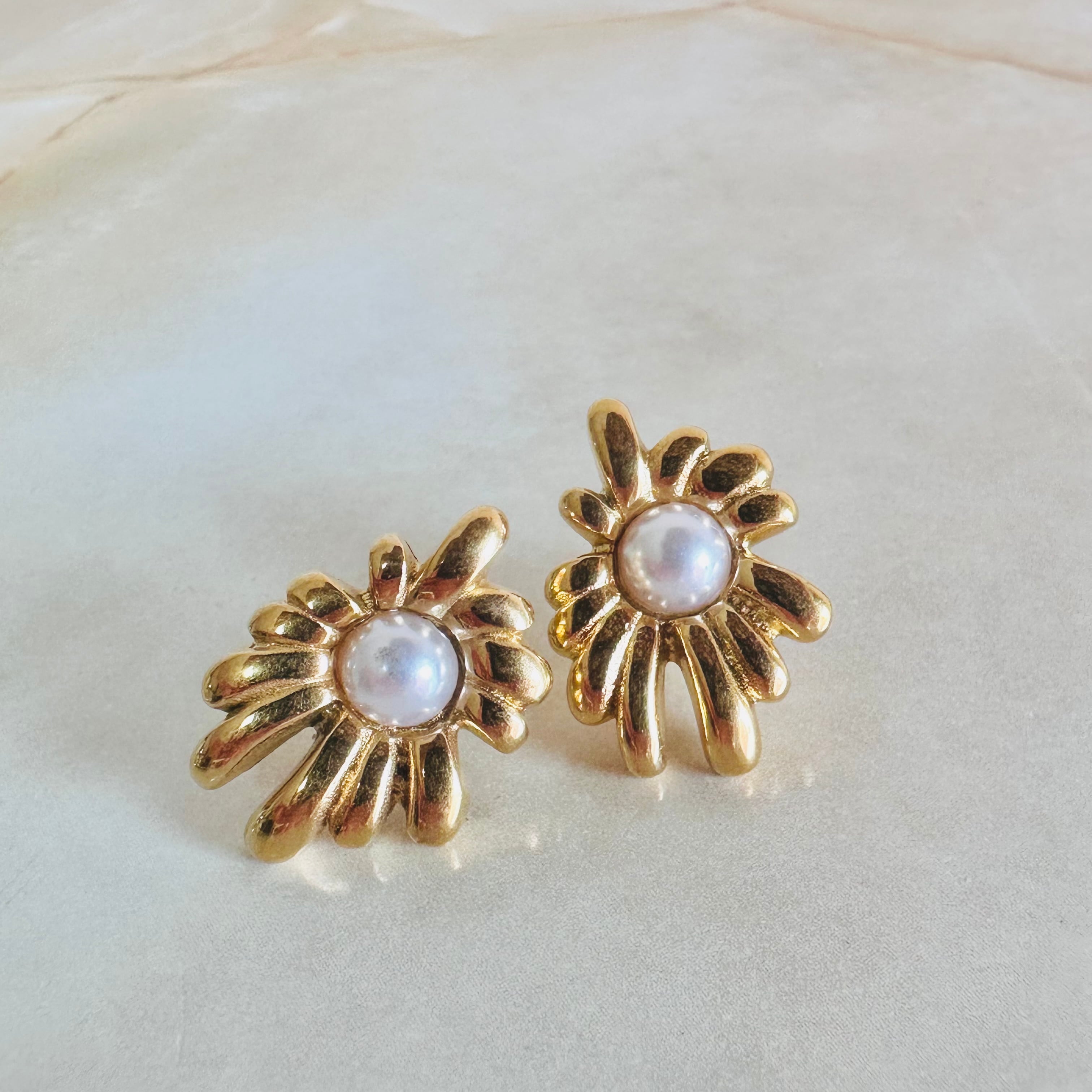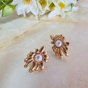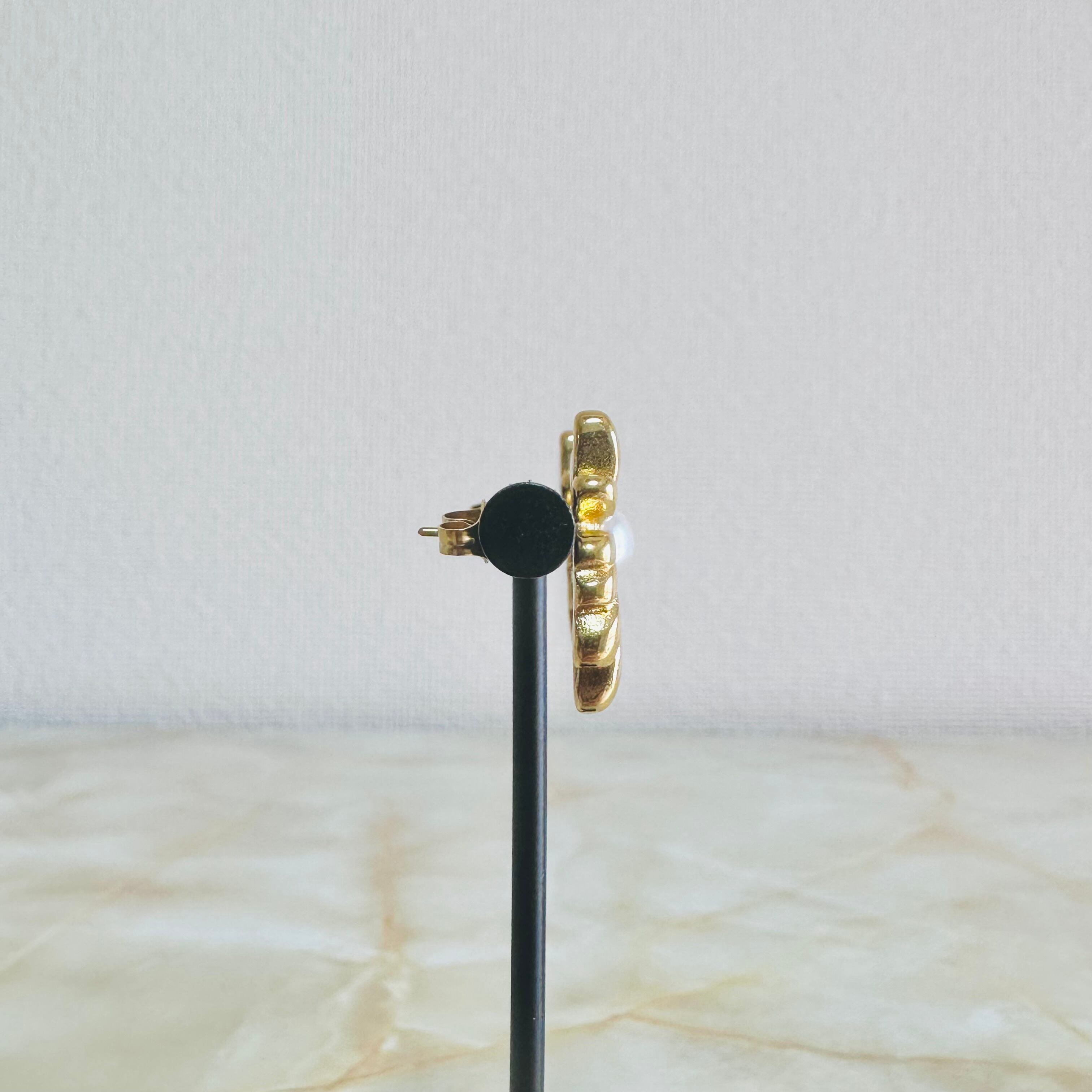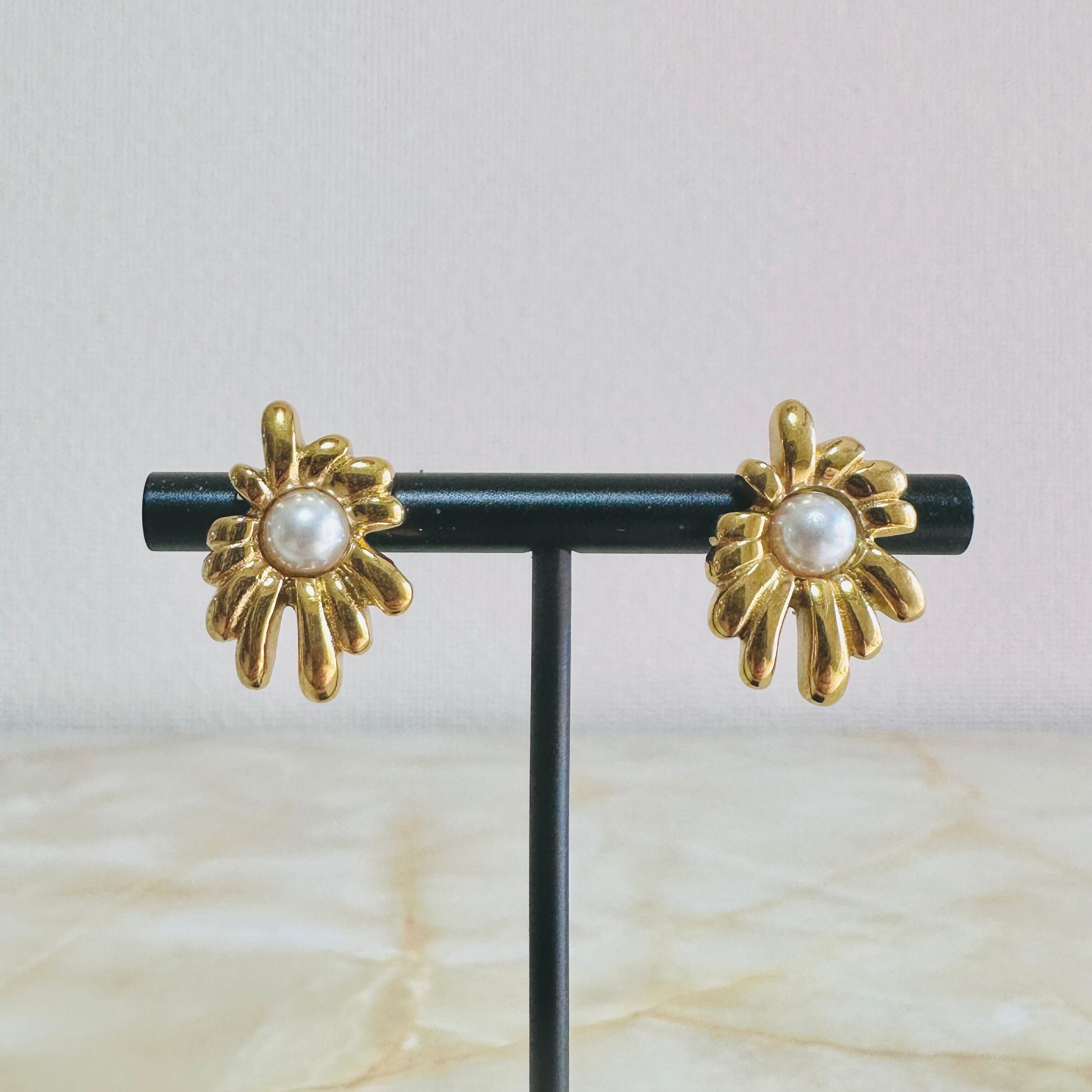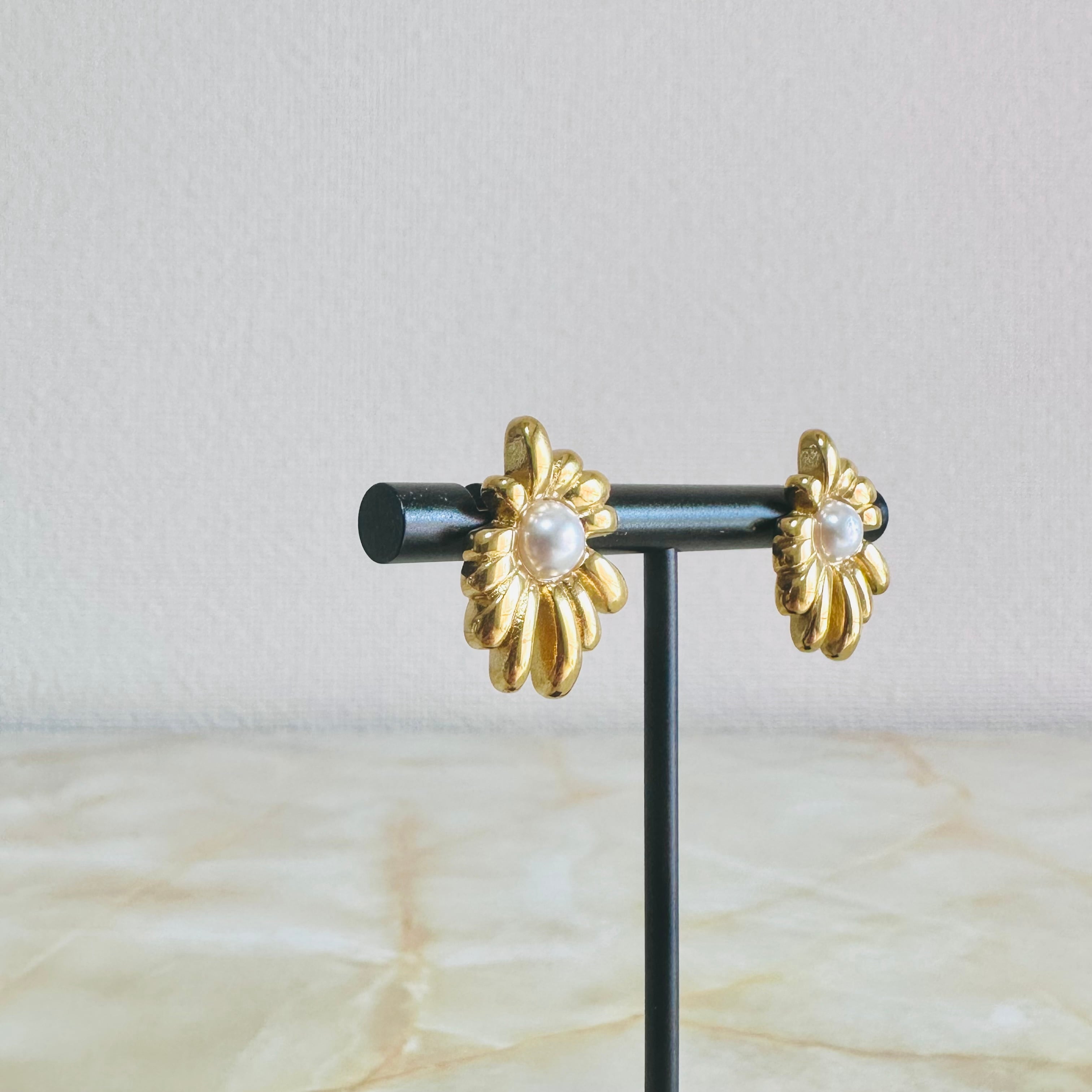 落ち着きのあるゴールドカラーとパールの組み合わせが、キュートなフラワーモチーフを大人っぽく仕上げたデザインです。