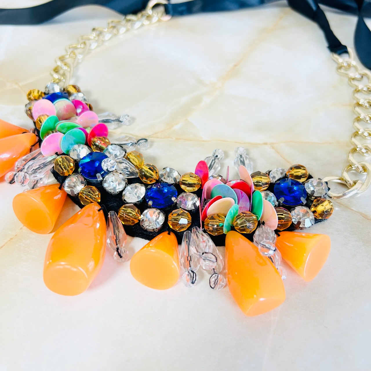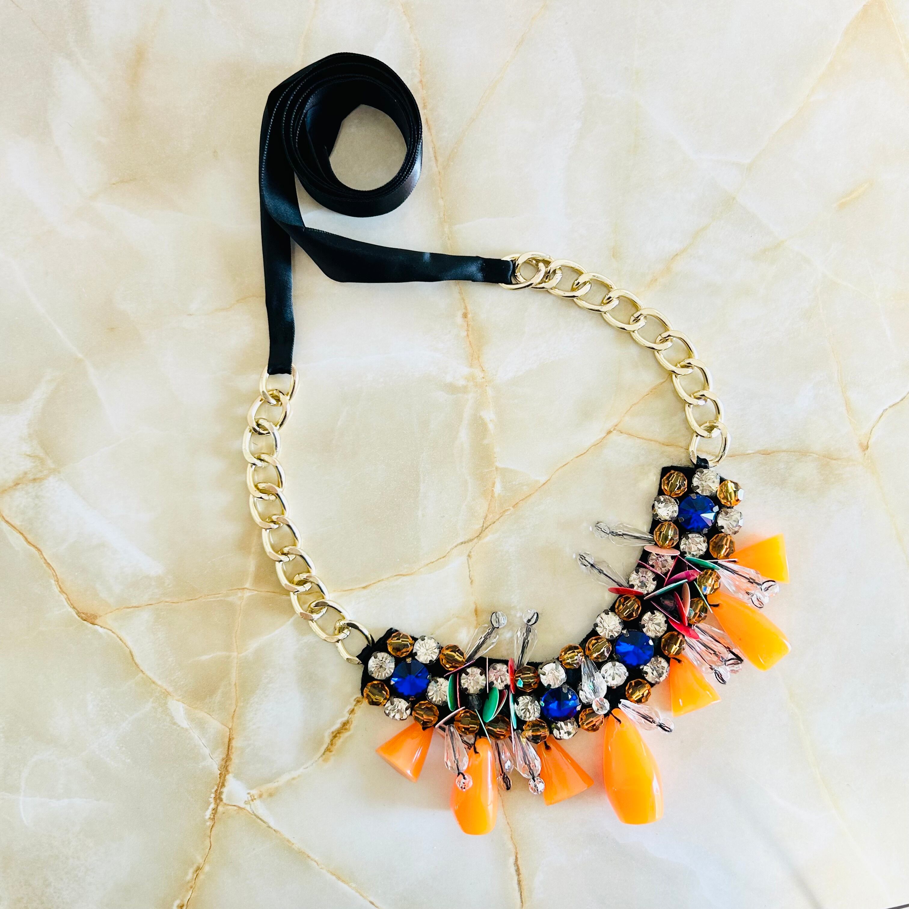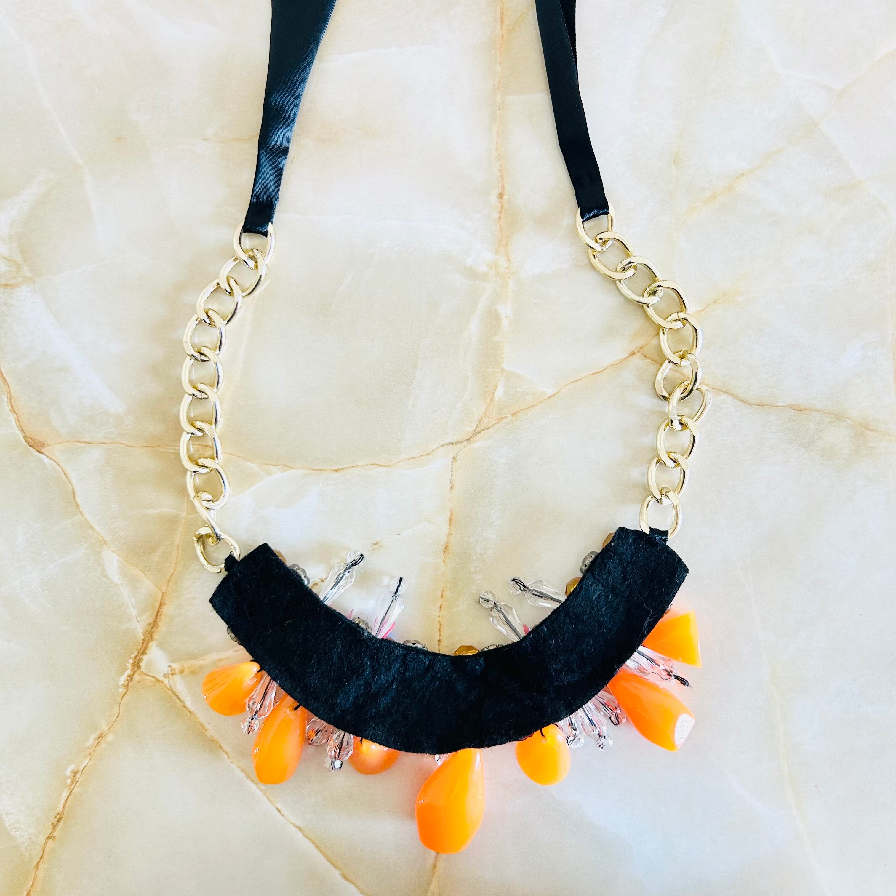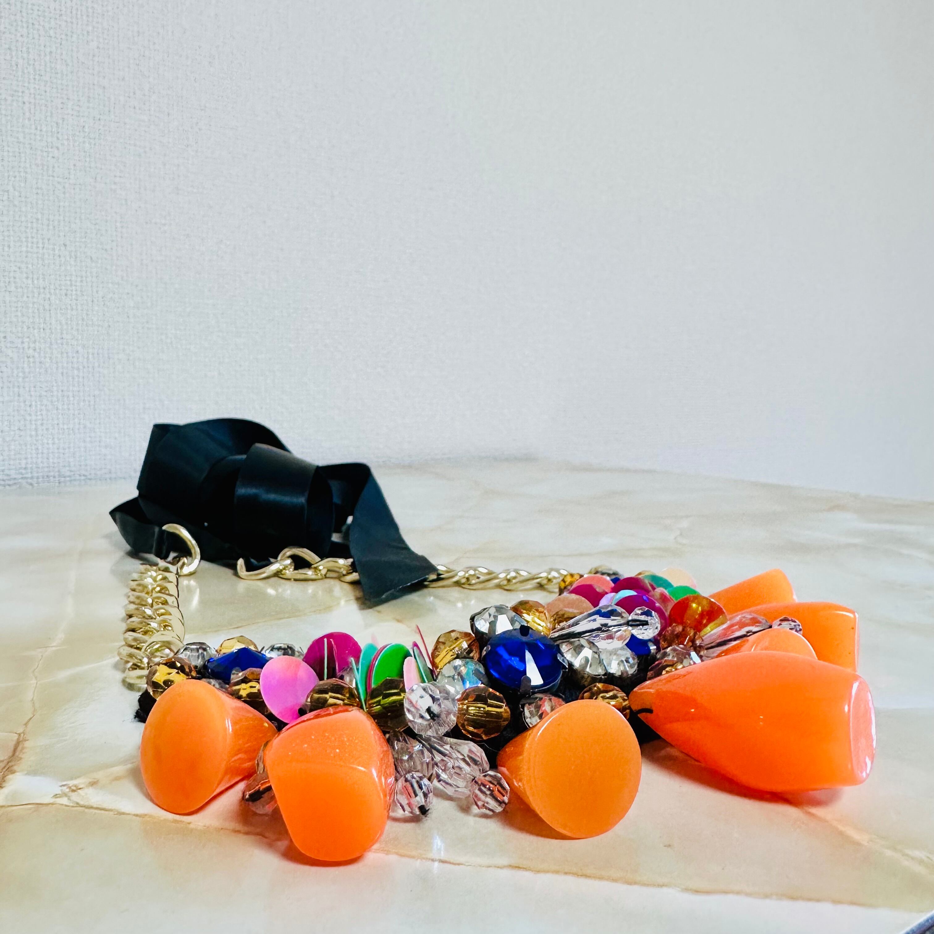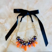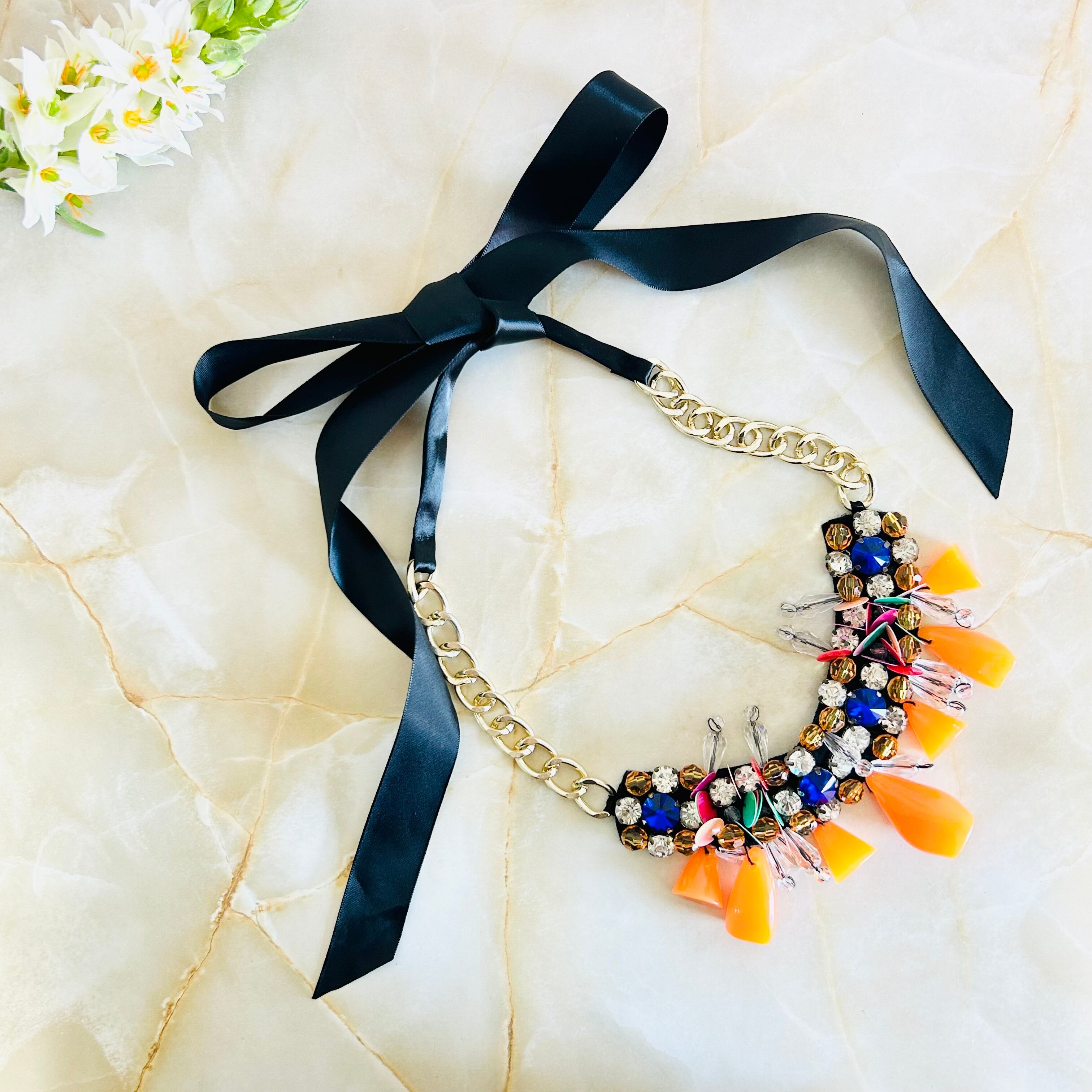 マルチカラー✖️ブラックのリボンネックレスです。
