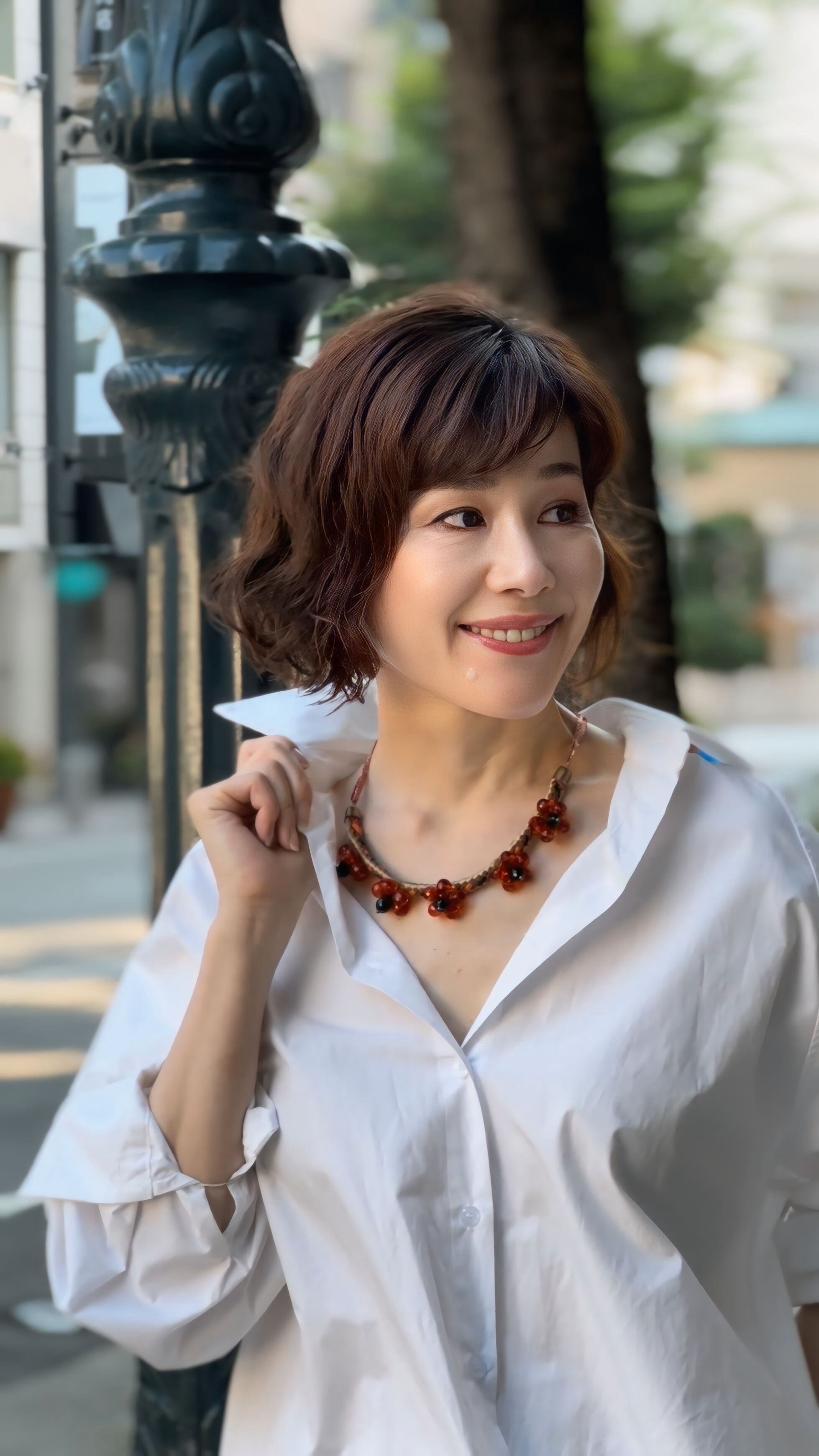 オレンジカラー、ベージュ系✖️アンティークゴールドカラーのネックレスです。
