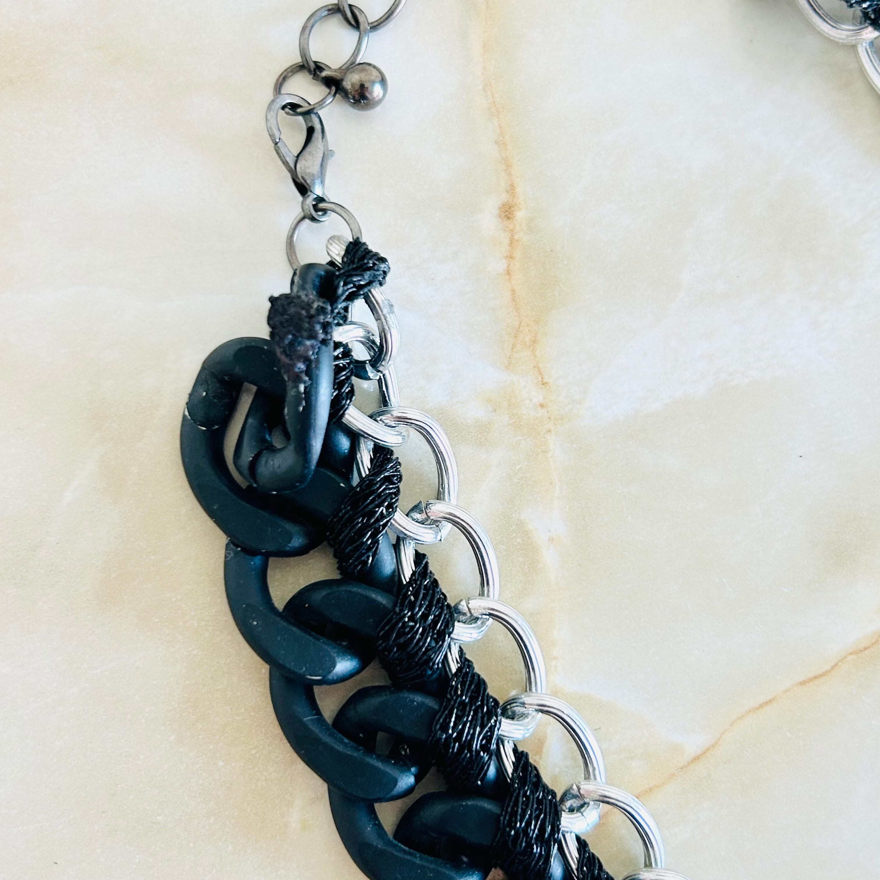 ブラック、ベージュ、シルバー✖️ブラックシルバーカラーのネックレスです。