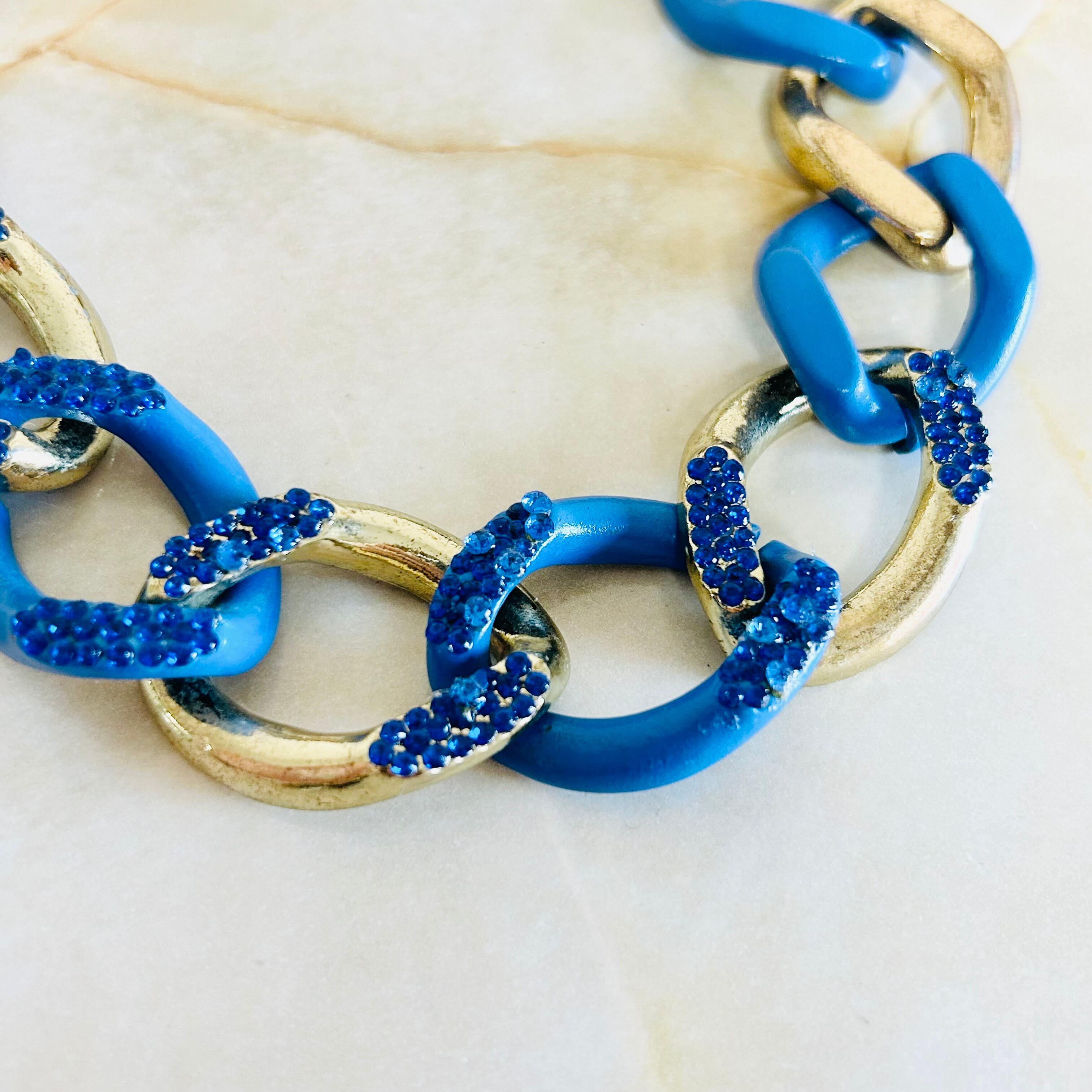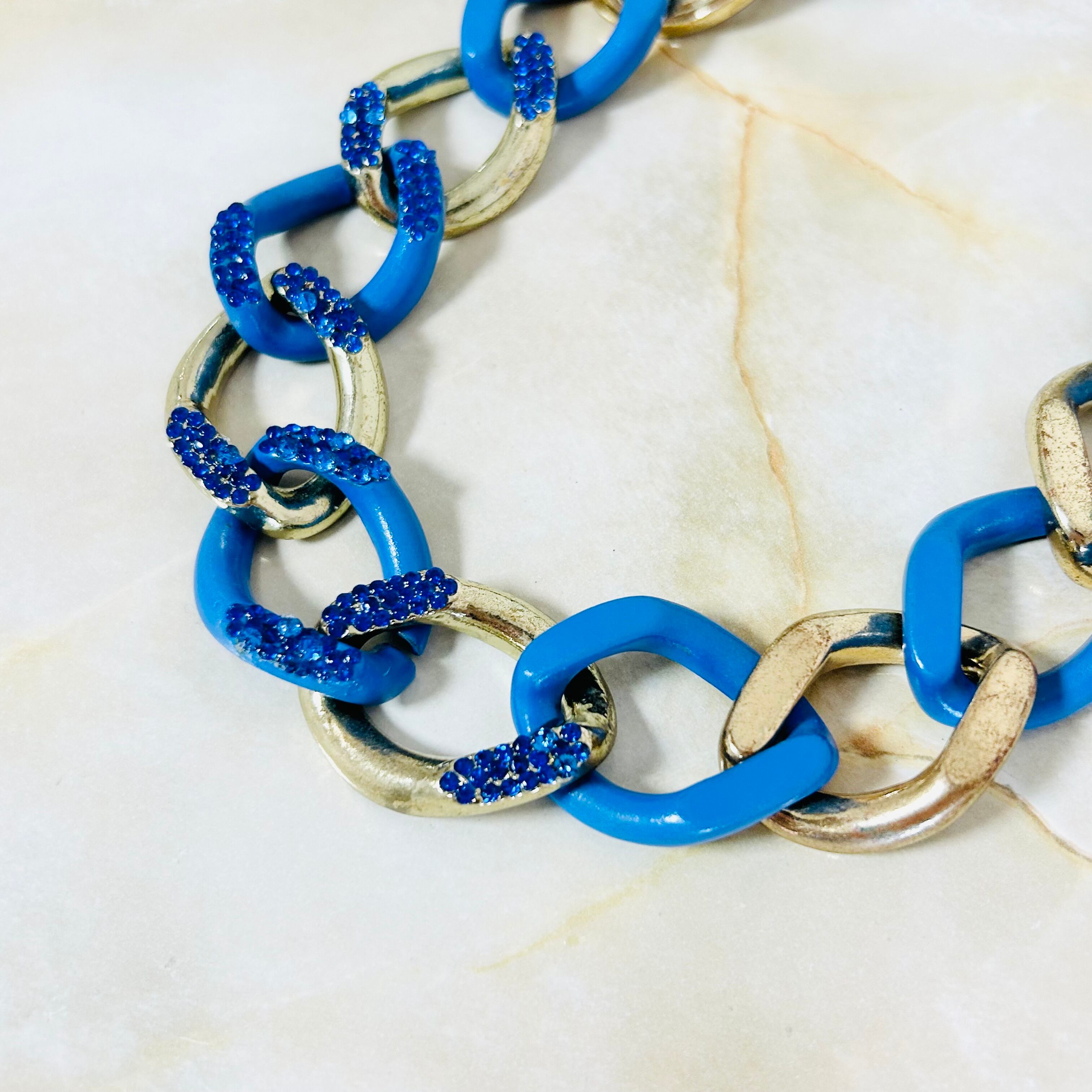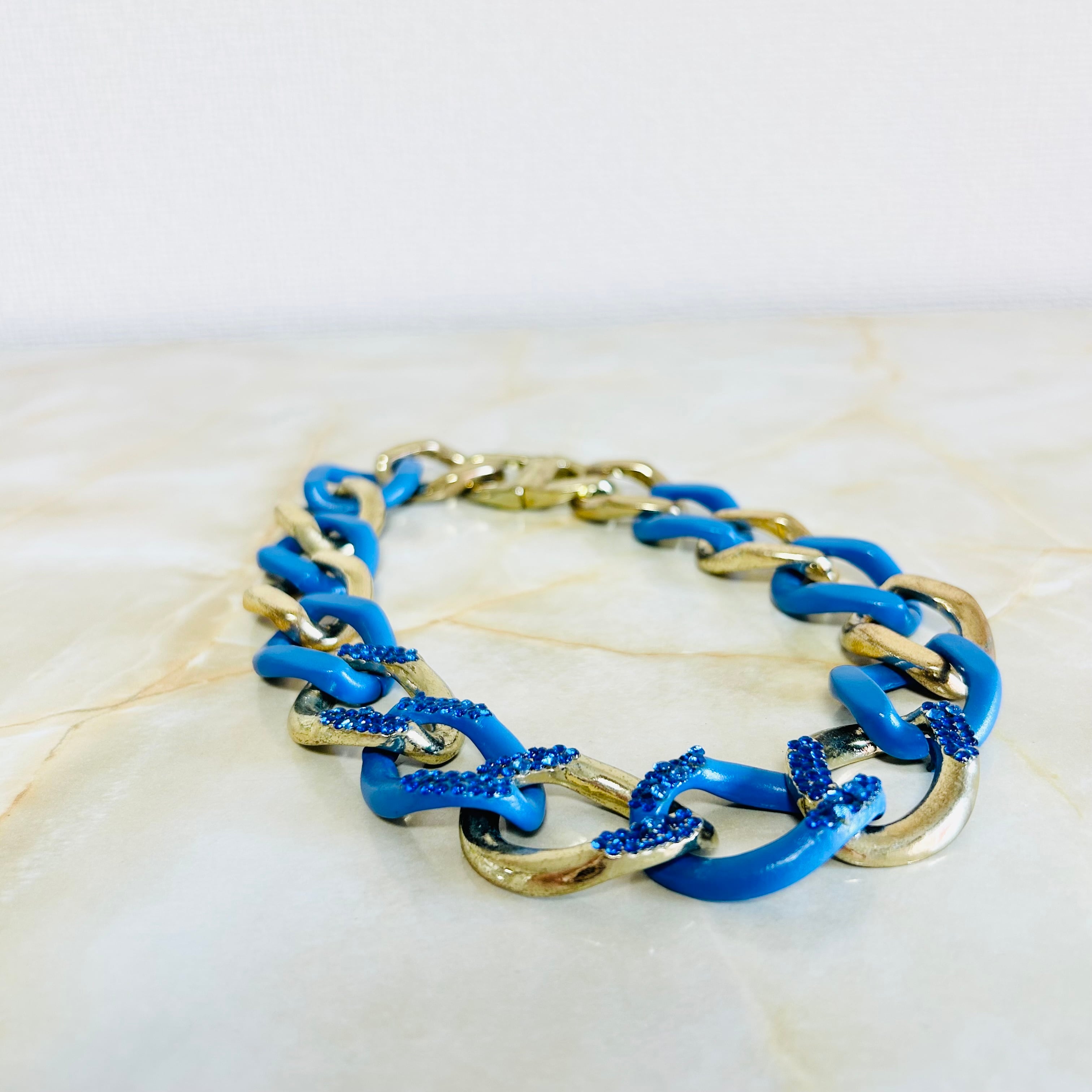 迫力のあるチェーンが特徴的で、アンティークゴールドとブルーの色のコントラストが目を惹きます☆