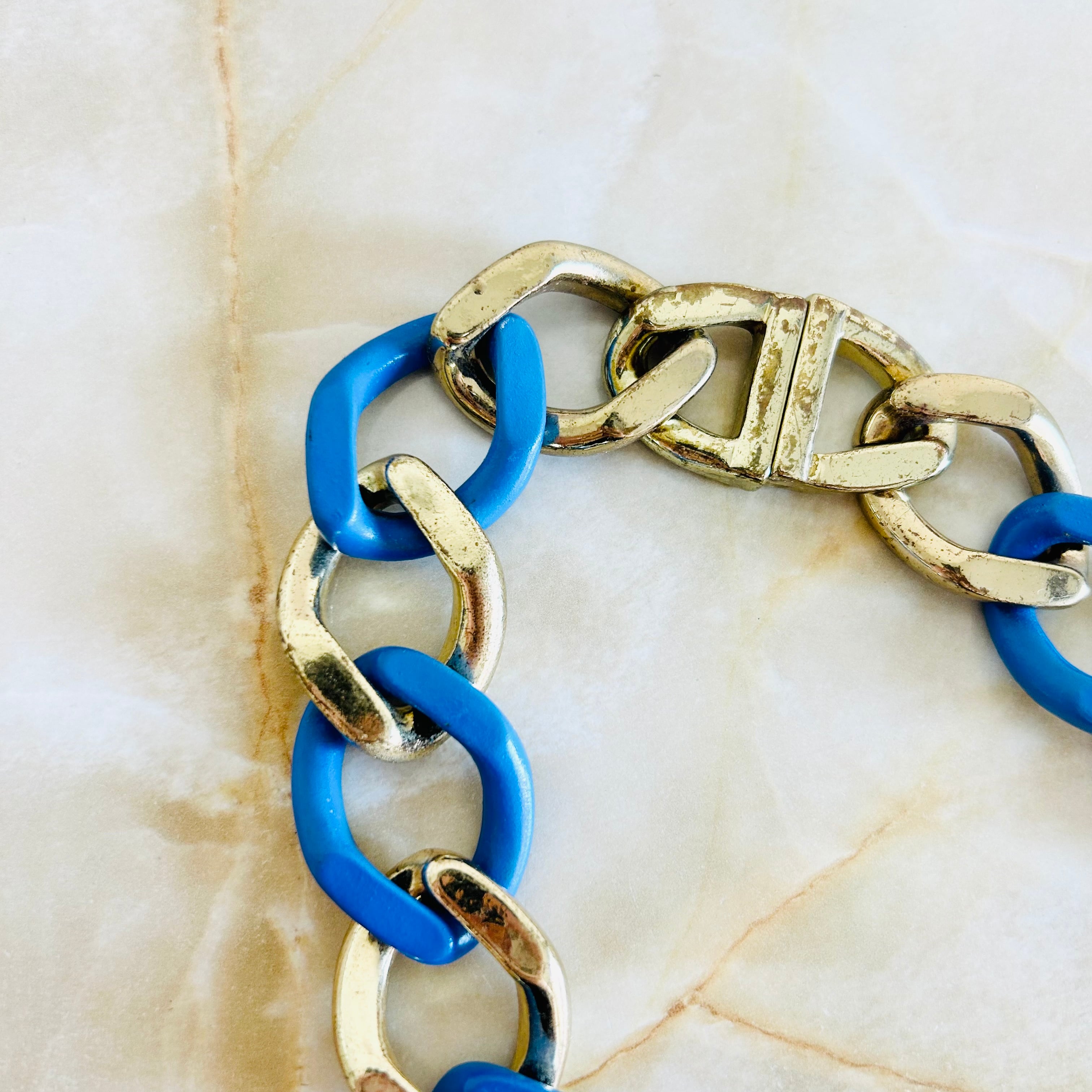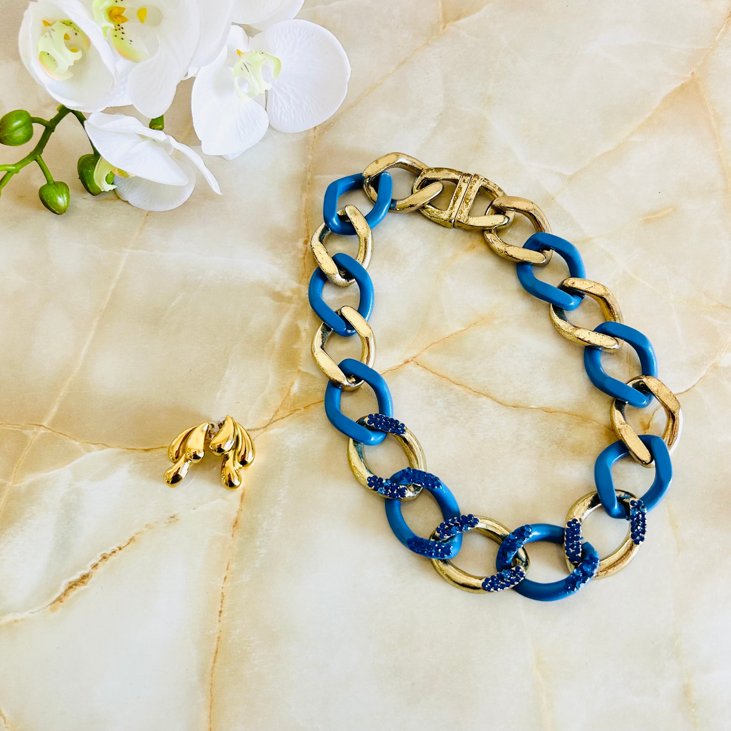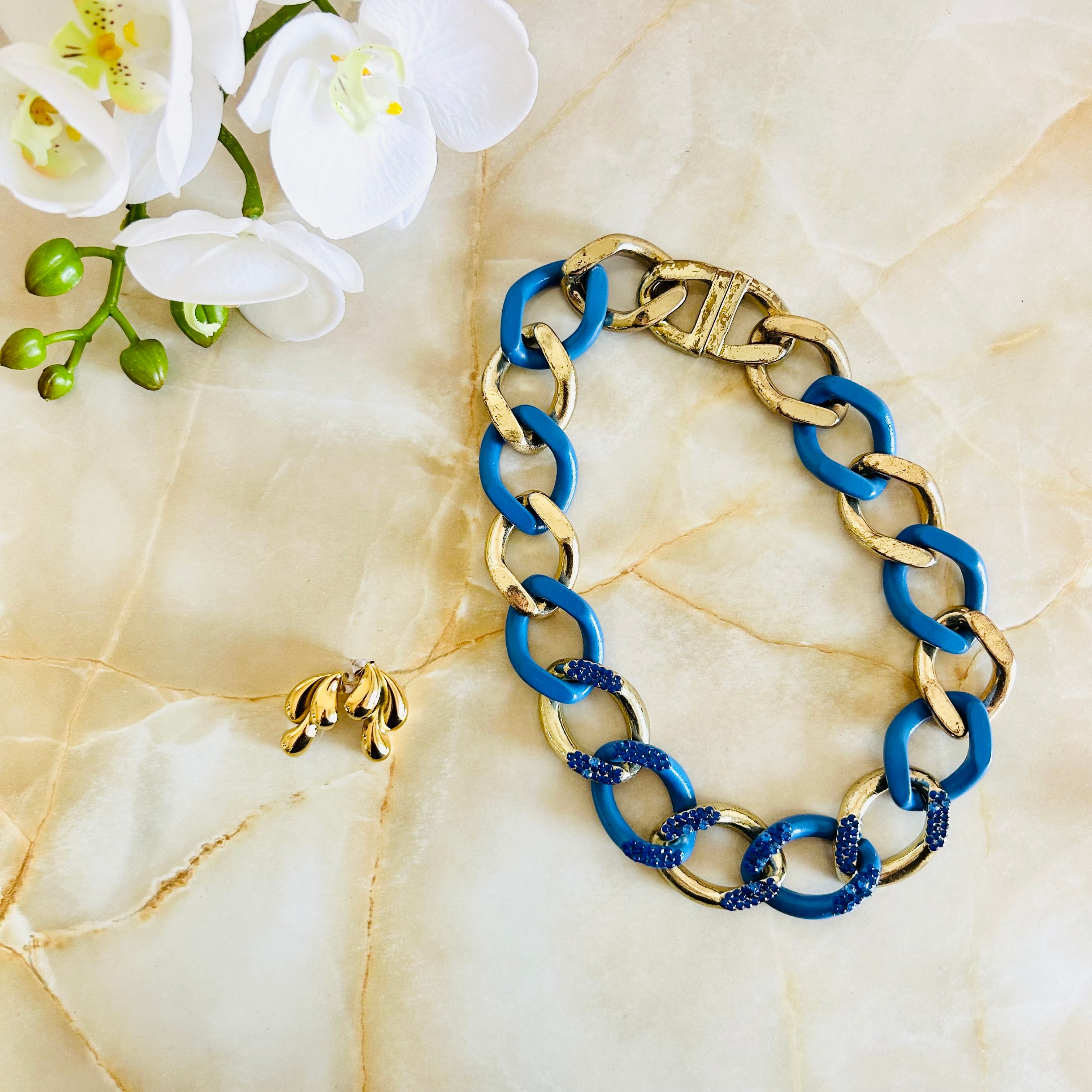 迫力のあるチェーンが特徴的で、アンティークゴールドとブルーの色のコントラストが目を惹きます☆