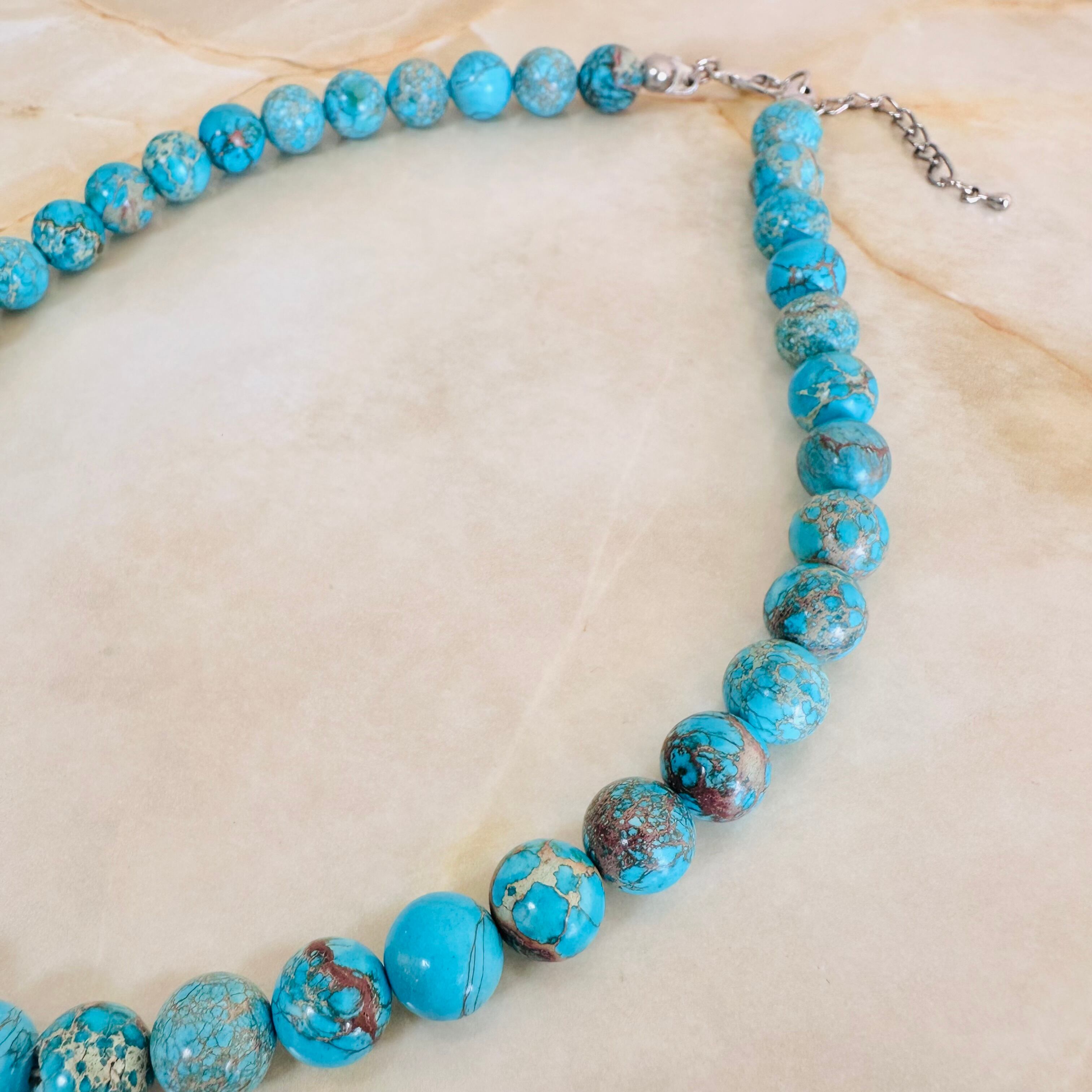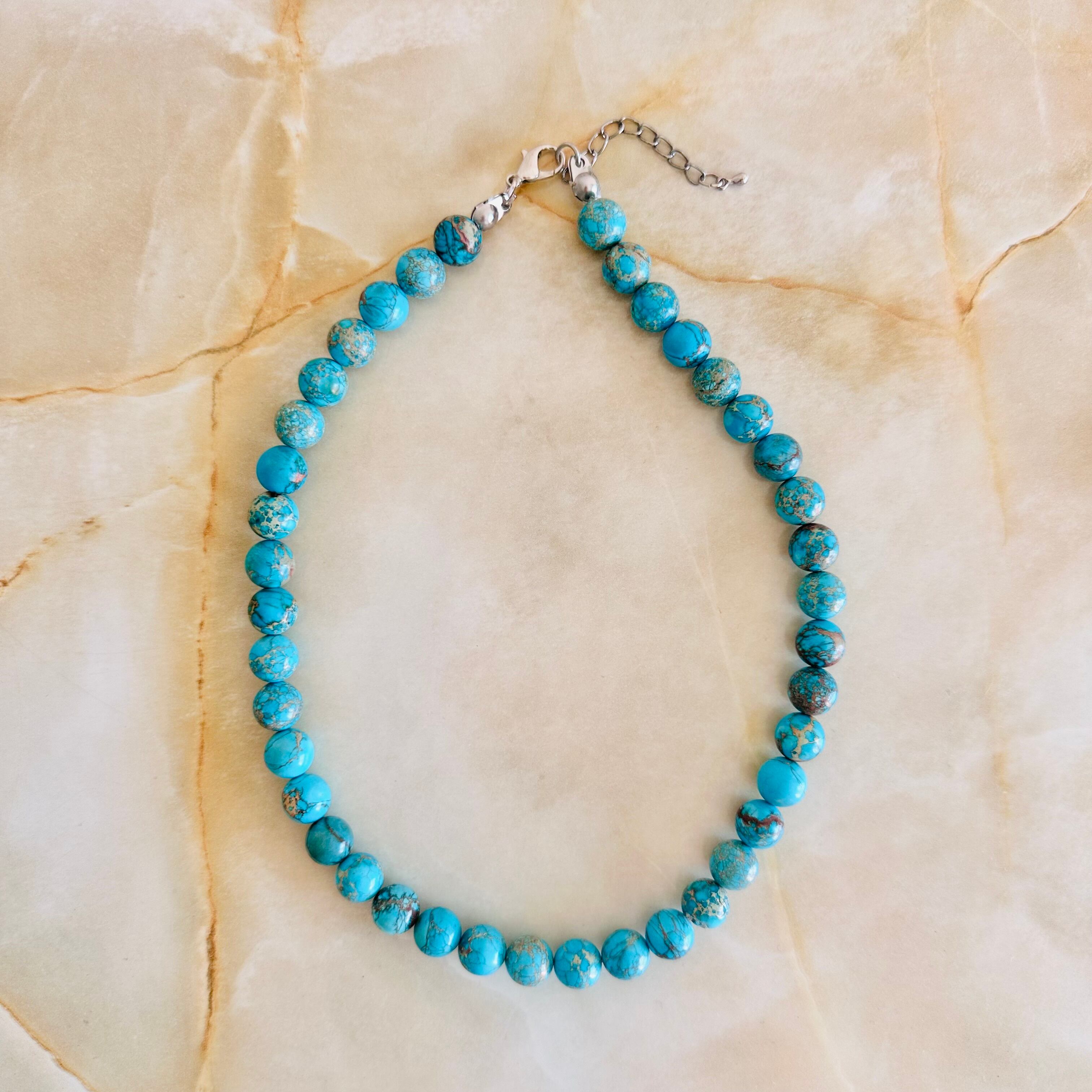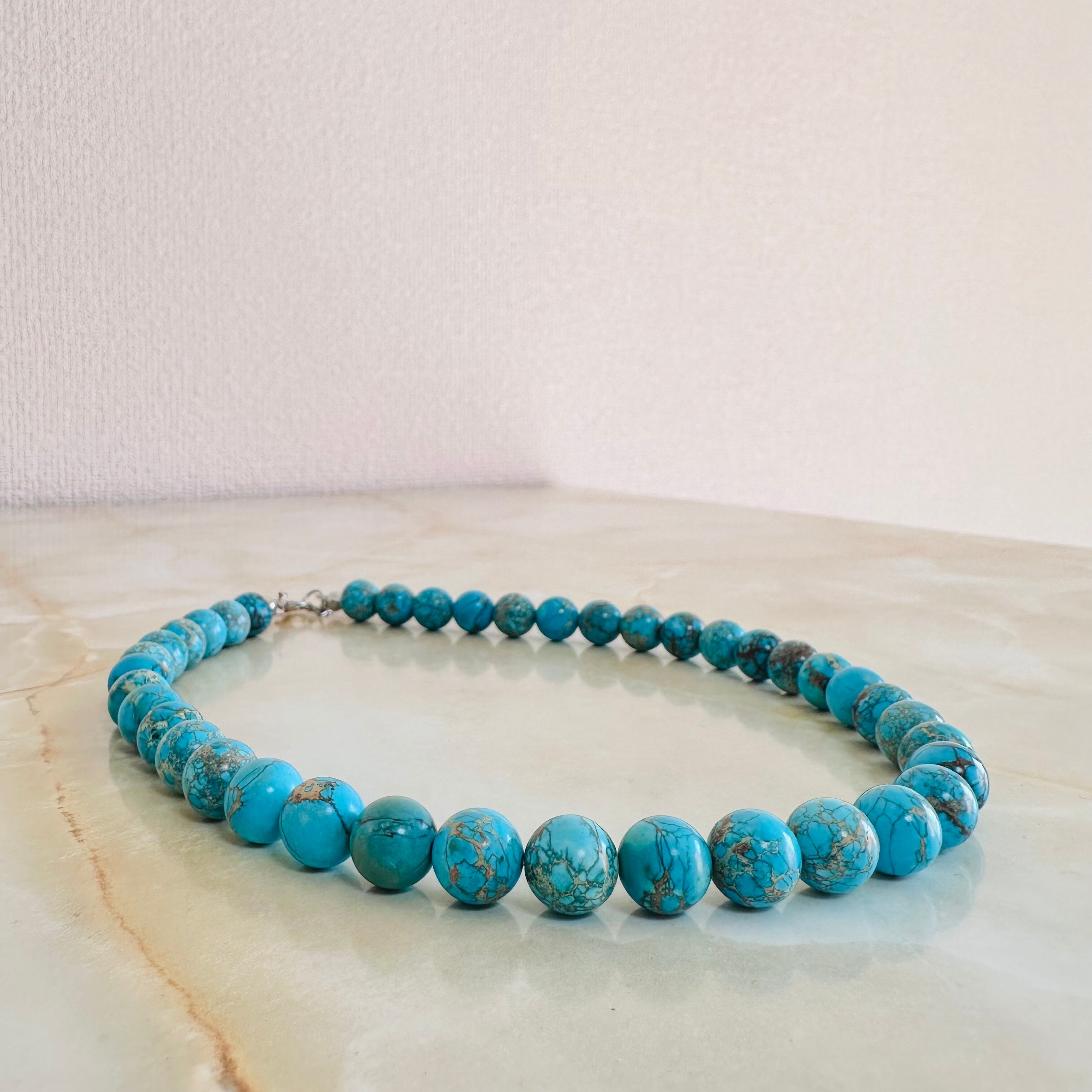 高級感のあるターコイズカラーが映えるネックレスは、どんなコーディネートにもアクセントを与えてくれます。