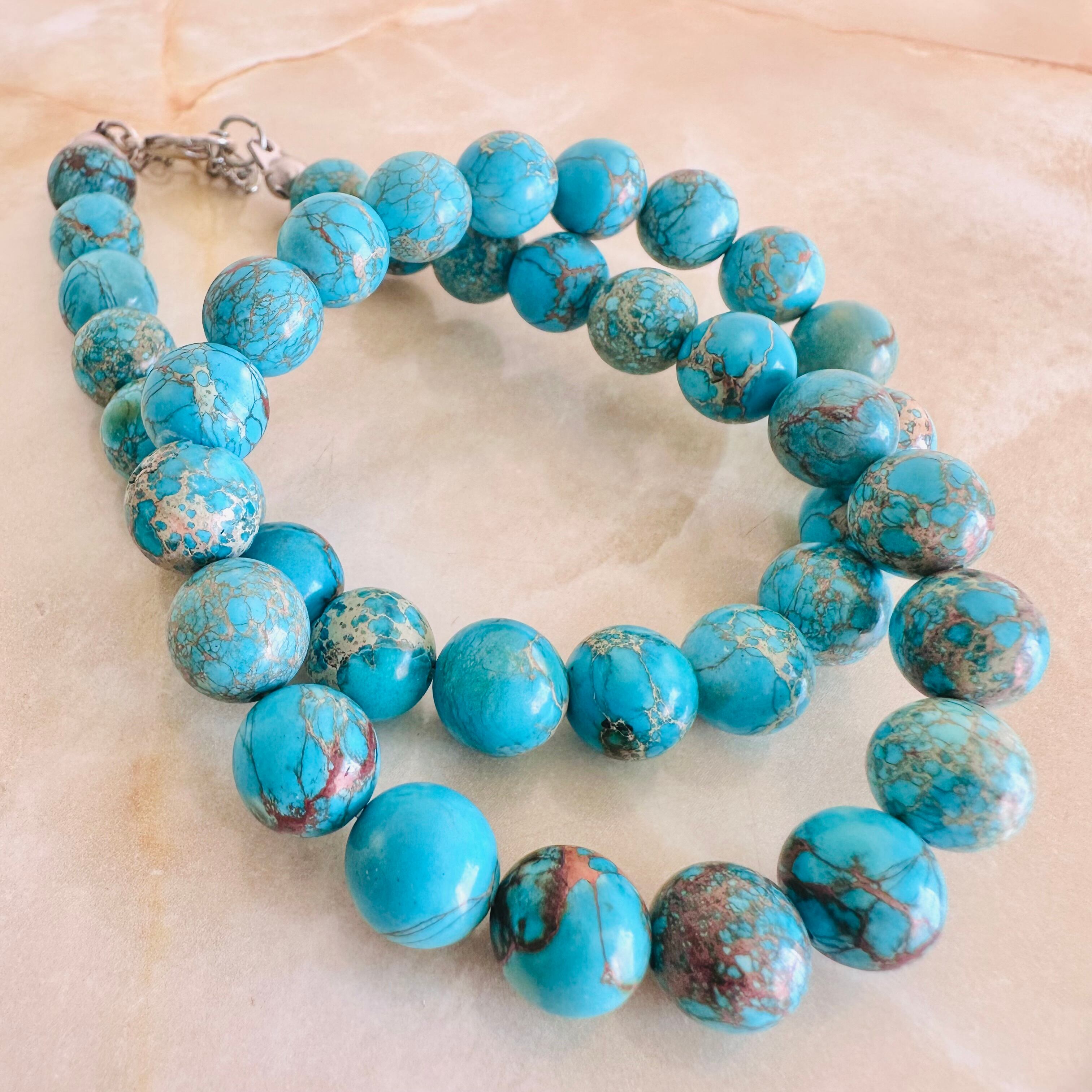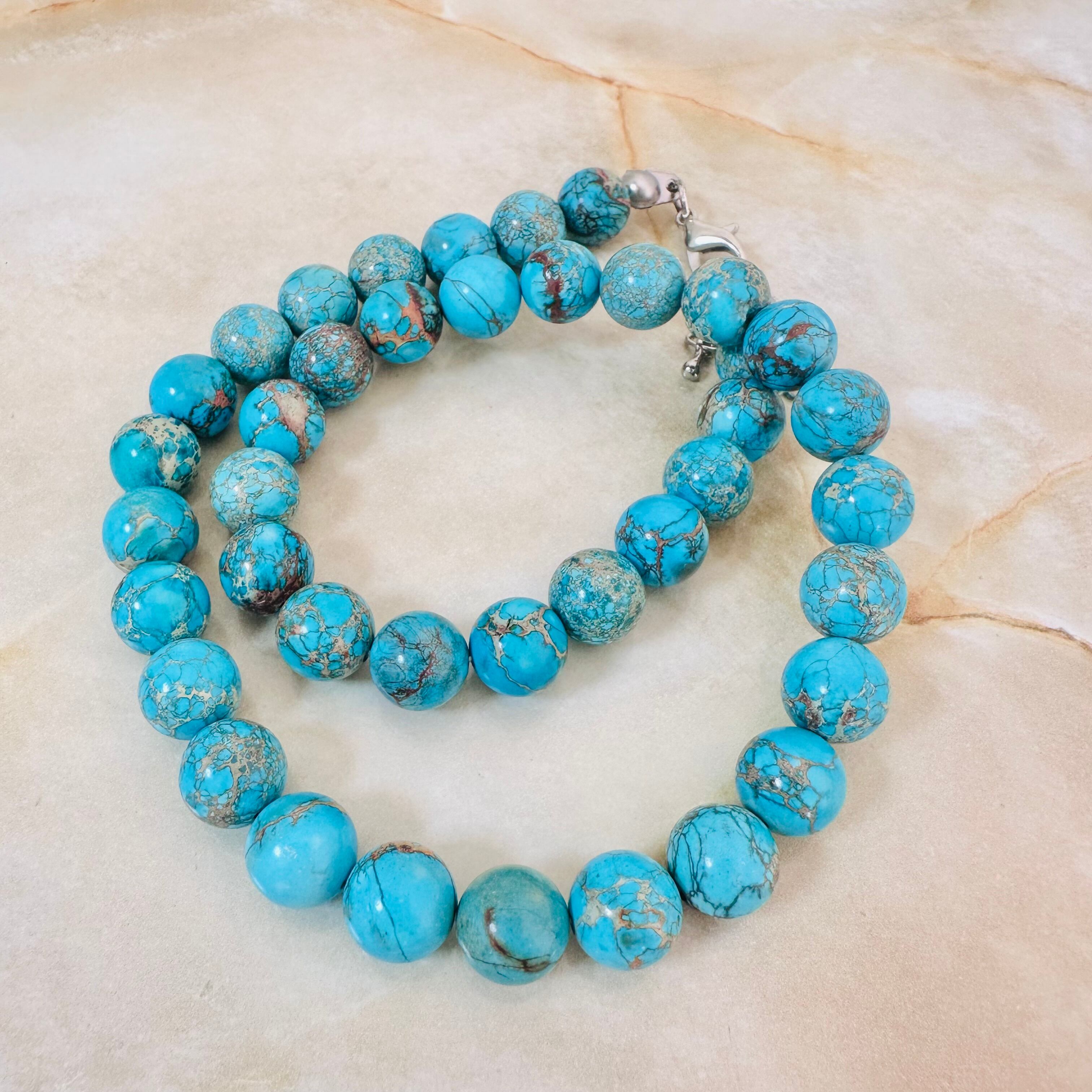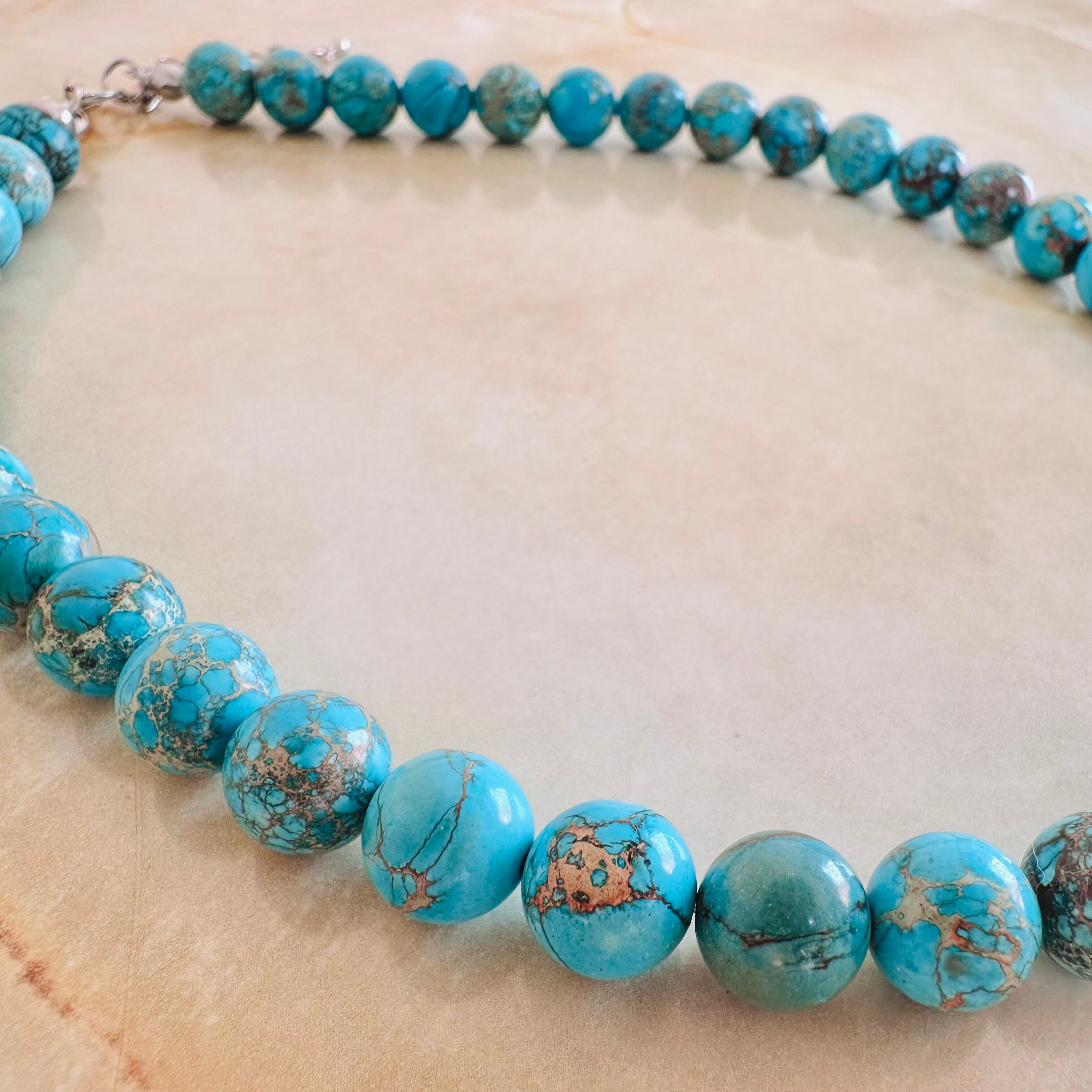 高級感のあるターコイズカラーが映えるネックレスは、どんなコーディネートにもアクセントを与えてくれます。