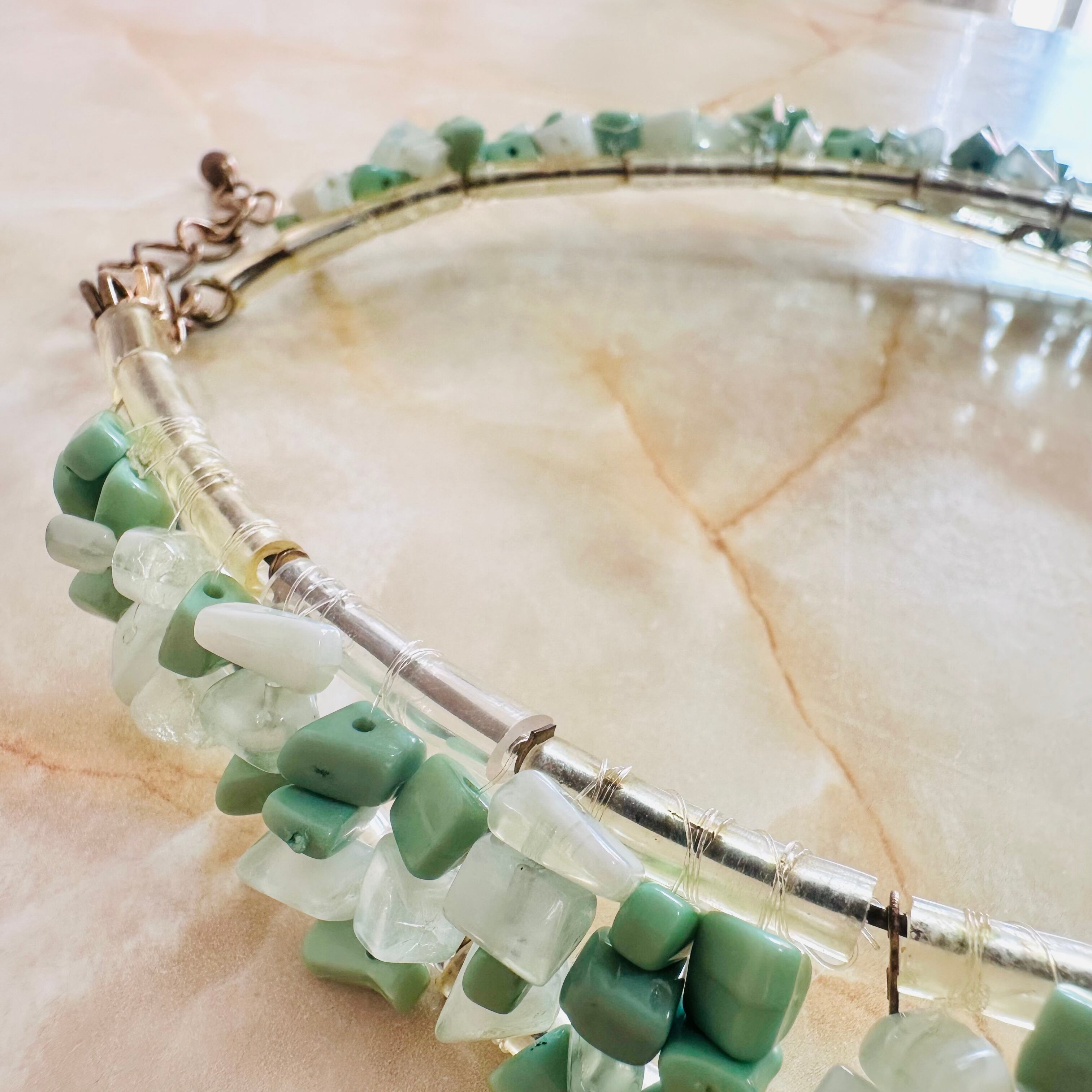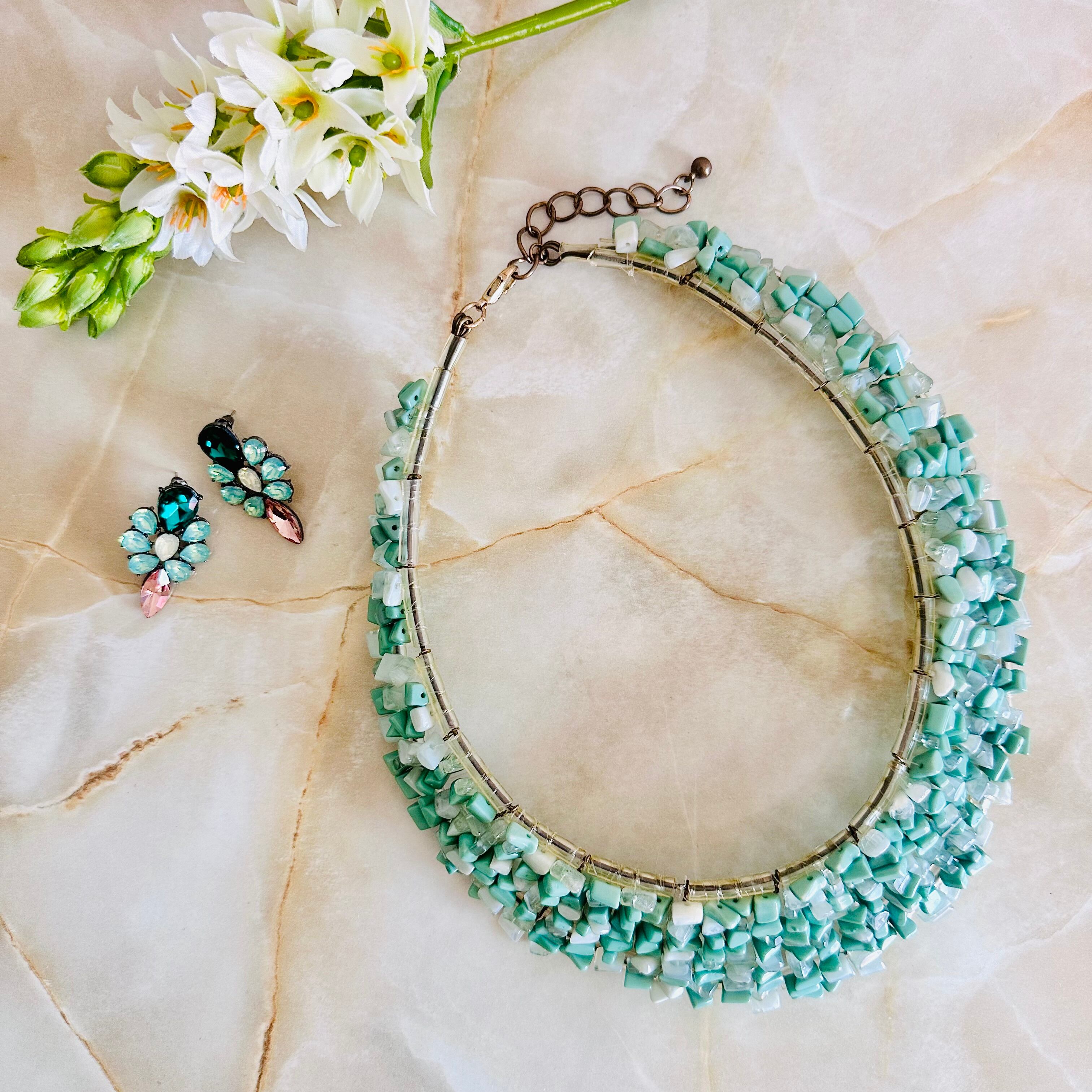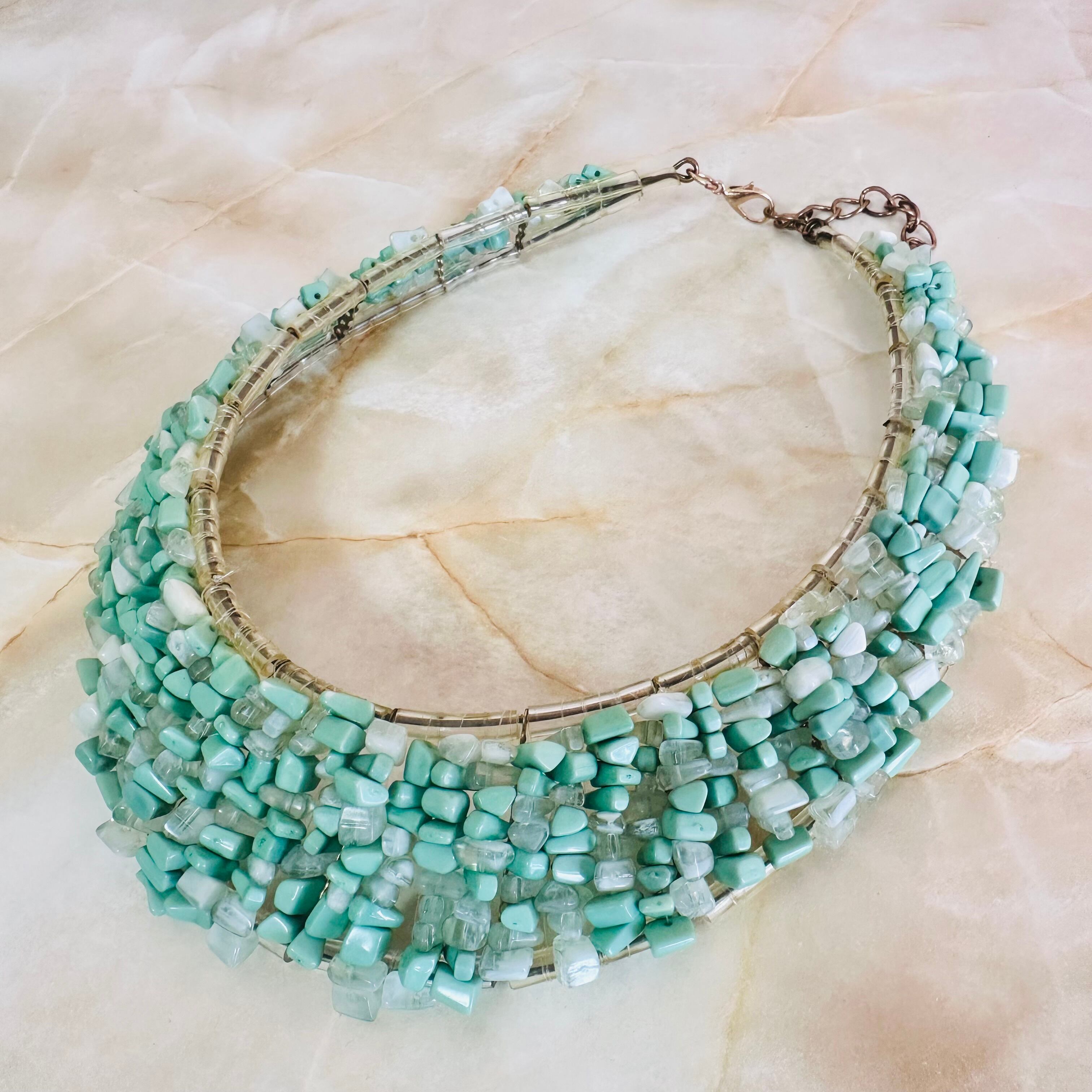 グリーン系✖️アンティークゴールドカラーのネックレスです。