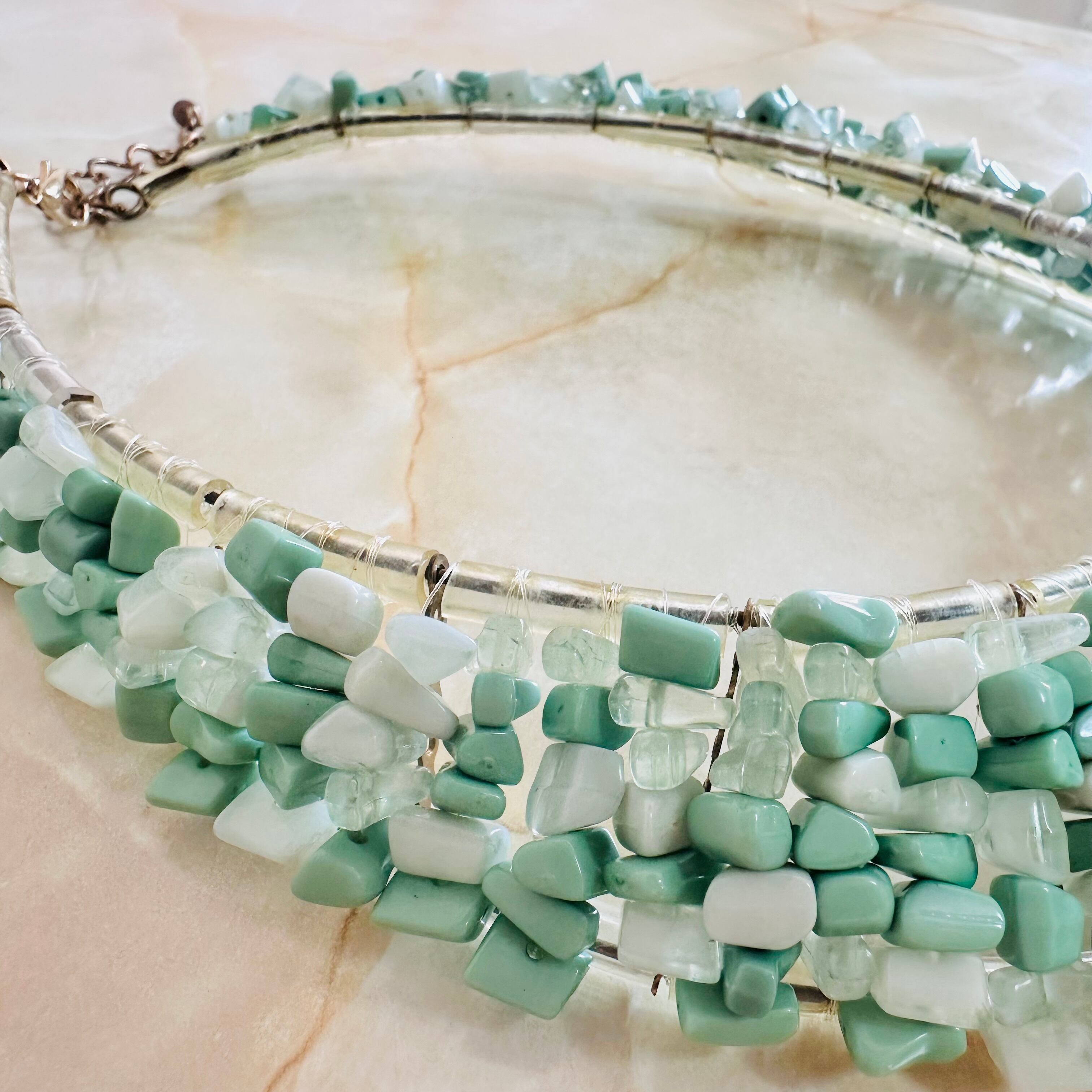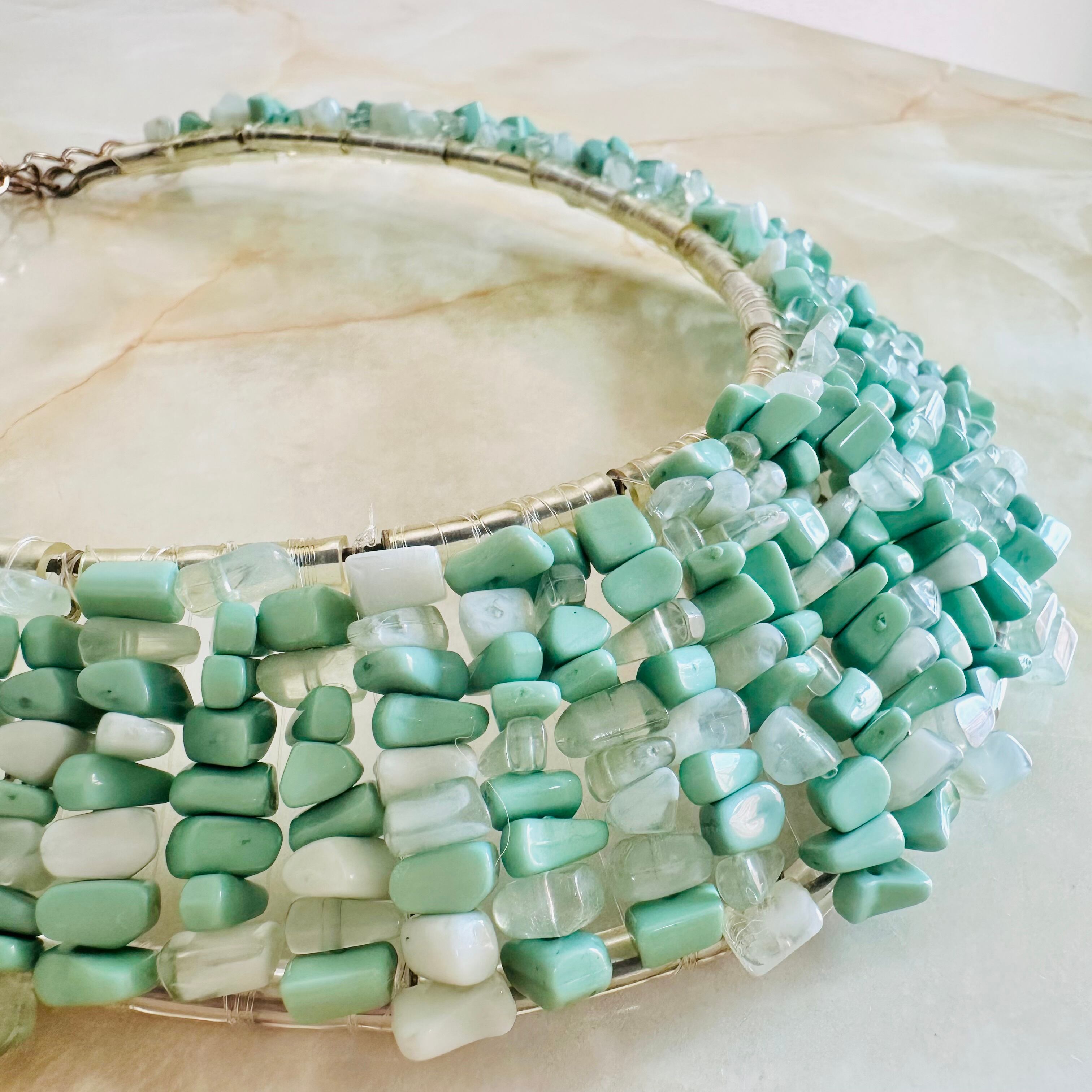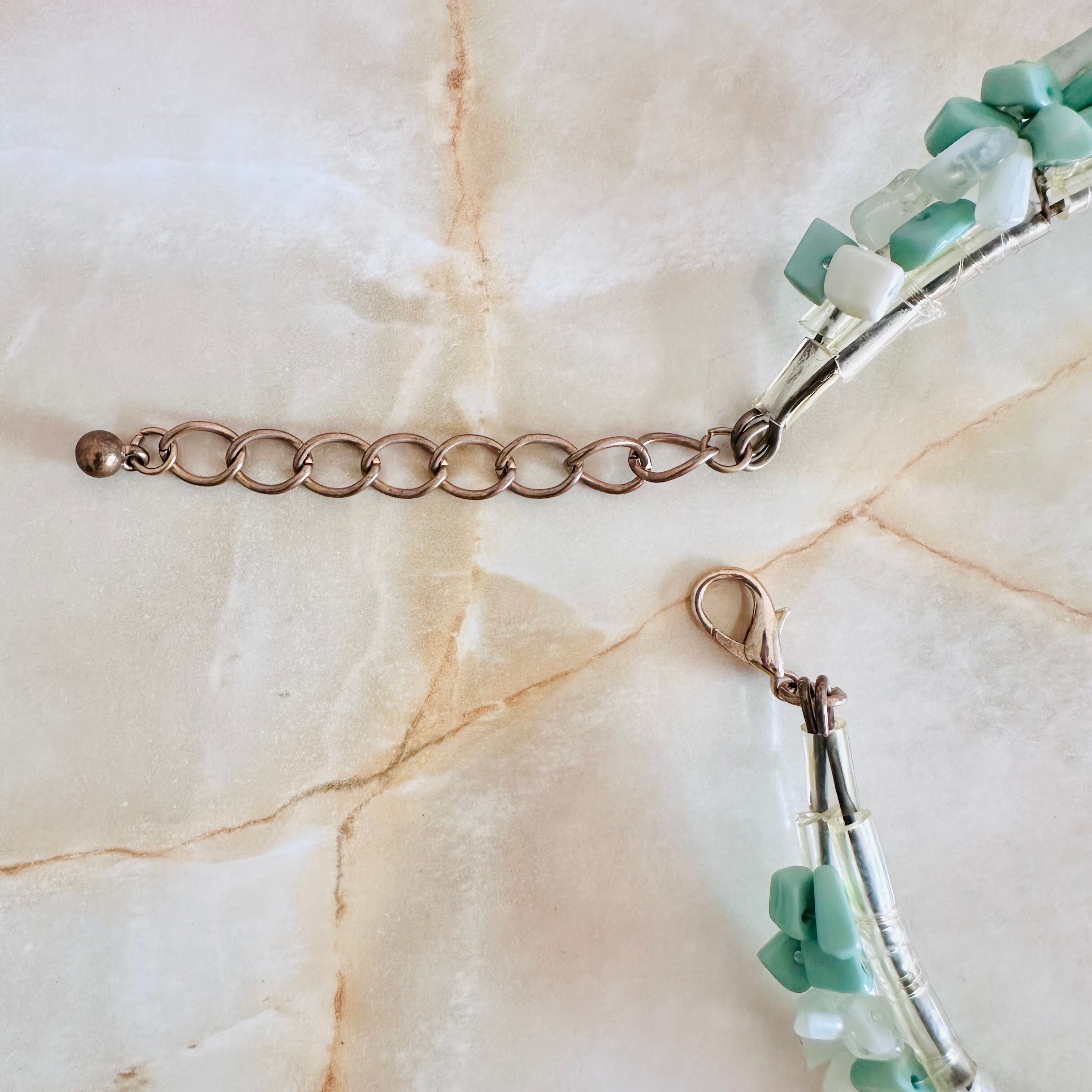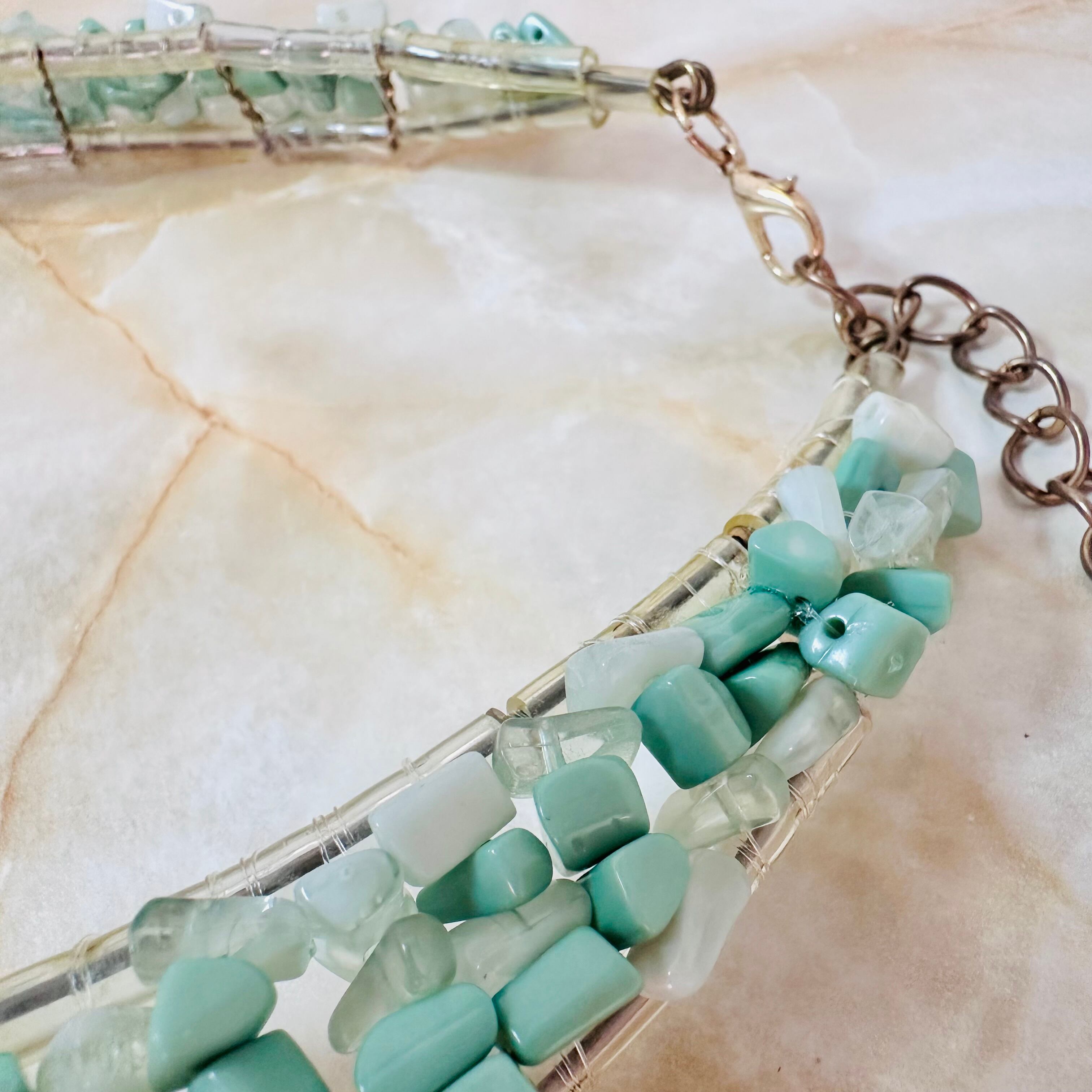 グリーン系✖️アンティークゴールドカラーのネックレスです。