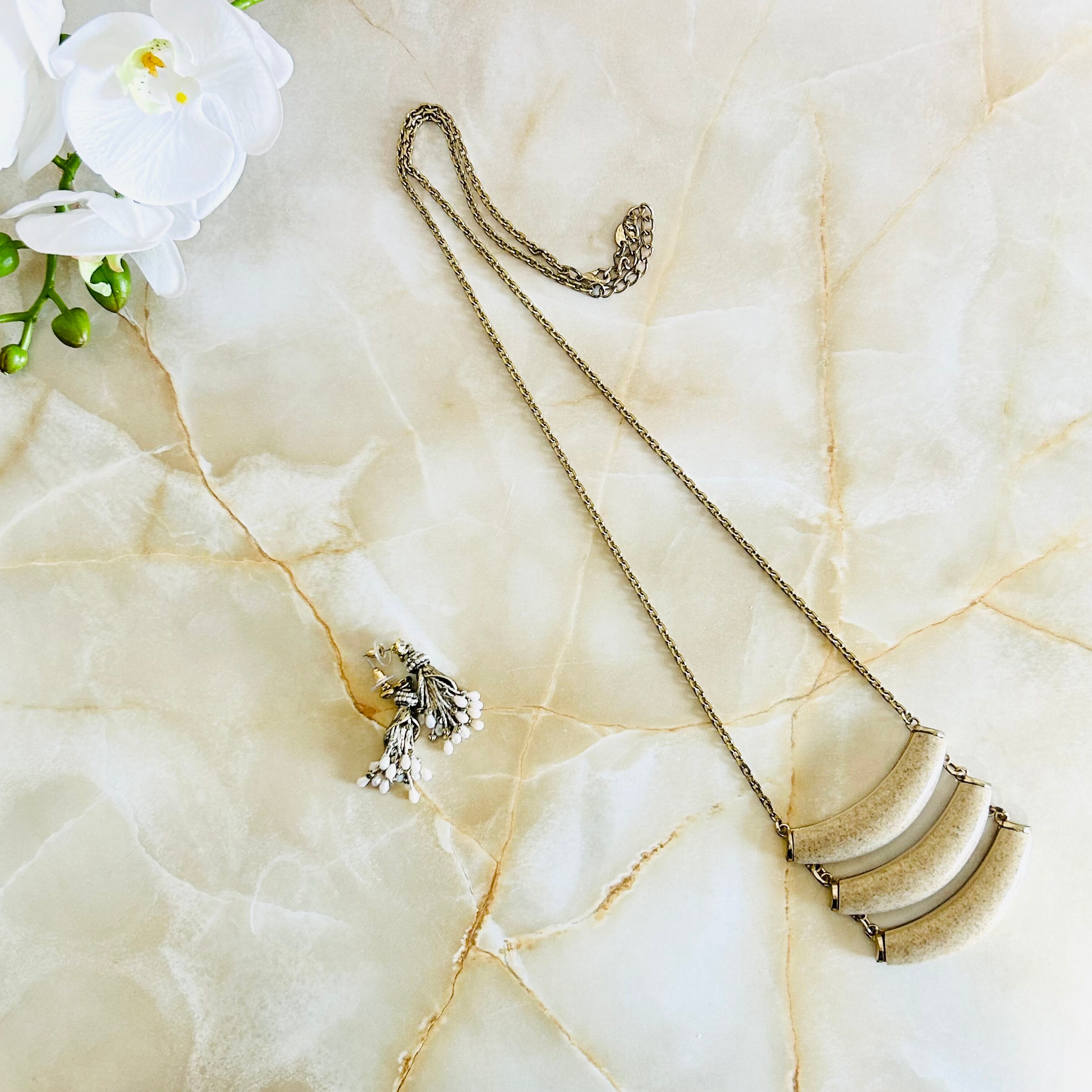 ベージュ✖️アンティークゴールドカラーのロングネックレスです。