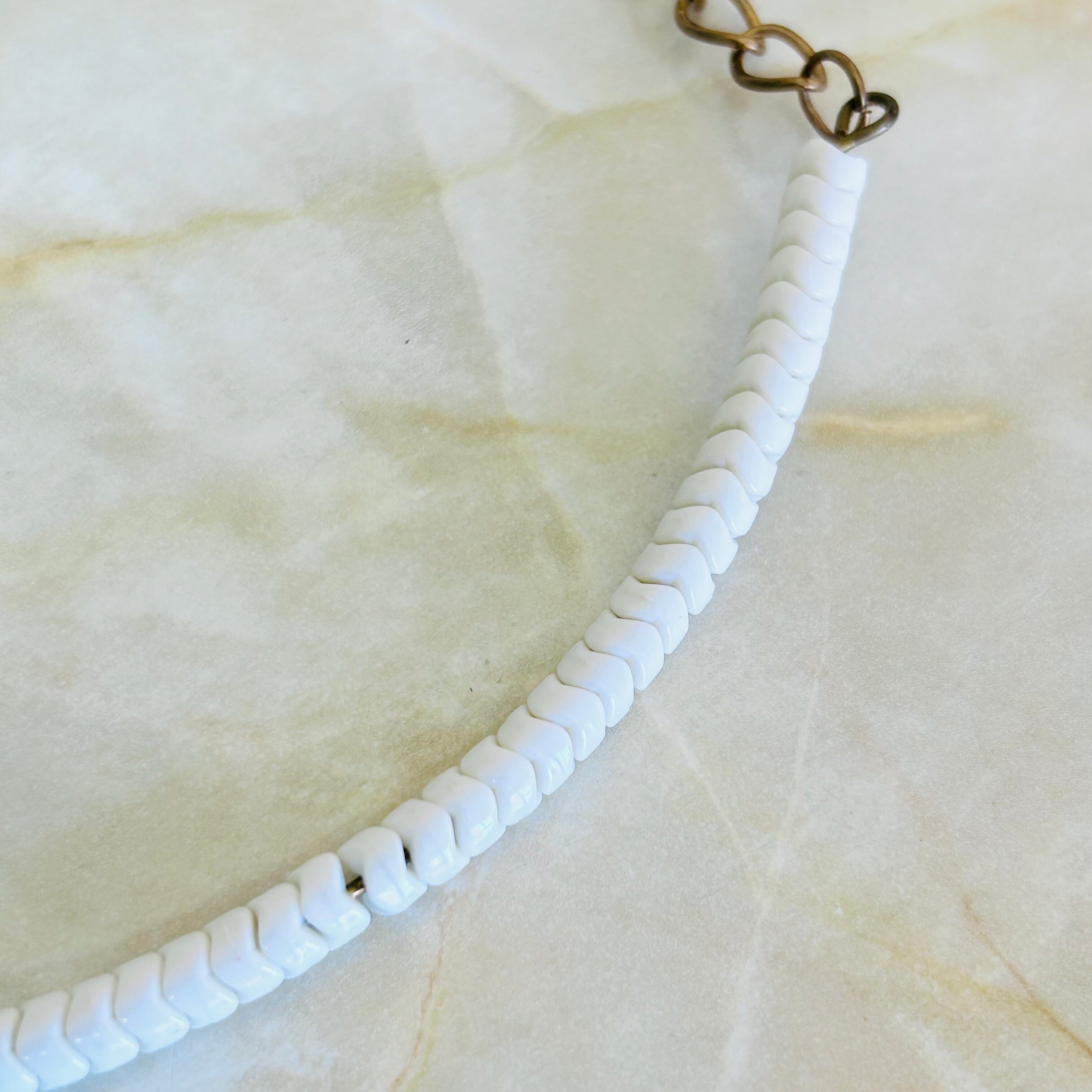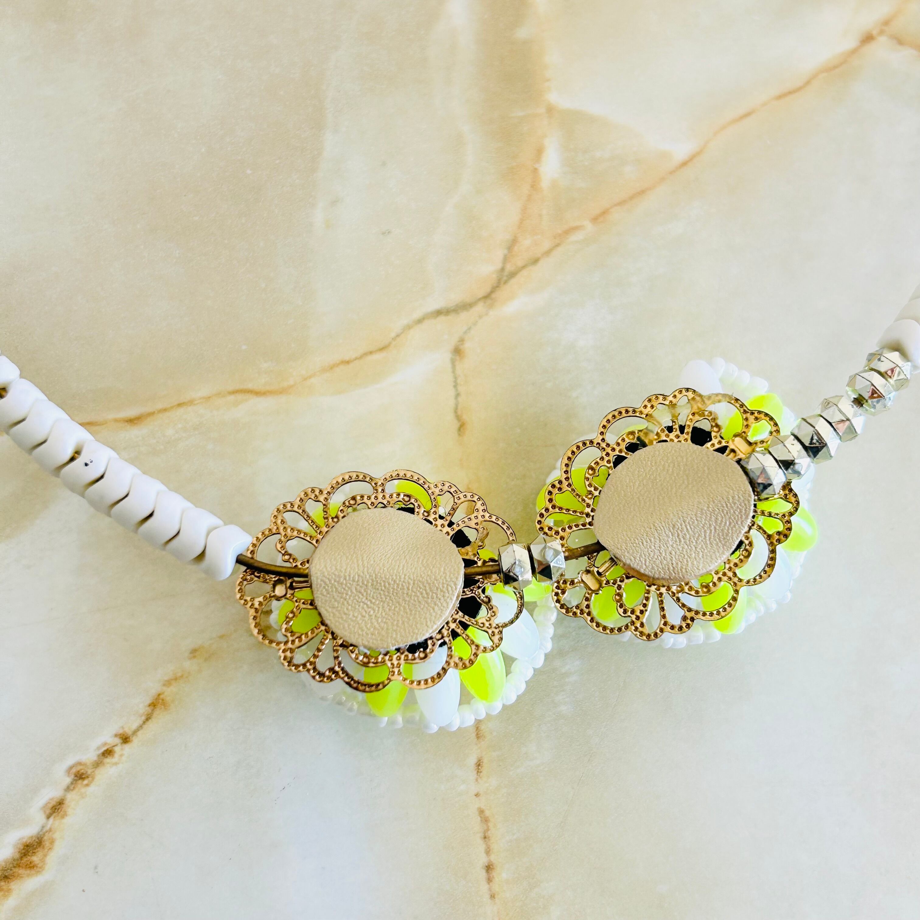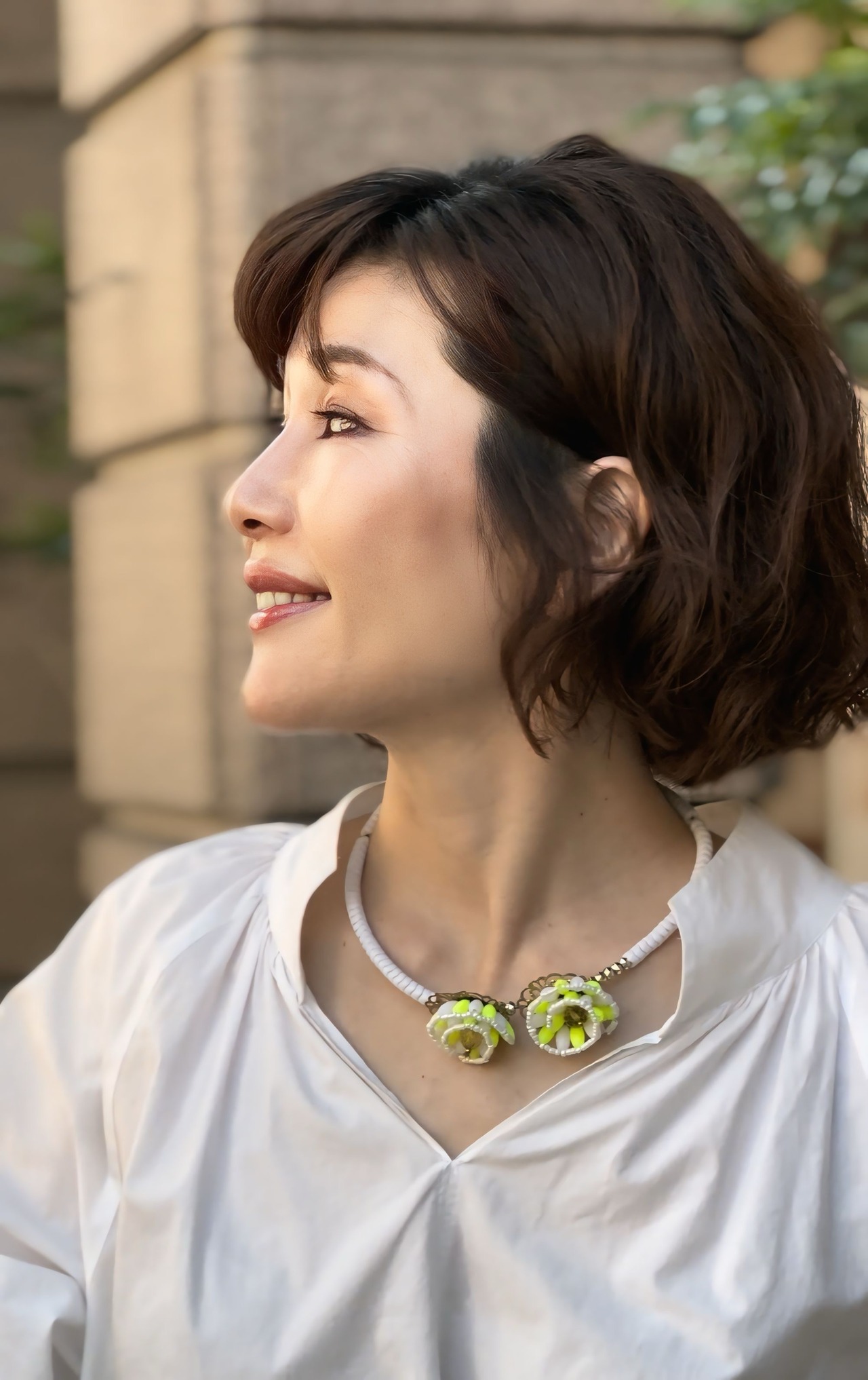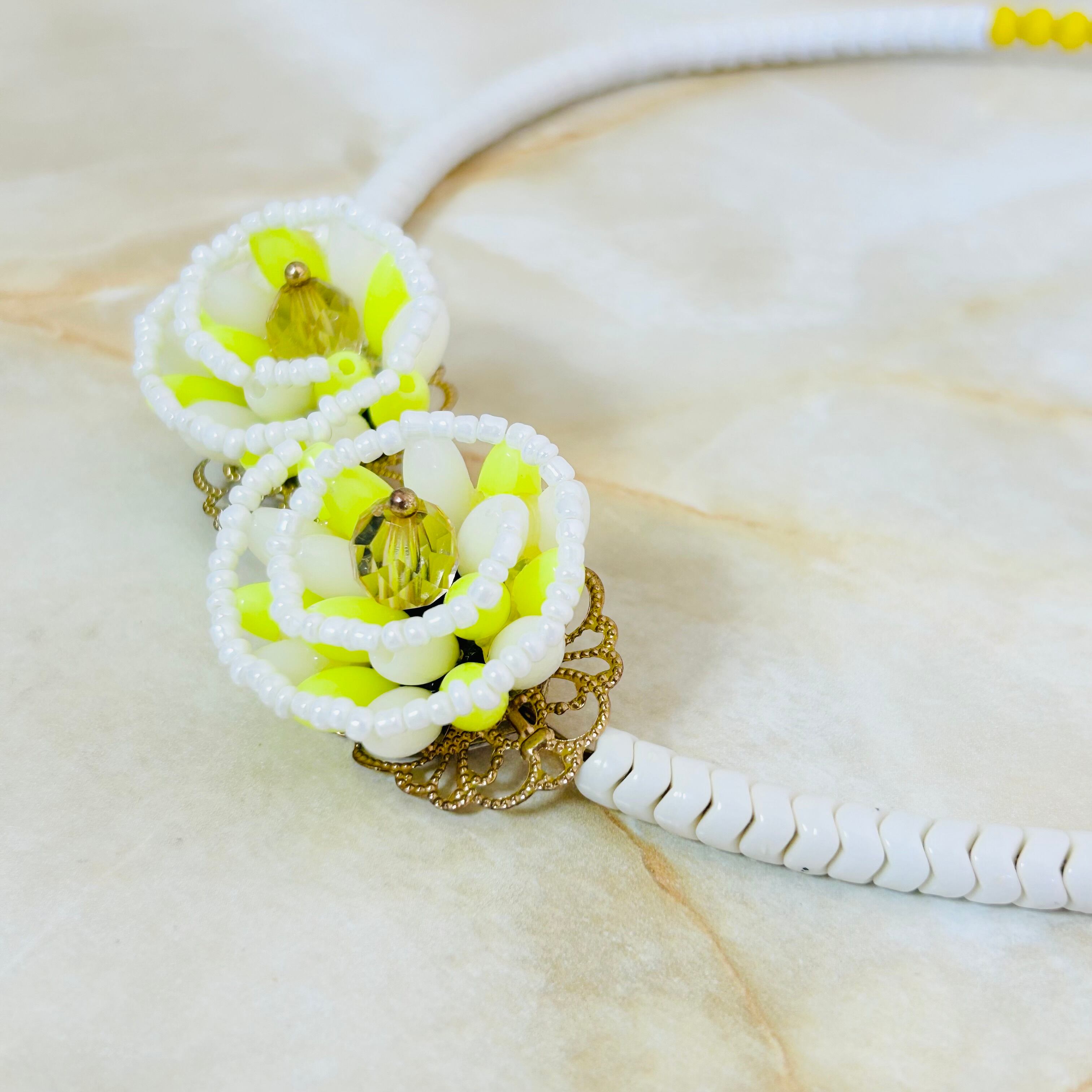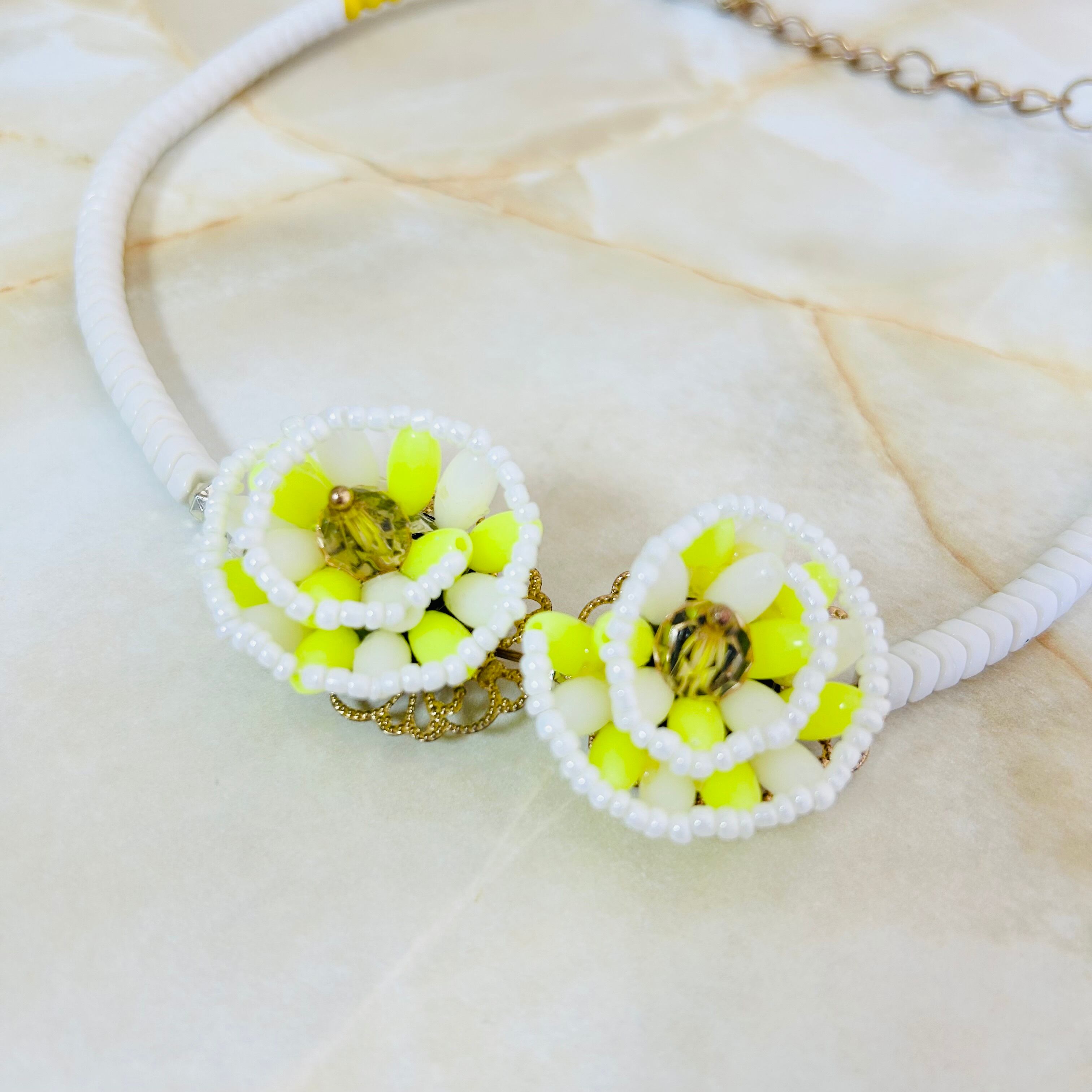 レモンイエロー、ホワイトカラー✖️アンティークゴールドカラーのネックレスです。