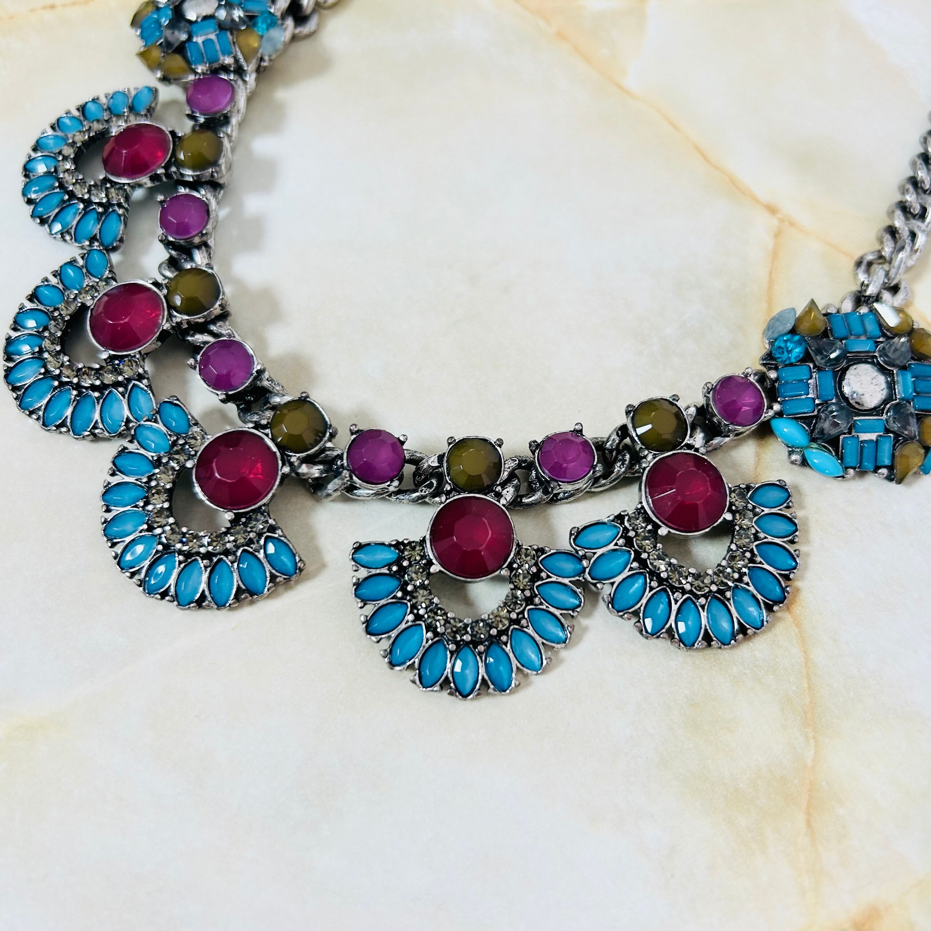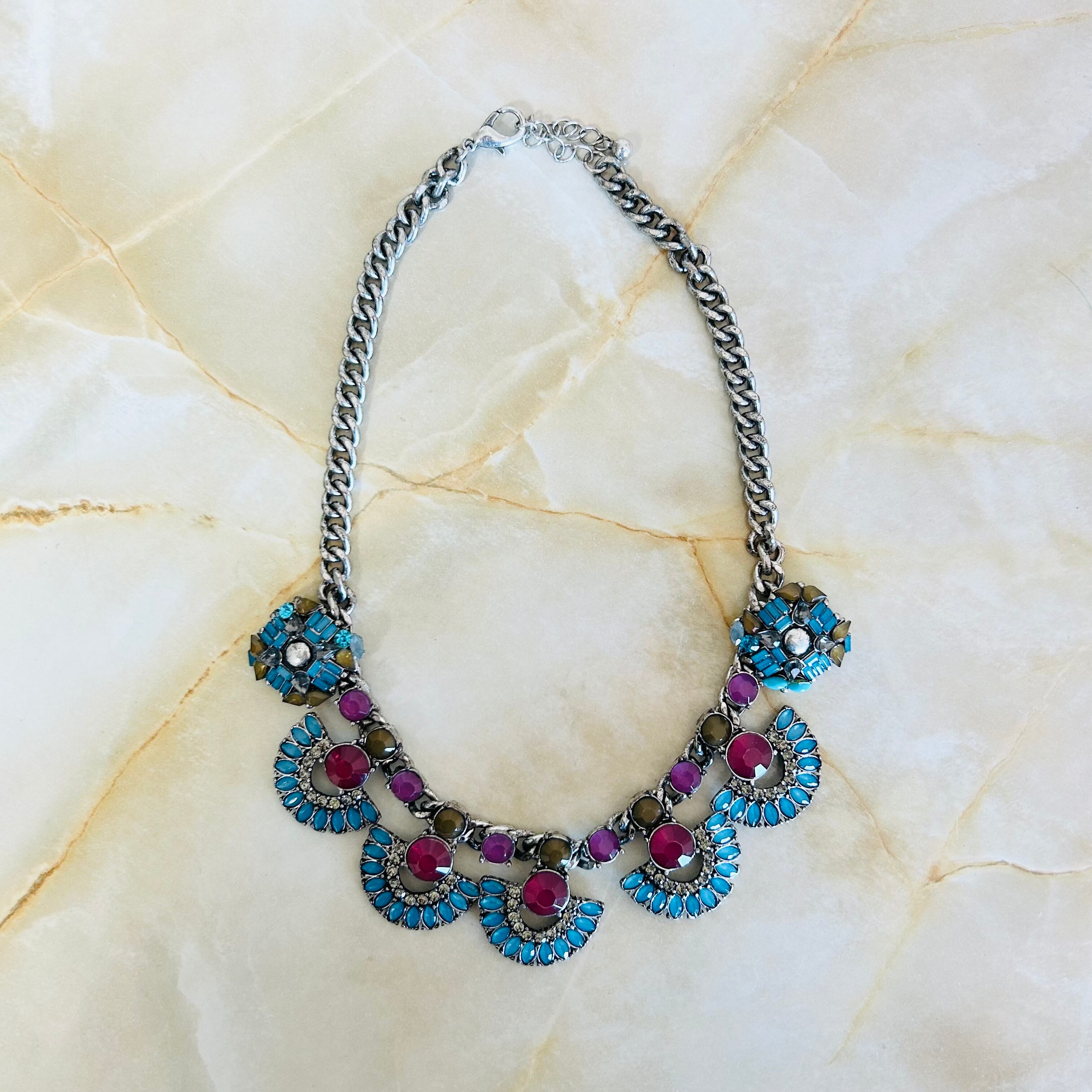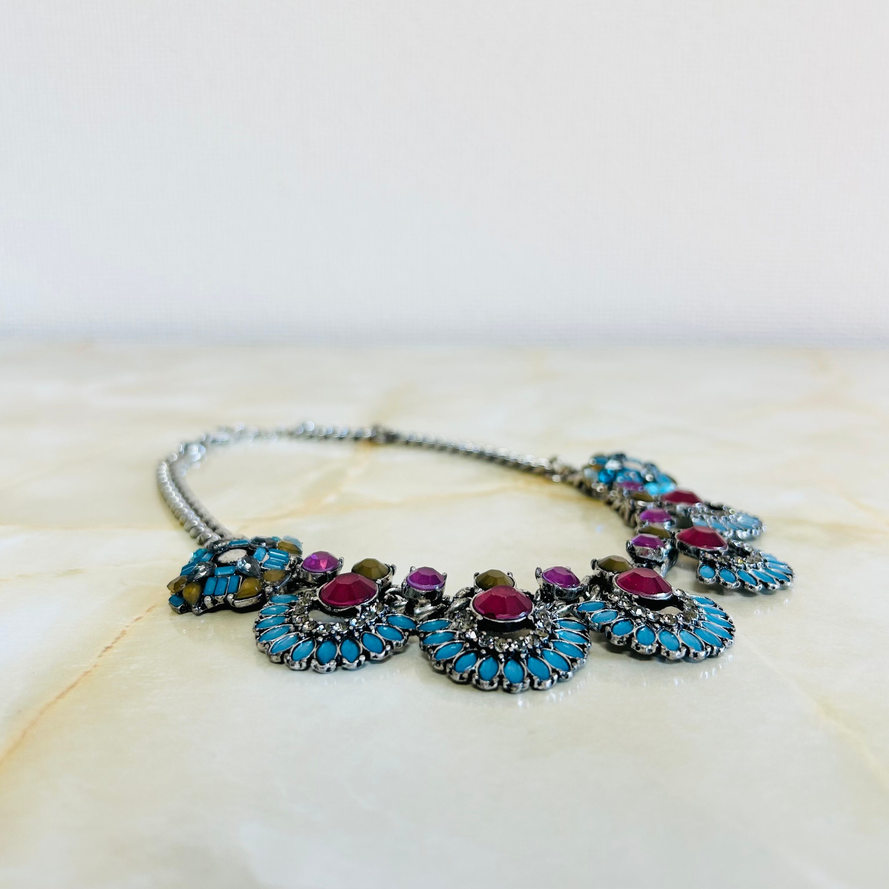 マルチカラー✖️アンティークシルバーカラーのネックレスです。