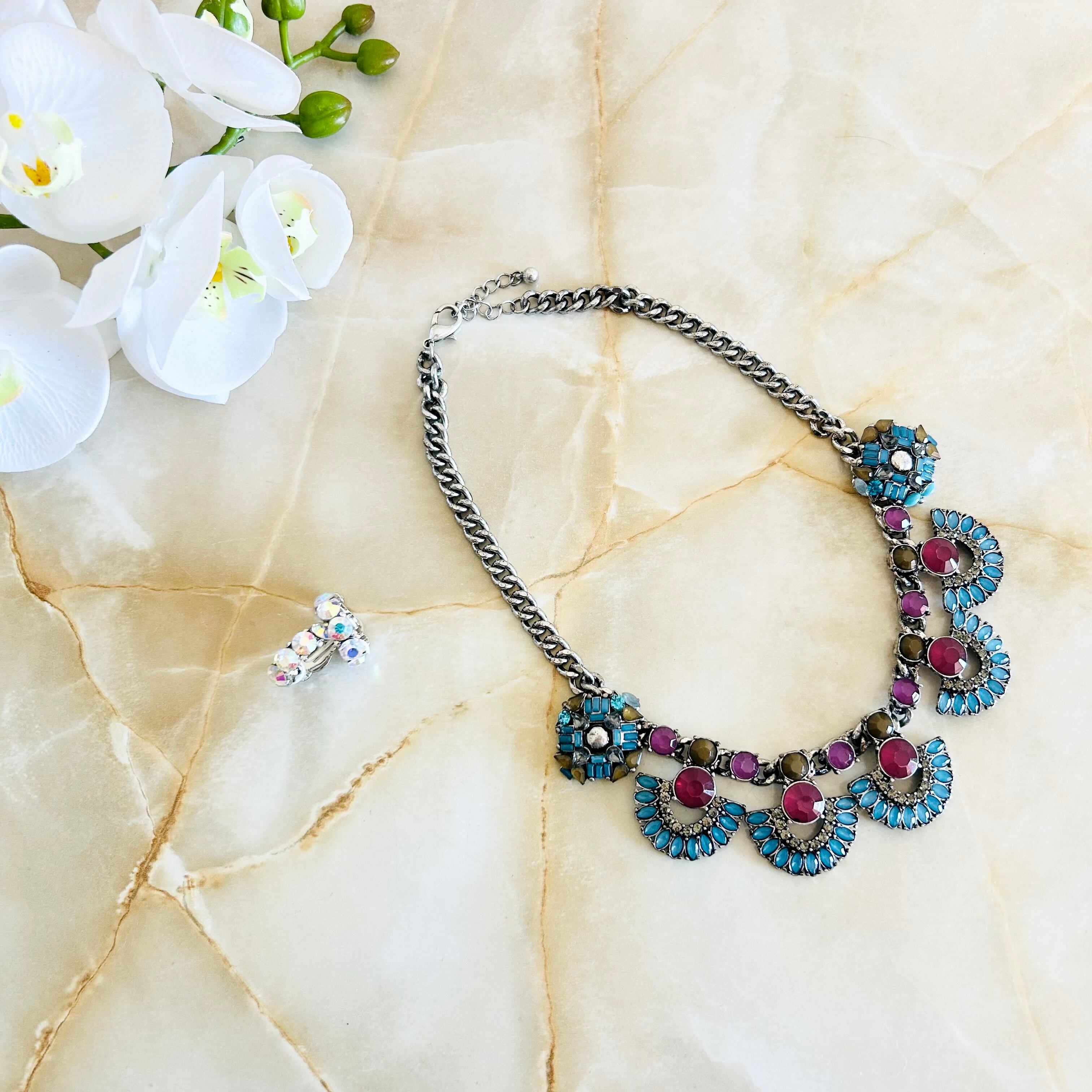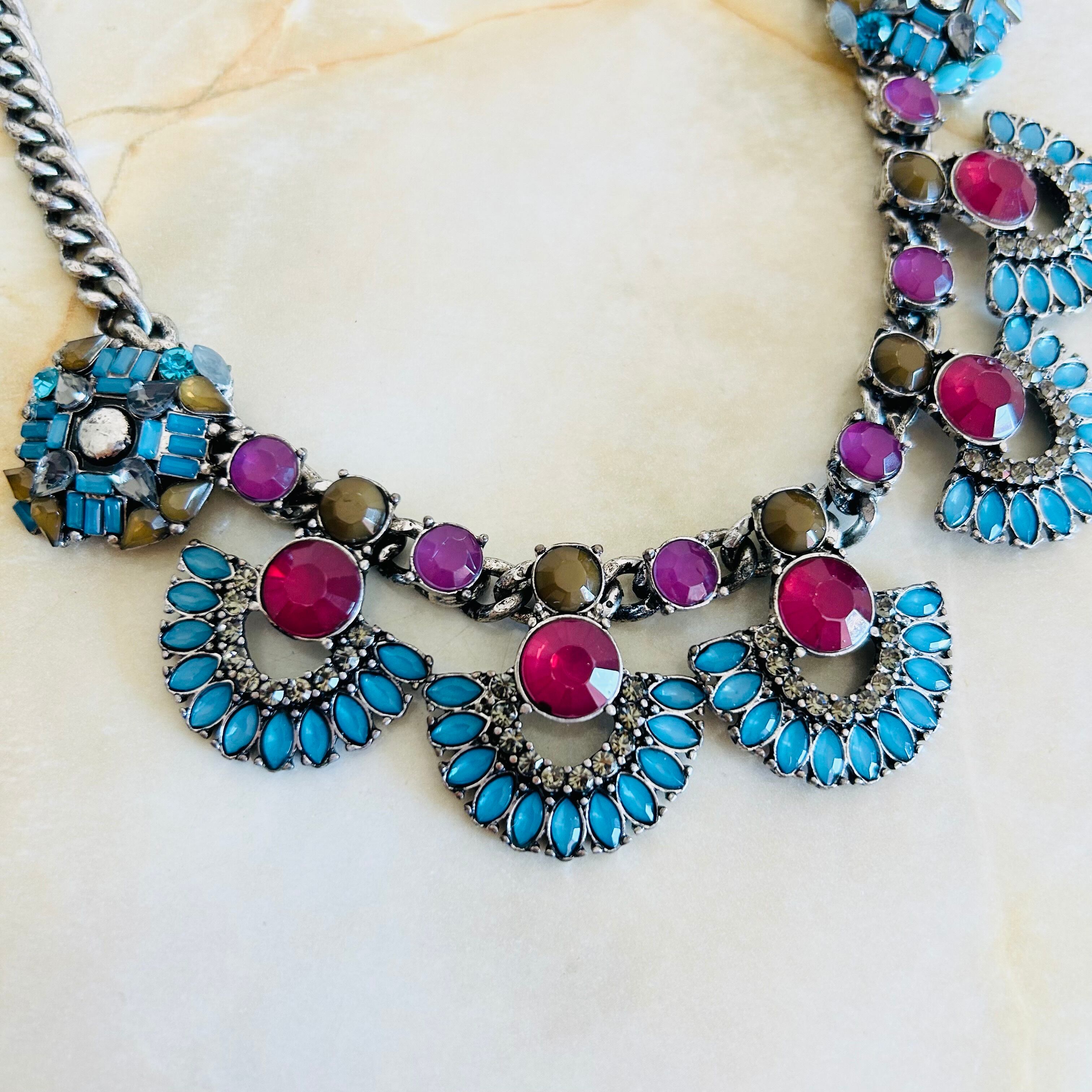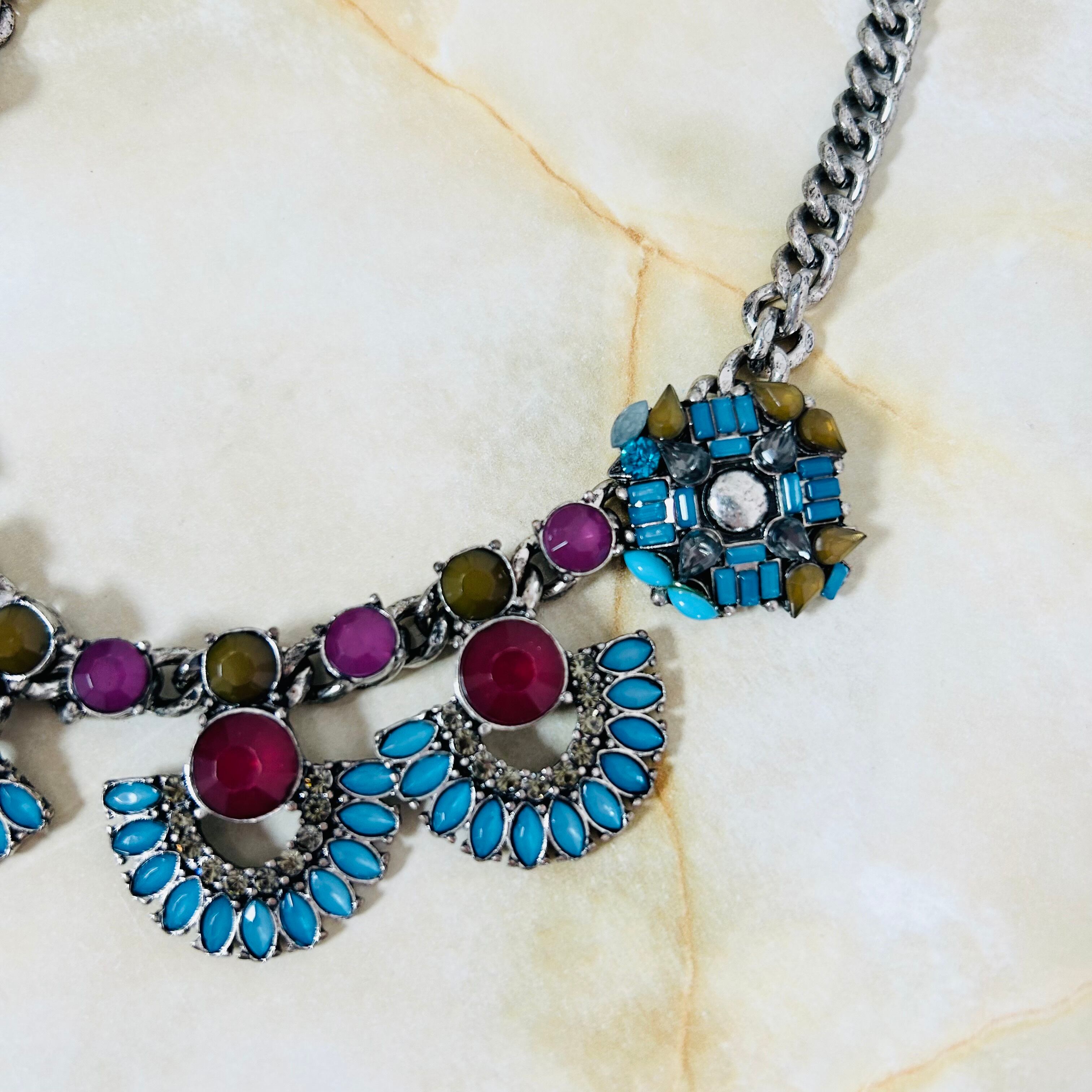 マルチカラー✖️アンティークシルバーカラーのネックレスです。