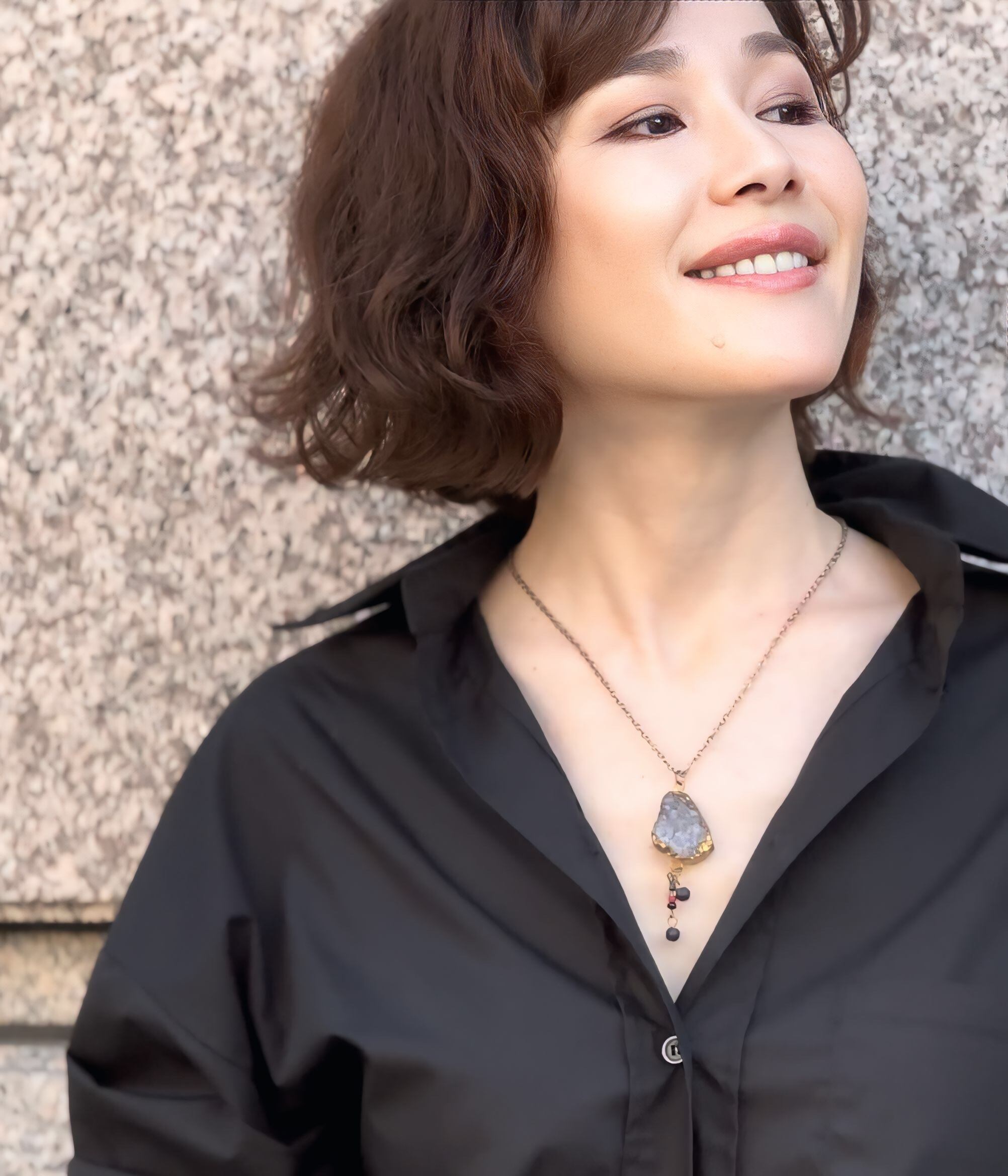 モノトーン系✖️アンティークゴールドカラーのネックレスです。