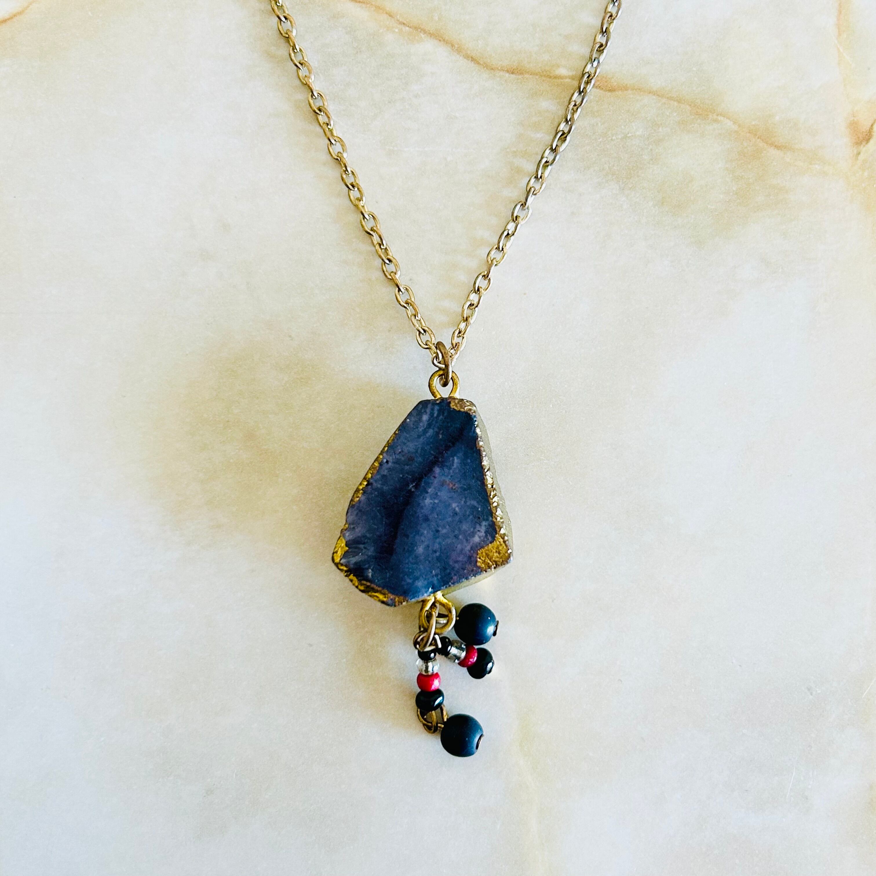 美しい天然石とブラック×レッドのビーズを使用したクールなデザインです。