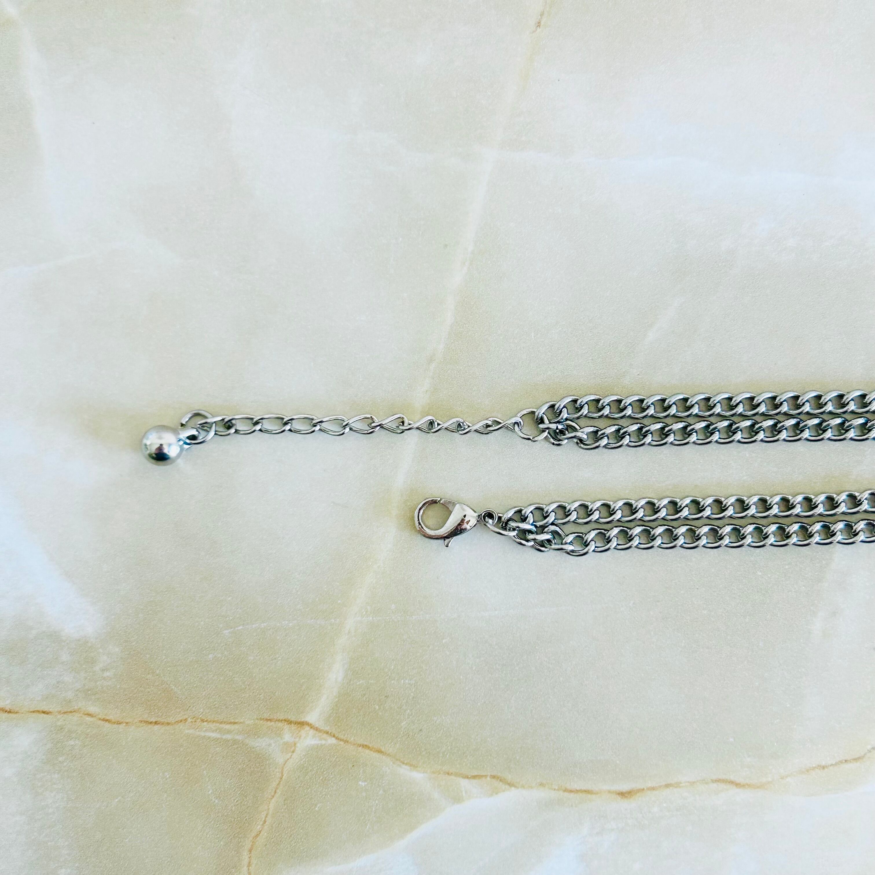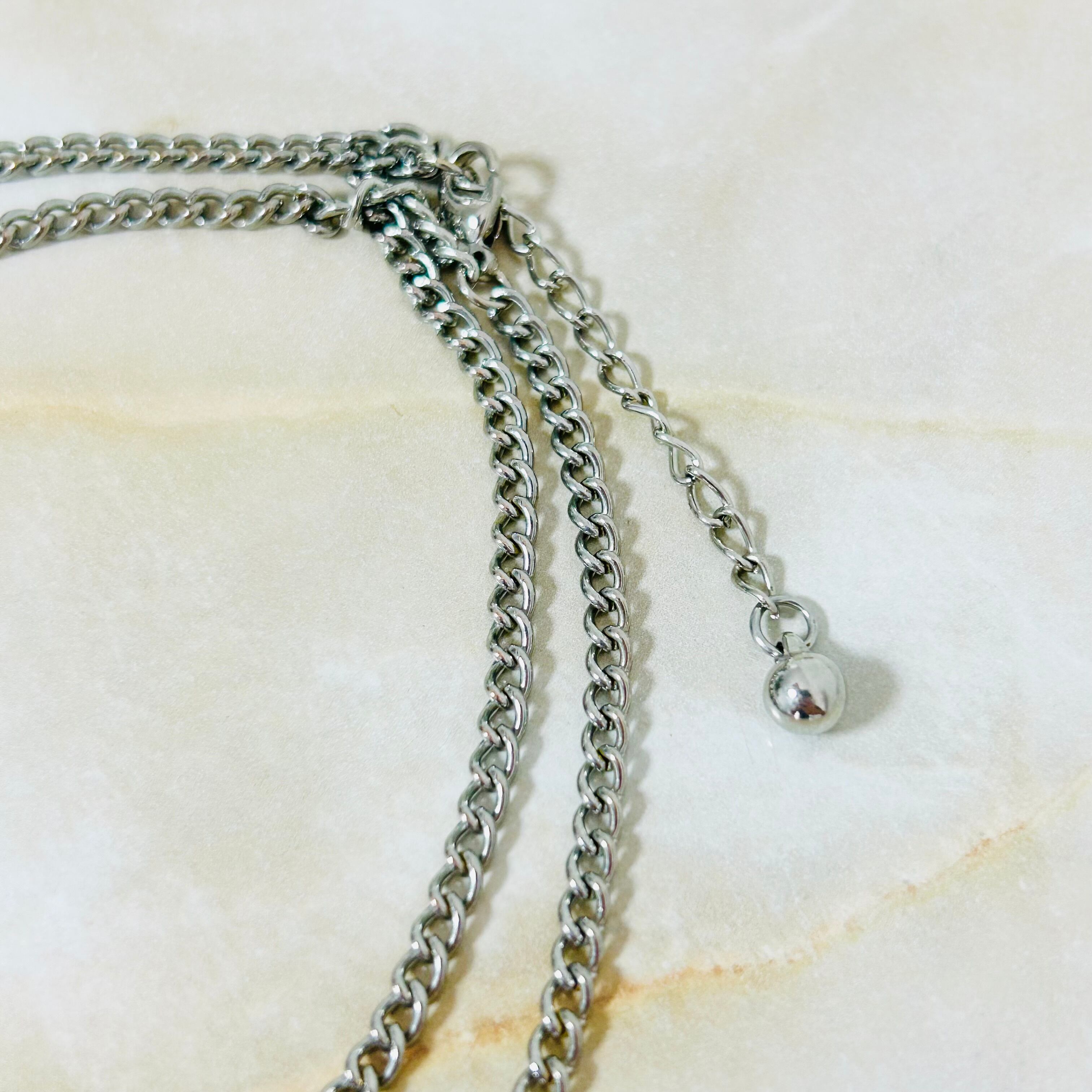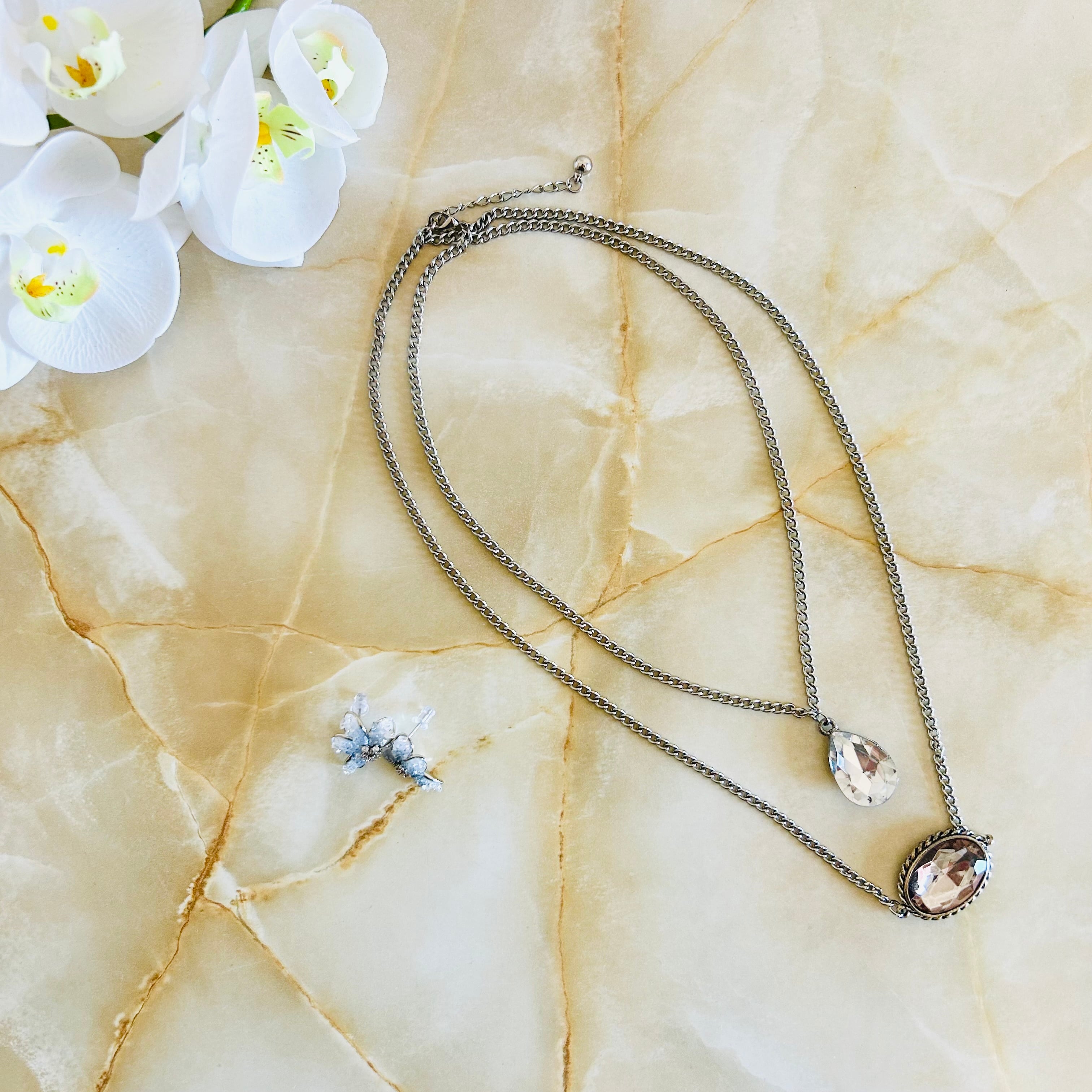 美しく輝く透明感のあるビジューを二重に重ね、シルバーカラーのチェーンでシンプルに仕上げました!
