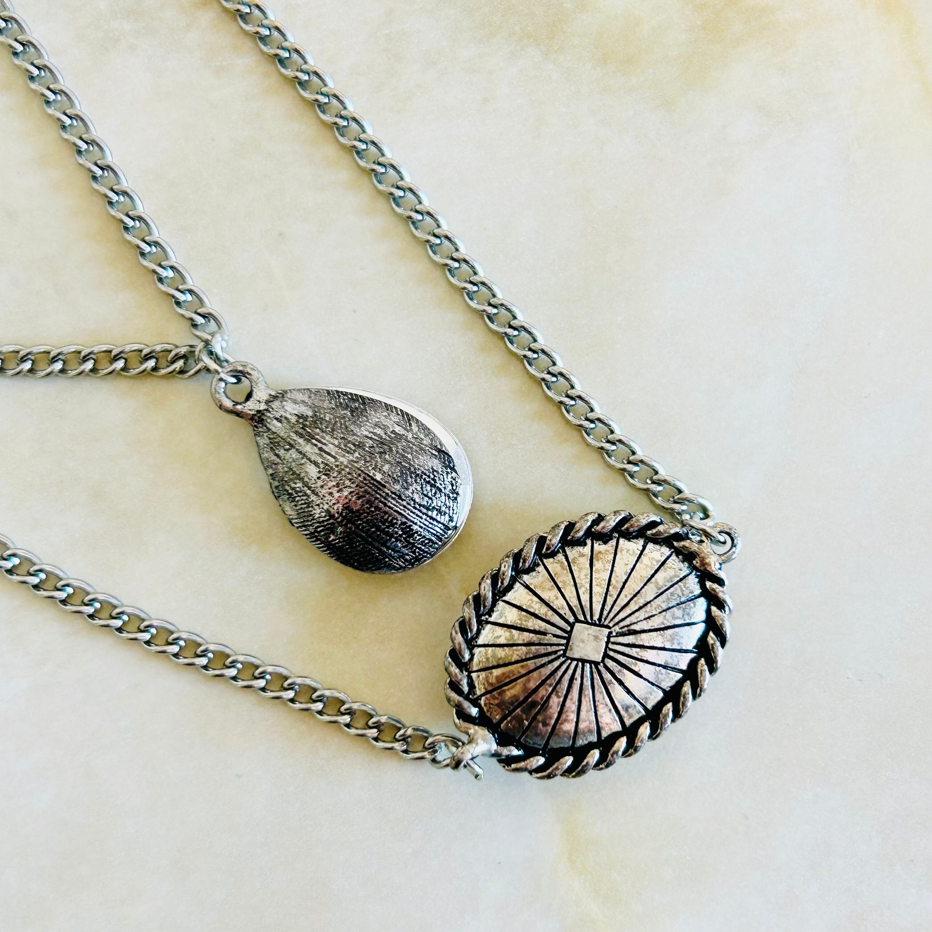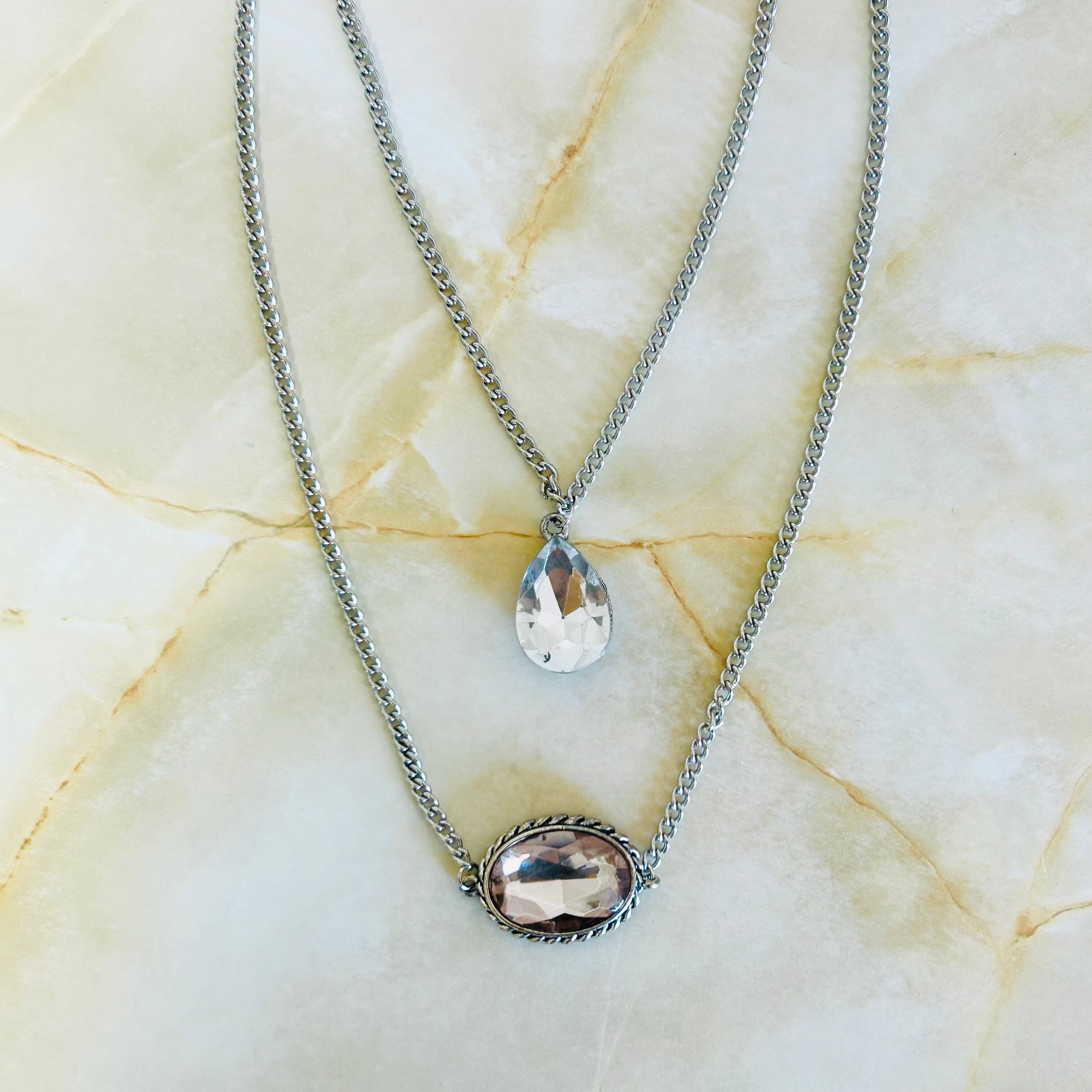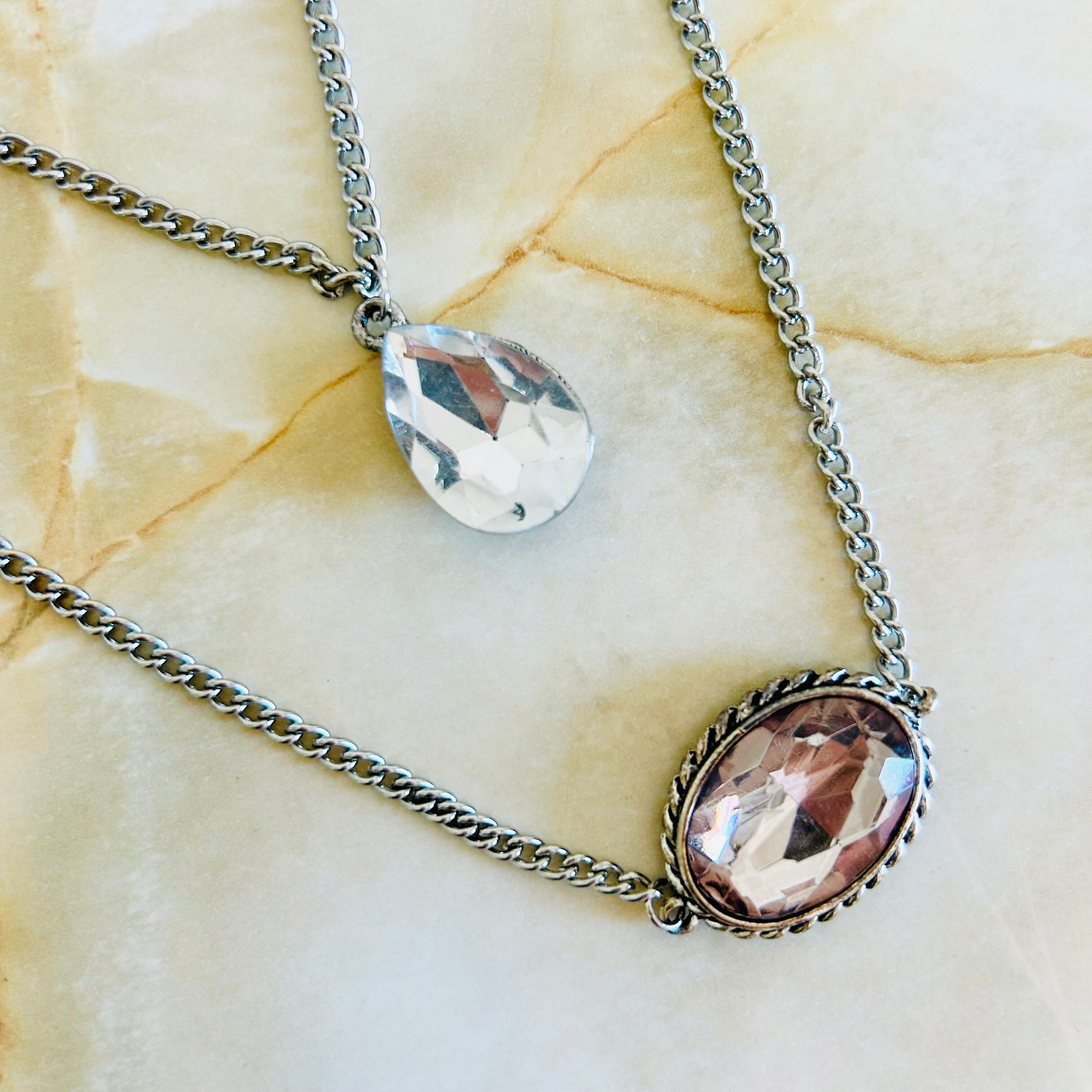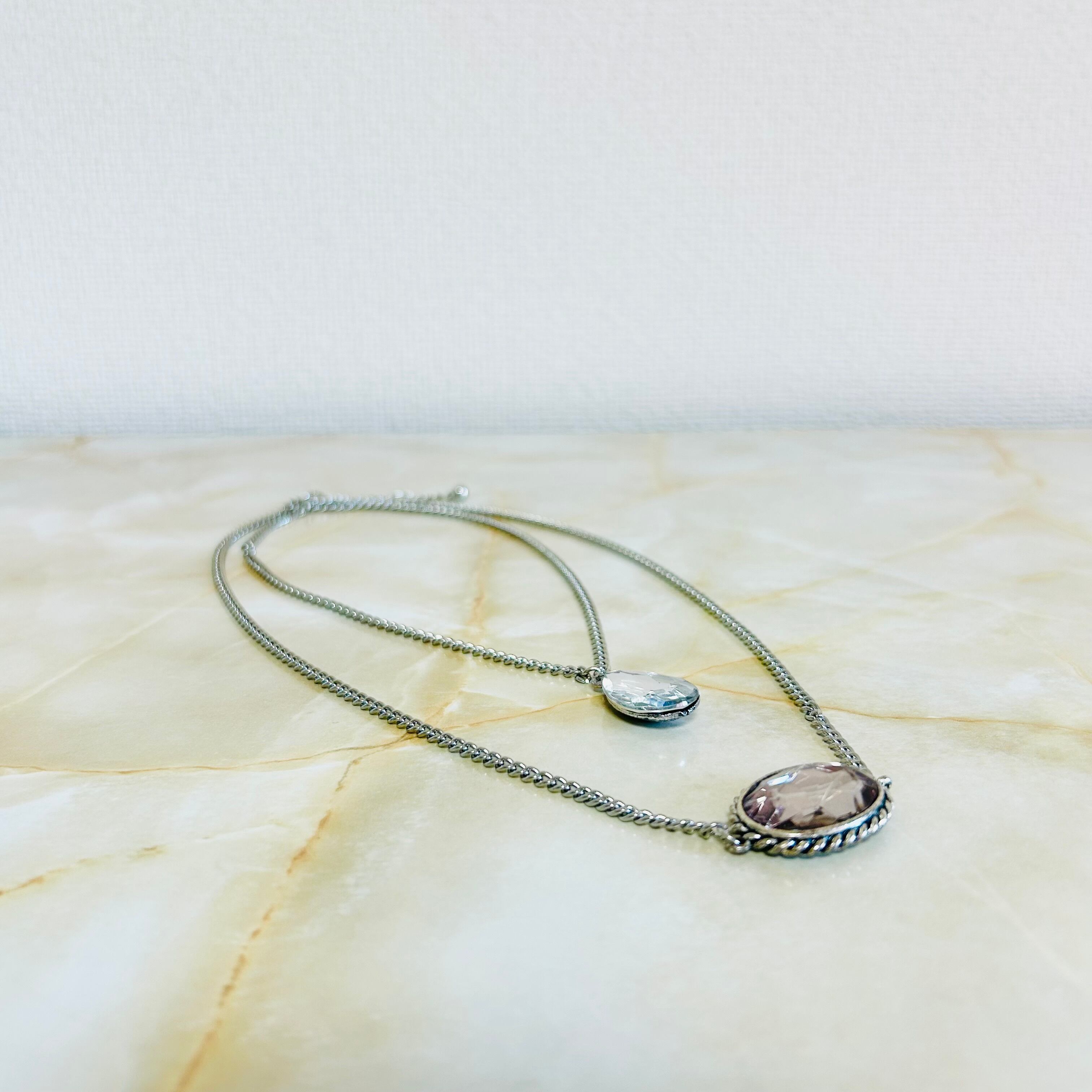 クリスタルカラー、ブラウン系カラー✖️シルバーカラーのネックレスです。