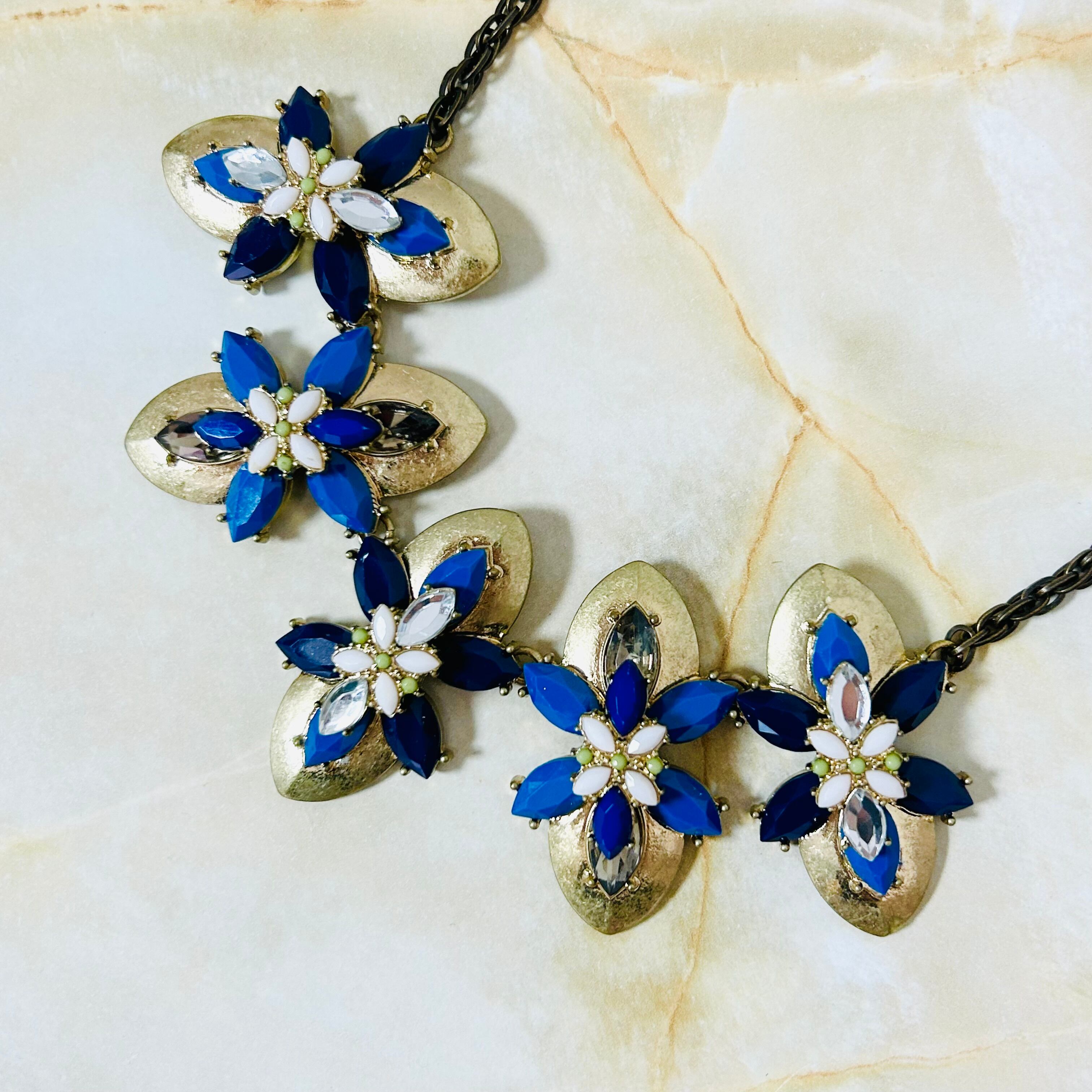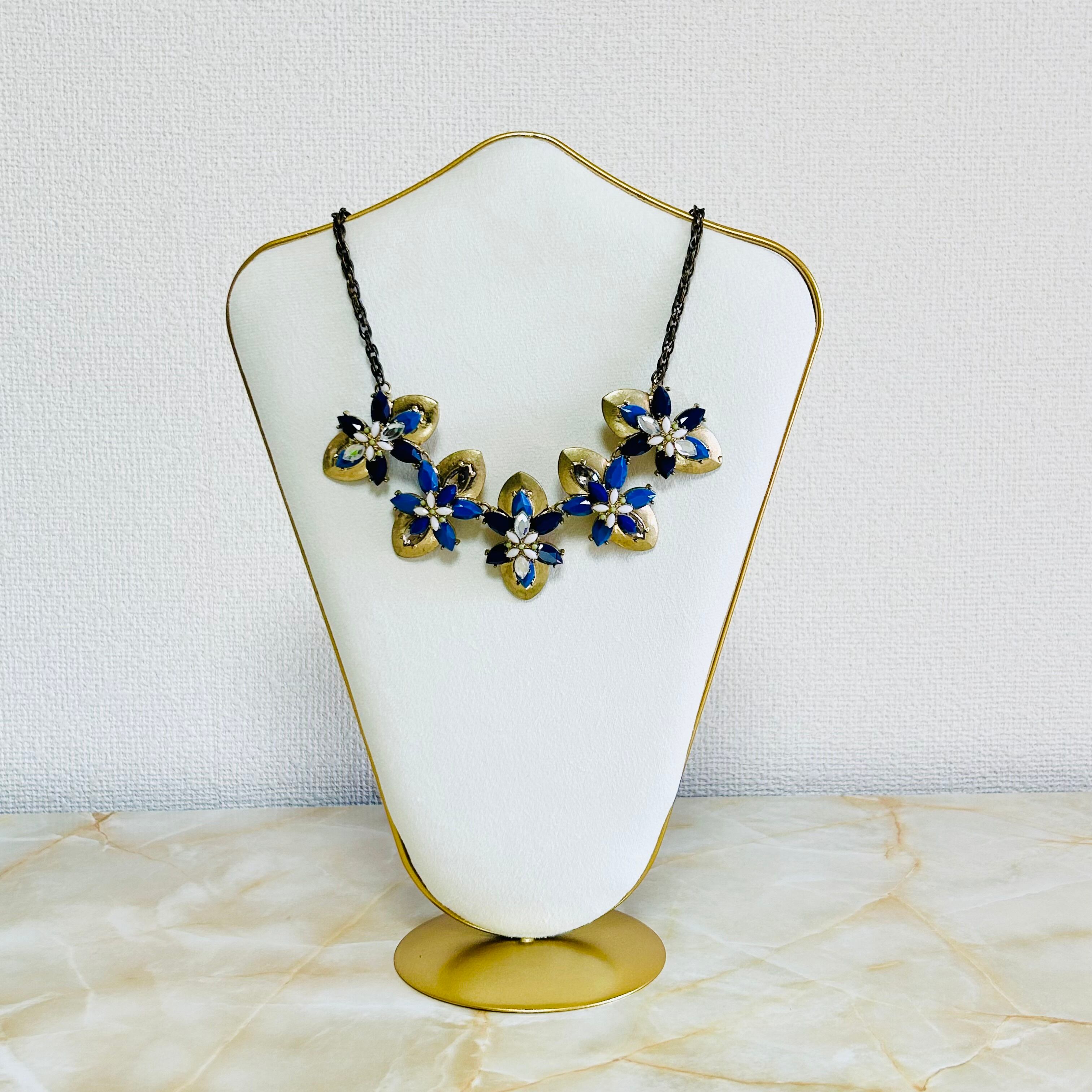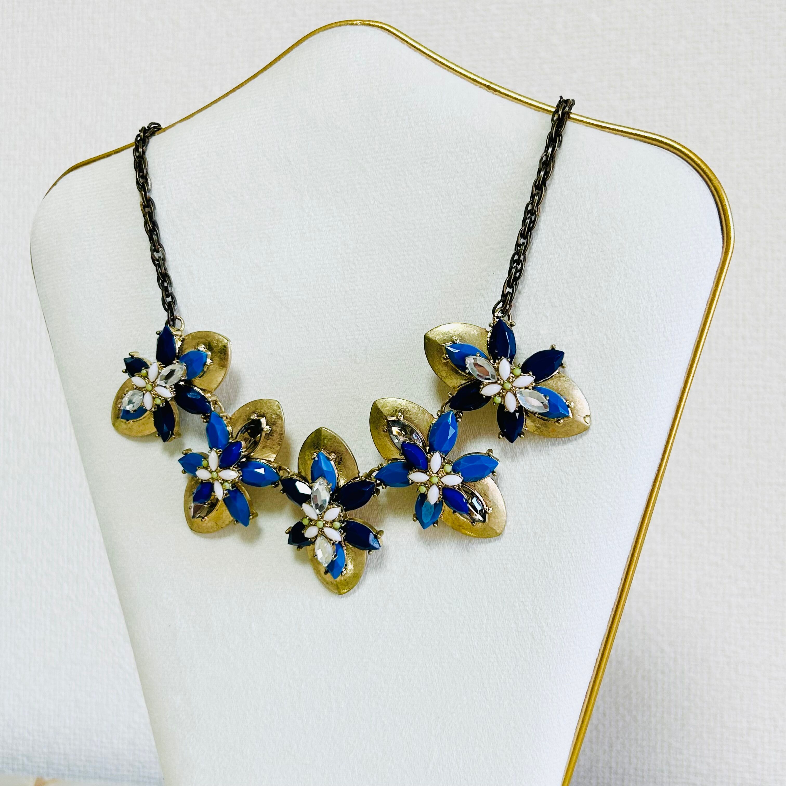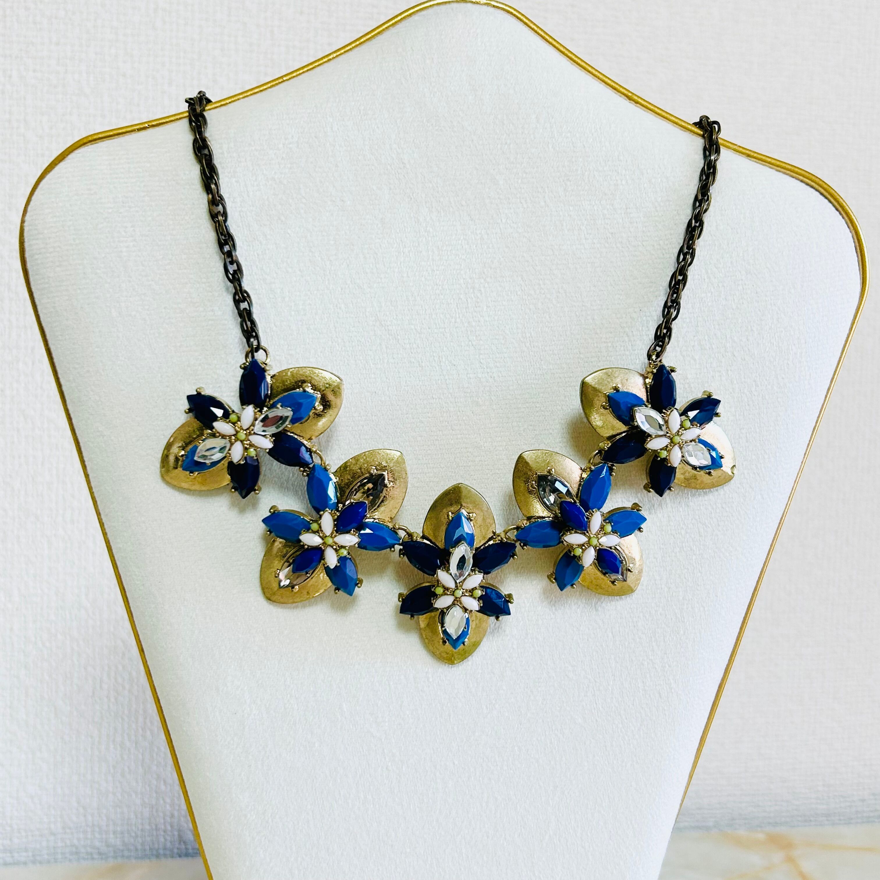 ブルー系、ホワイト✖️アンティークゴールドカラーのネックレスです。