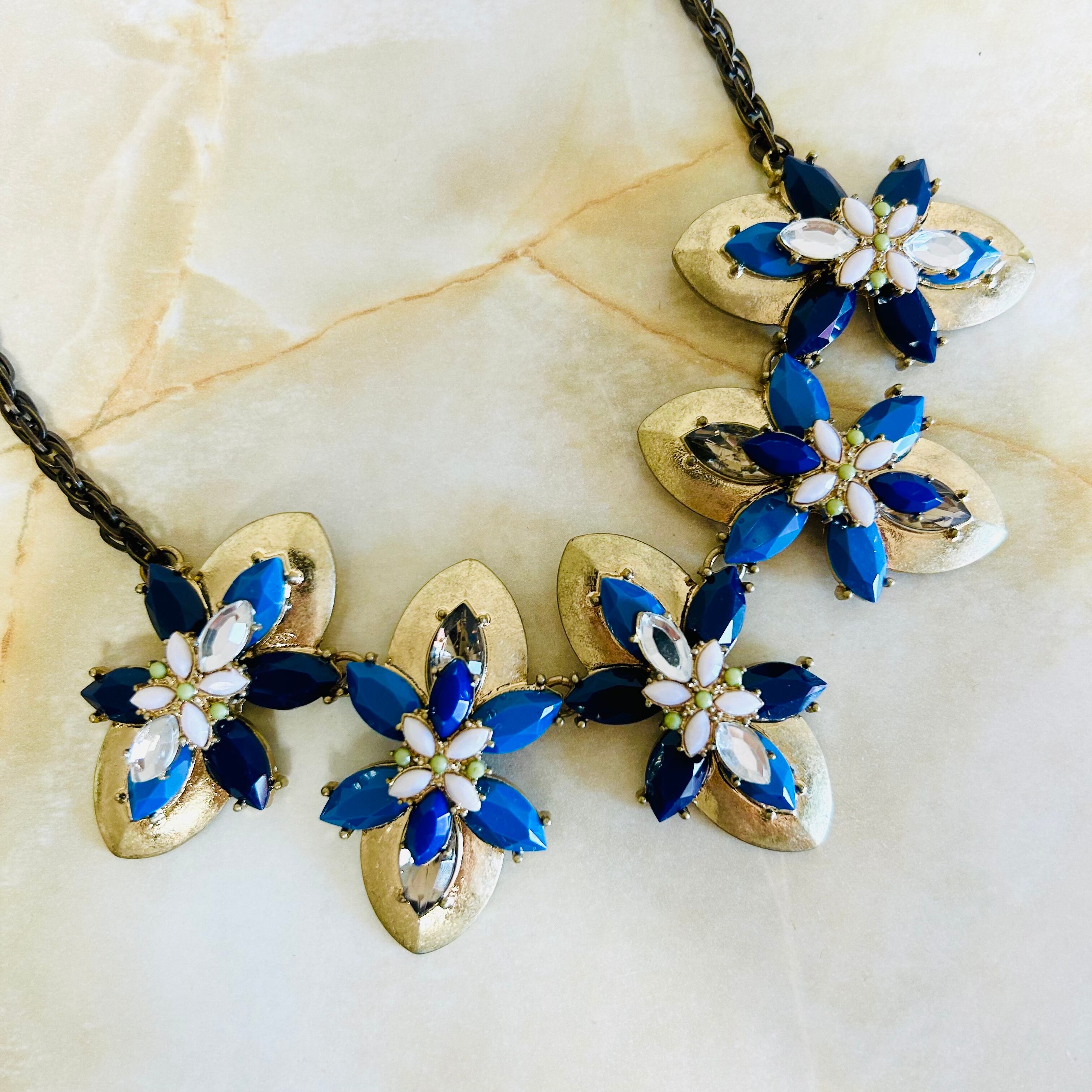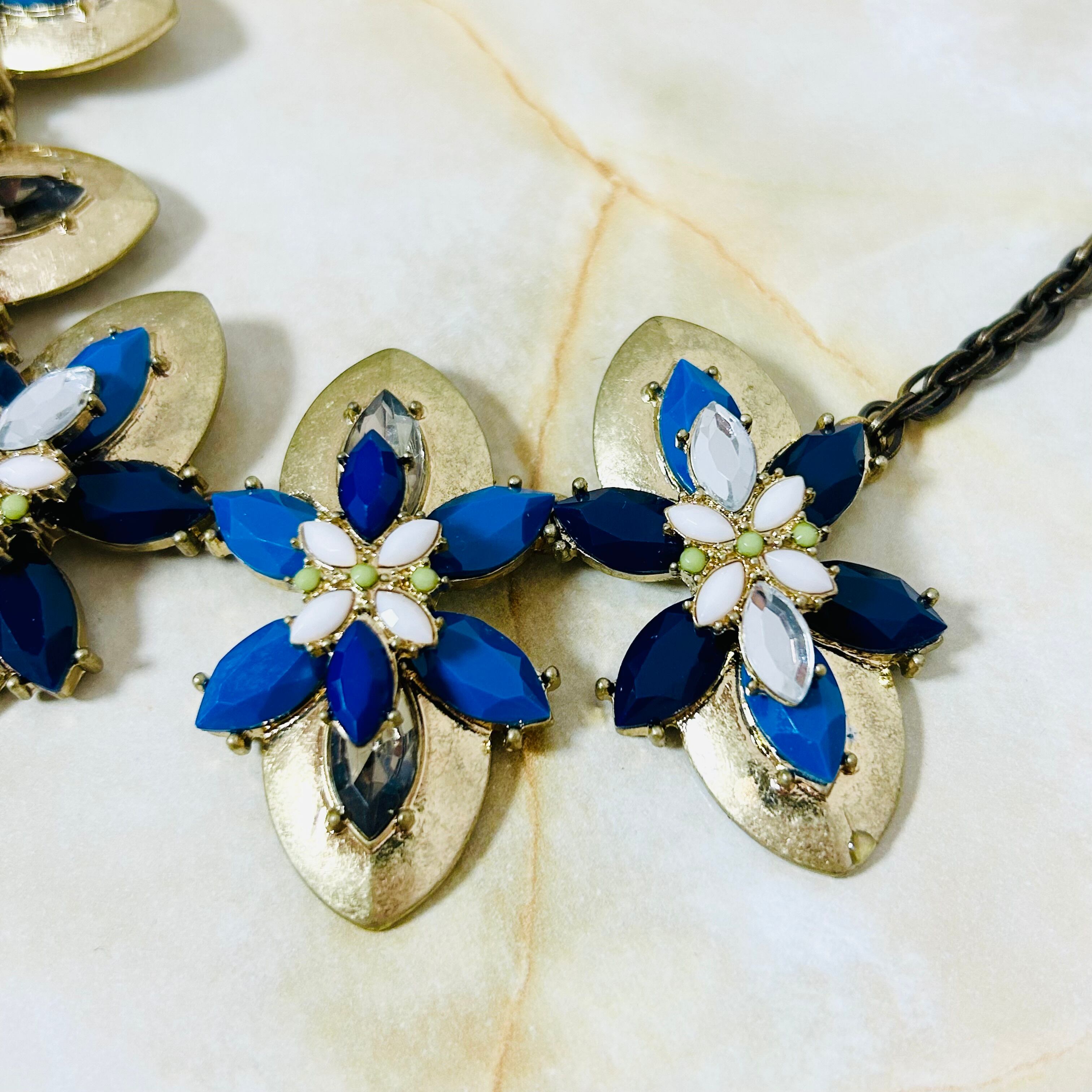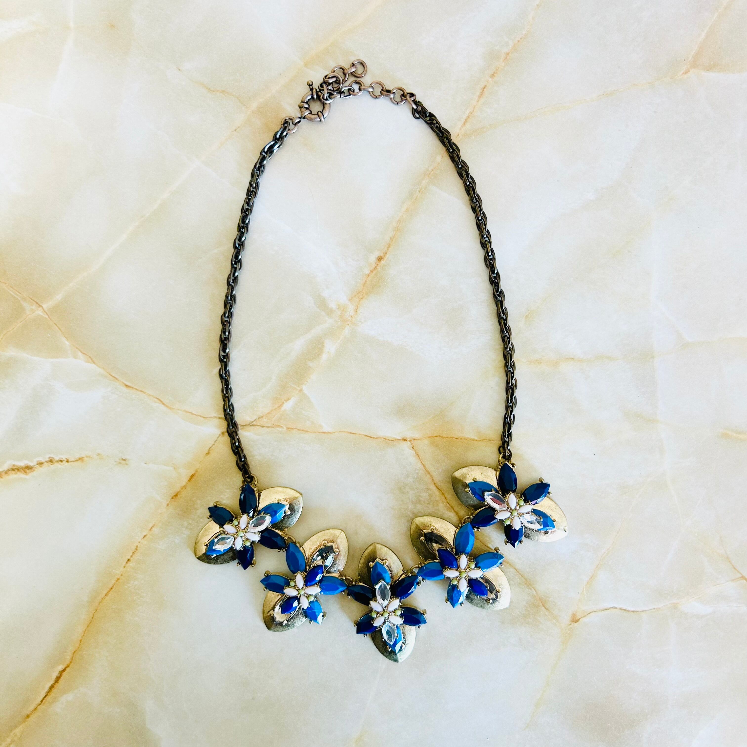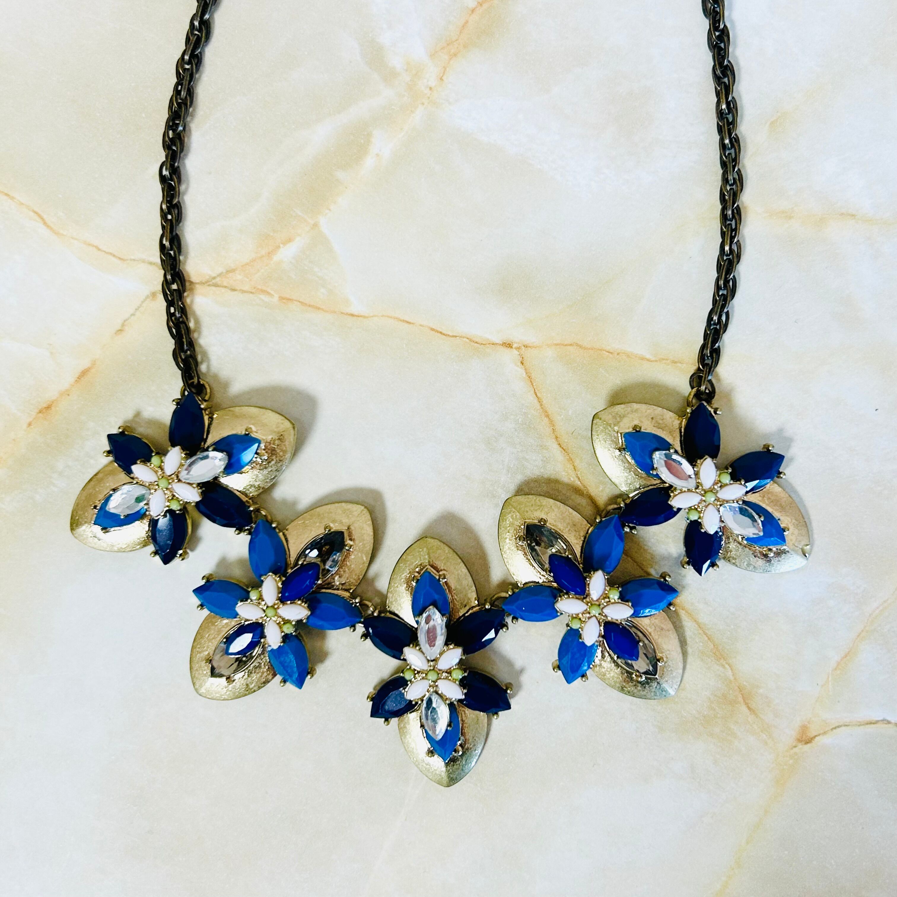 ブルー系、ホワイト✖️アンティークゴールドカラーのネックレスです。
