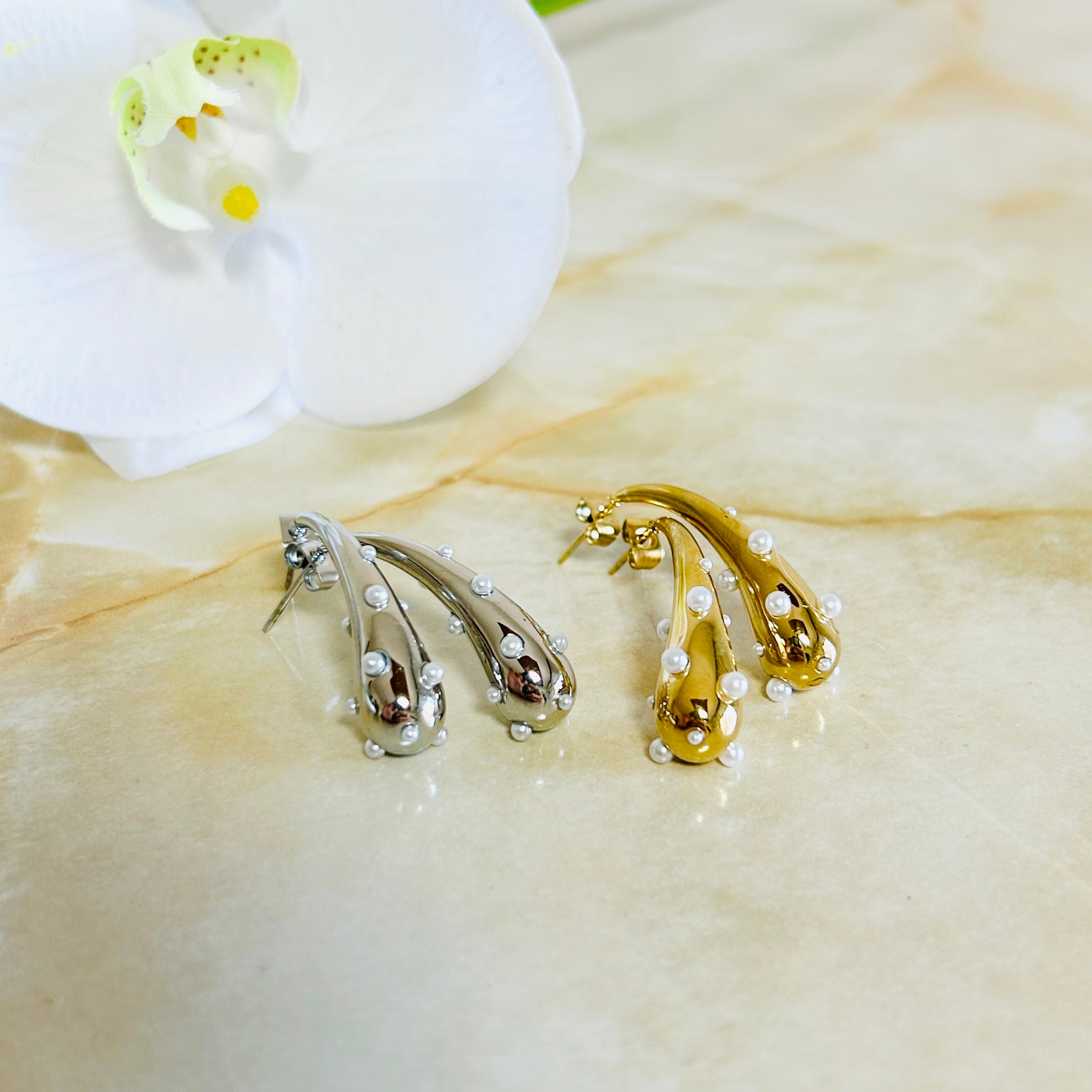 大小の小粒パールを散りばめたデザインがなんともキュートで大人のおしゃれ心をくすぐります♡